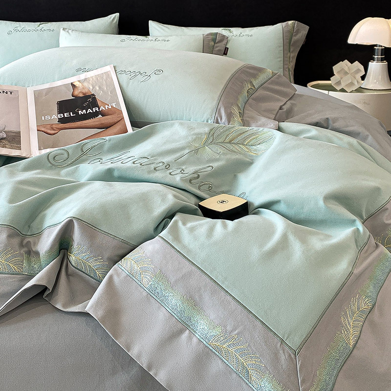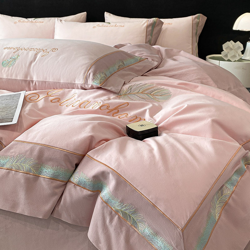 가을과 겨울 가벼운 럭셔리 스타일 100 두꺼운 클래스 면 샌딩 4 피스 면 자수 침대 모자 알몸 침구스토어 가기