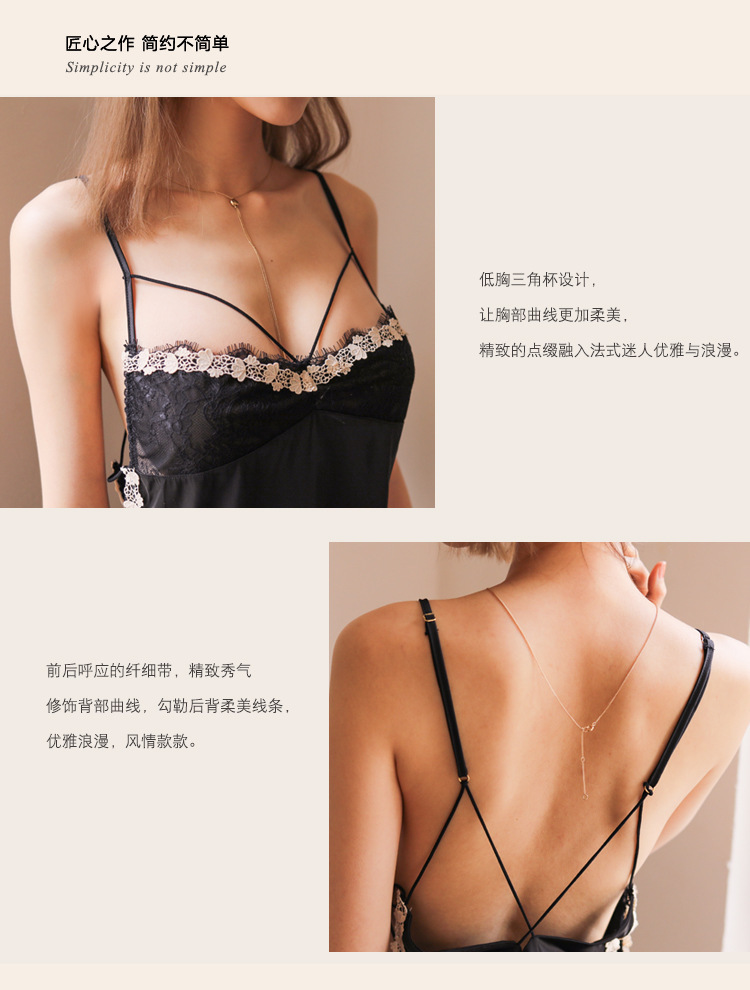 Zokailian 섹시한 매혹적인 수용성 레이스 스트랩 나이트 드레스 양면 중공 크로스 스트랩 백리스 로우 컷