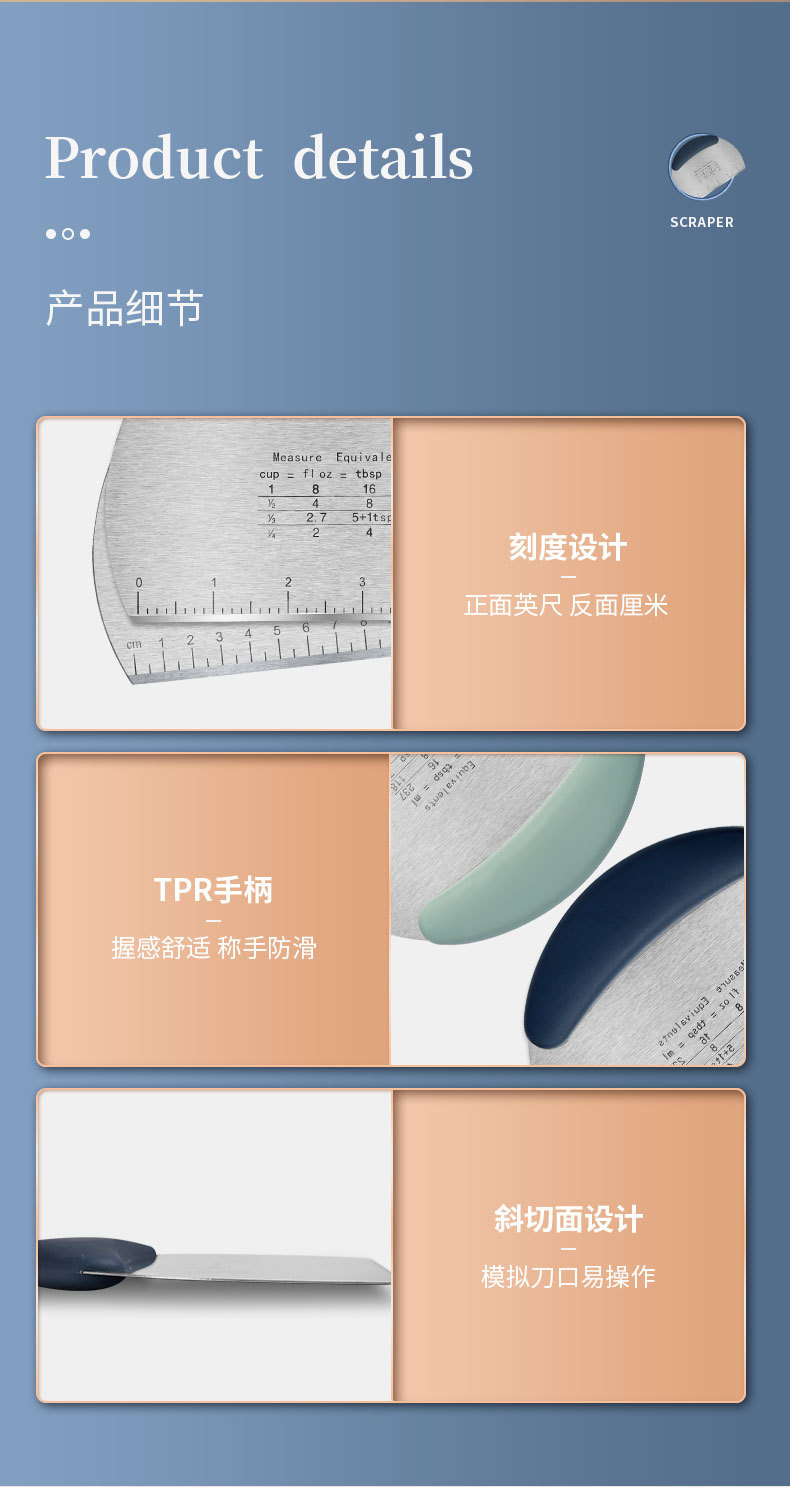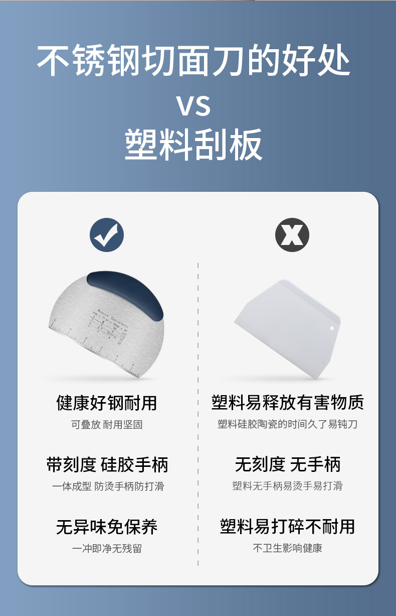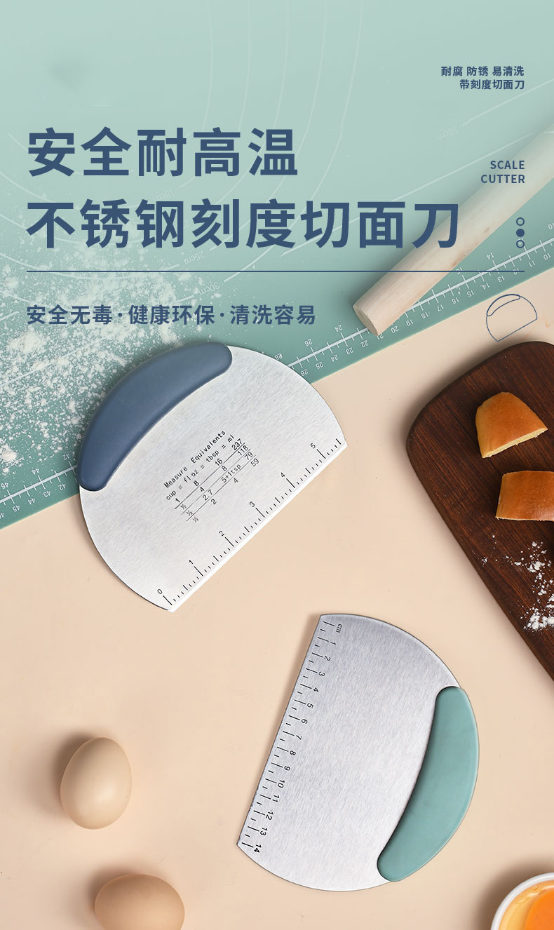 스케일 가정용 스크레이퍼 반죽 베이킹 도구 밀가루 커터 쌀롤이있는 재고 반원 스테인레스 스틸 국수 커터스토어 가기