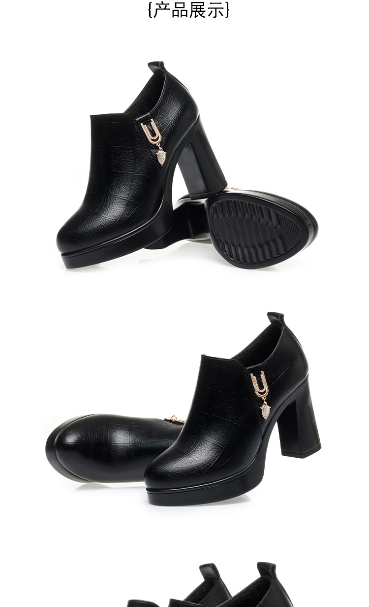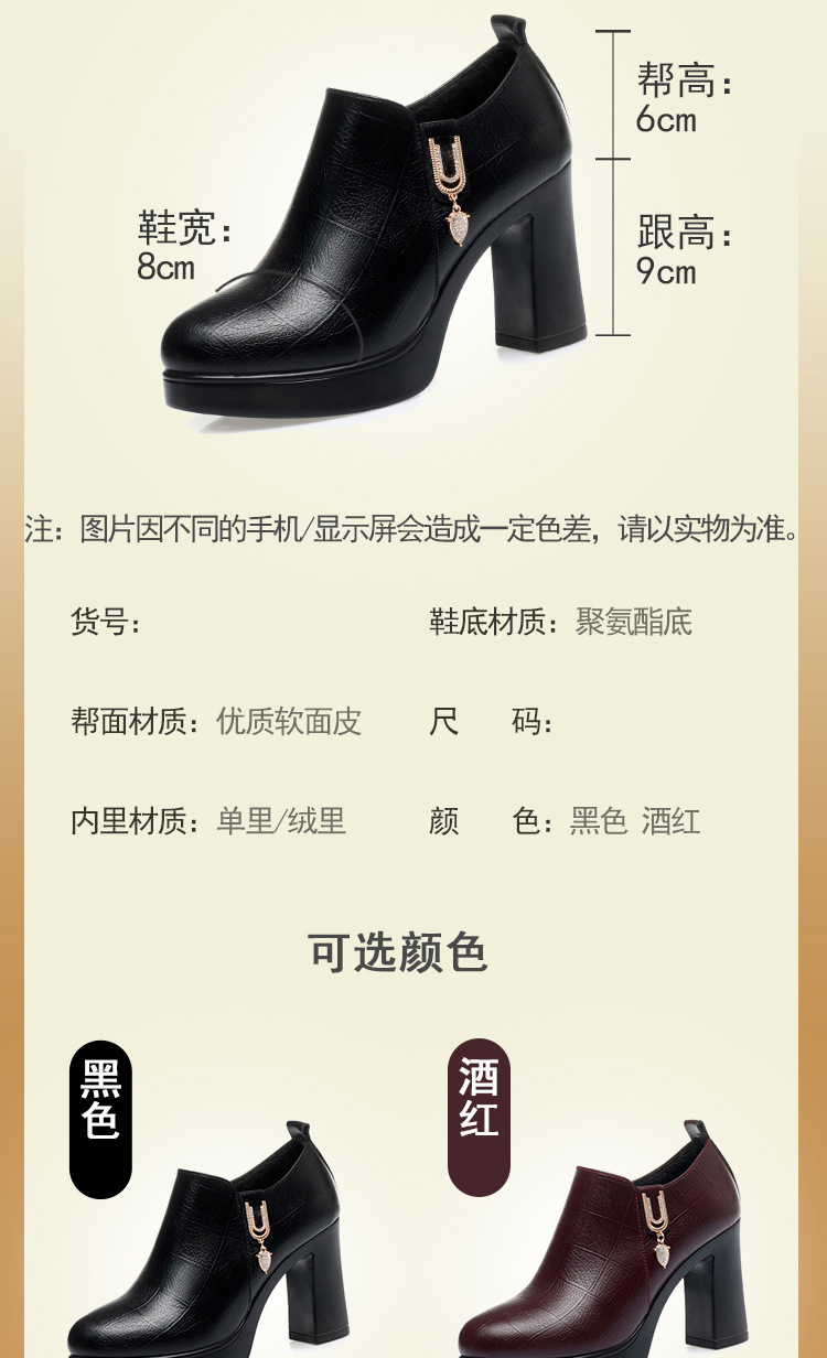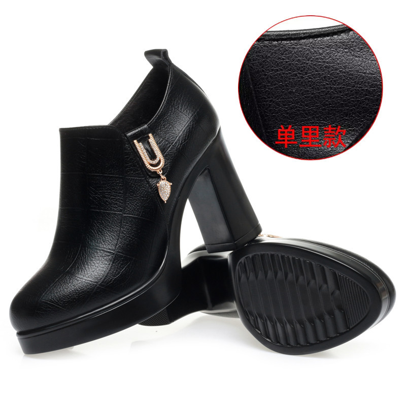 여성을위한 깊은 입 단일 레이어 신발 봄과 가을 새로운 하이힐 청키 힐 기모 플랫폼 플랫폼 두꺼운 바닥이 피곤하지 않은 중년 여성 가죽 신발