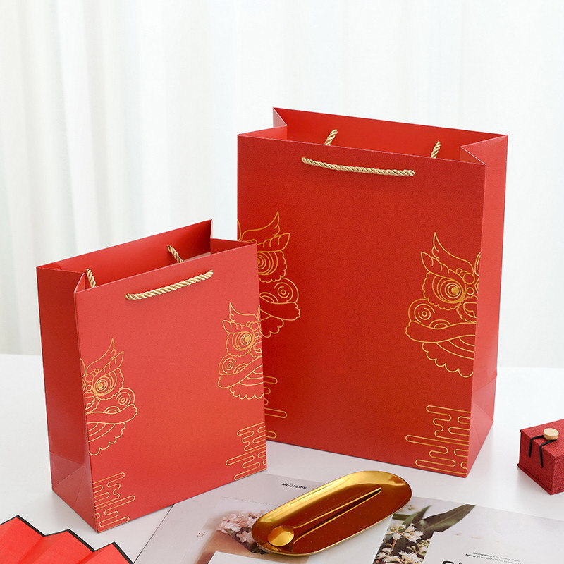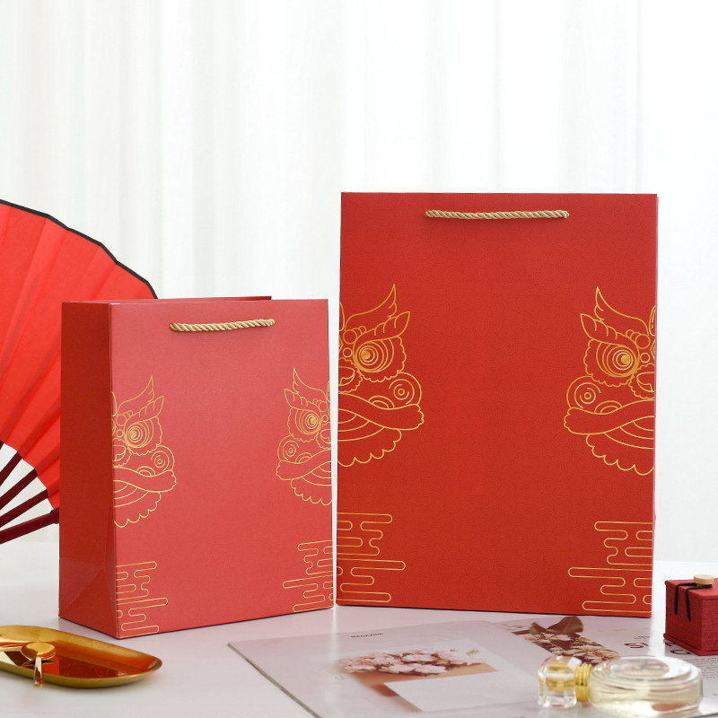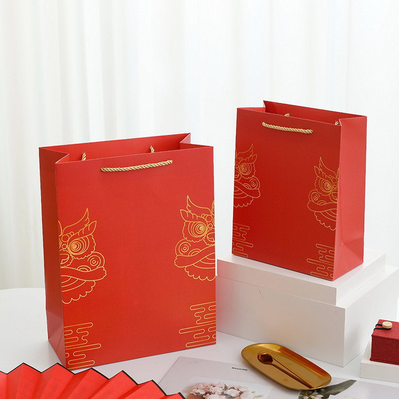 설날 중국 붉은 선물 가방 손 선물 가방 사탕 선물 상자 담배 및 와인 포장 가방 휴대용 고급 선물 상자