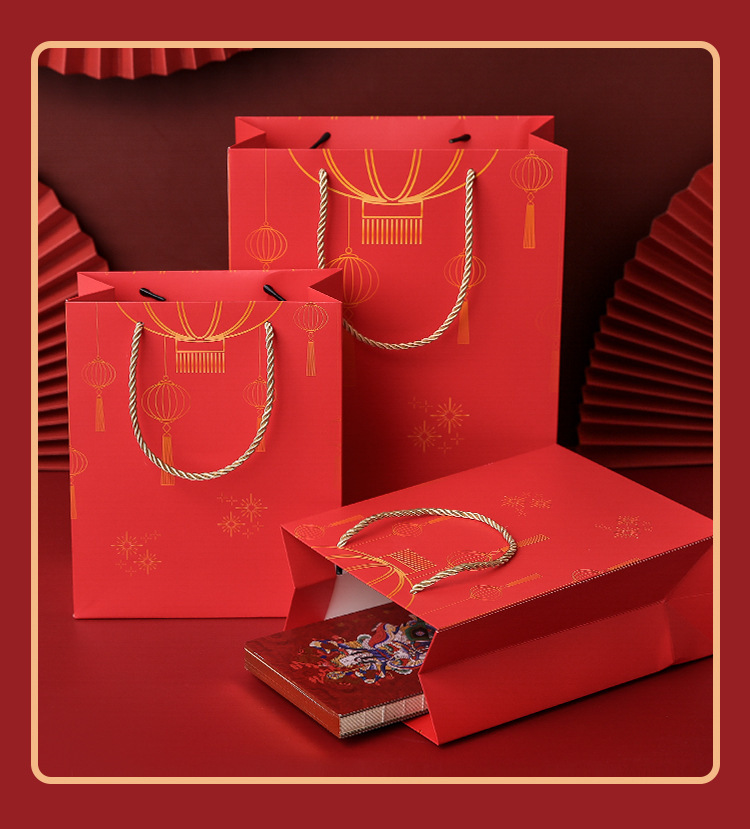 설날 중국 붉은 선물 가방 손 선물 가방 사탕 선물 상자 담배 및 와인 포장 가방 휴대용 고급 선물 상자스토어 가기