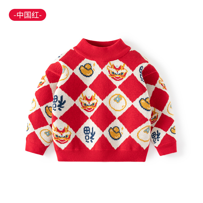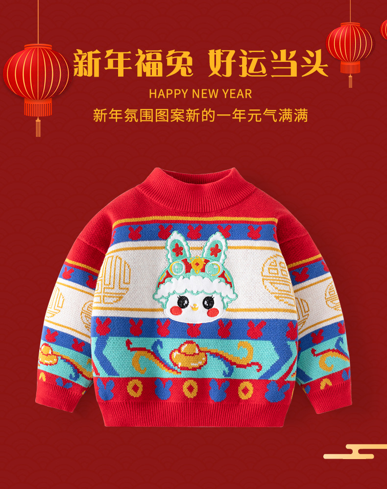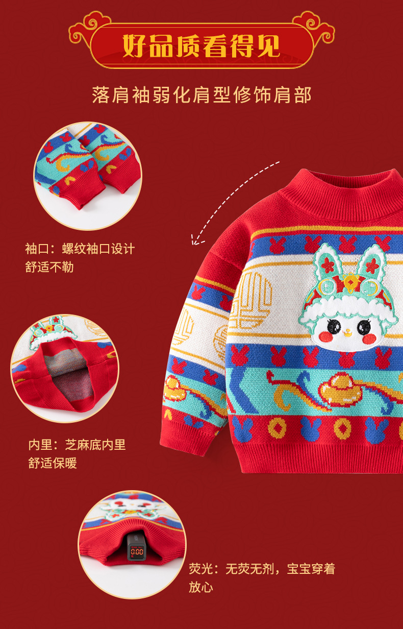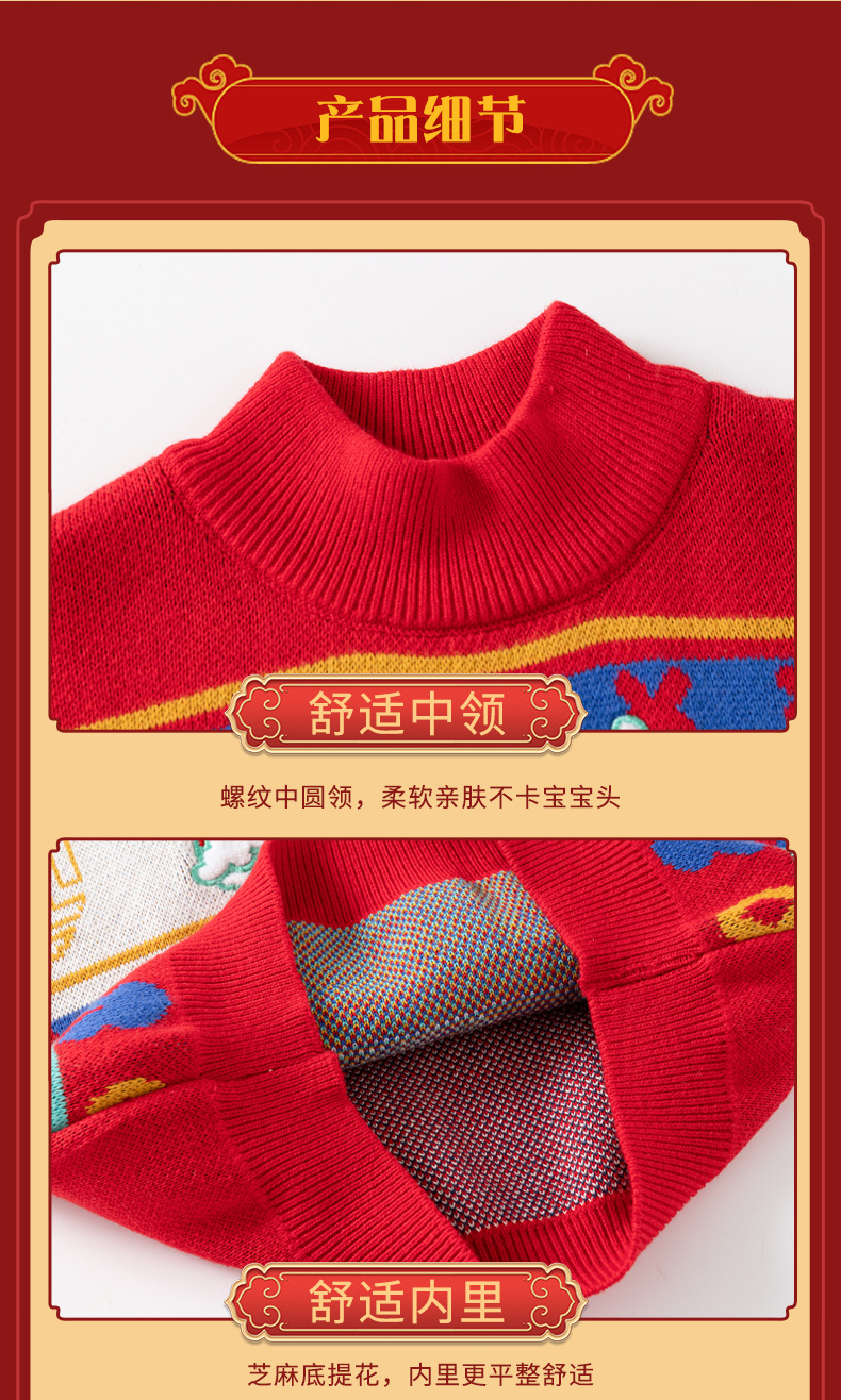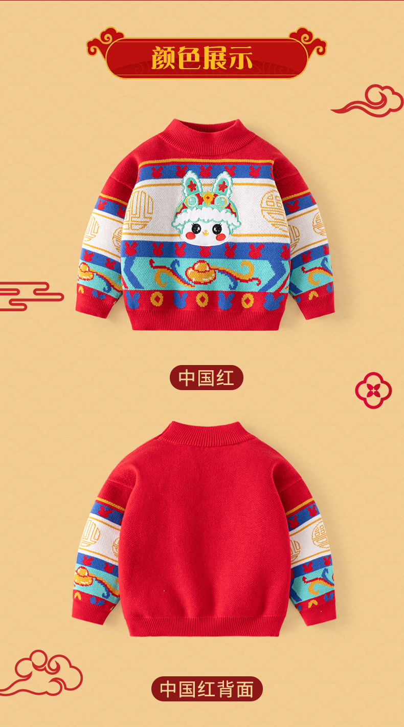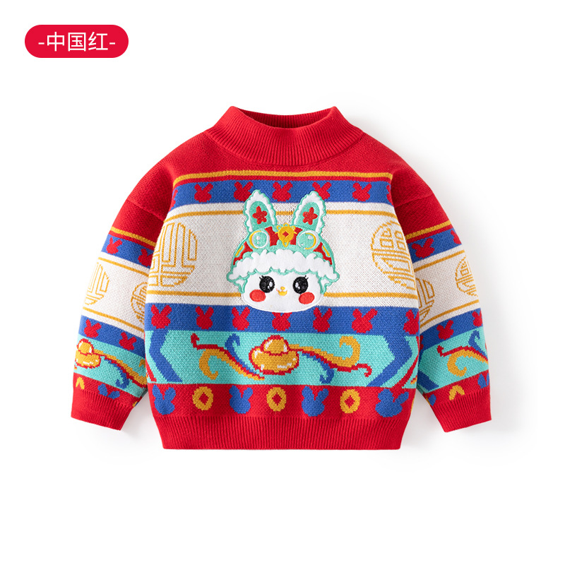 중국 스타일 두꺼운 어린이 터틀넥 스웨터 니트 컬러 매칭 코튼 어린이 년 옷 귀여운 토끼 클래스 A 아기 스웨터스토어 가기