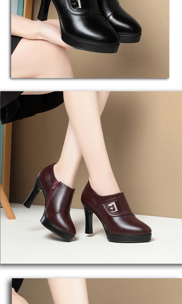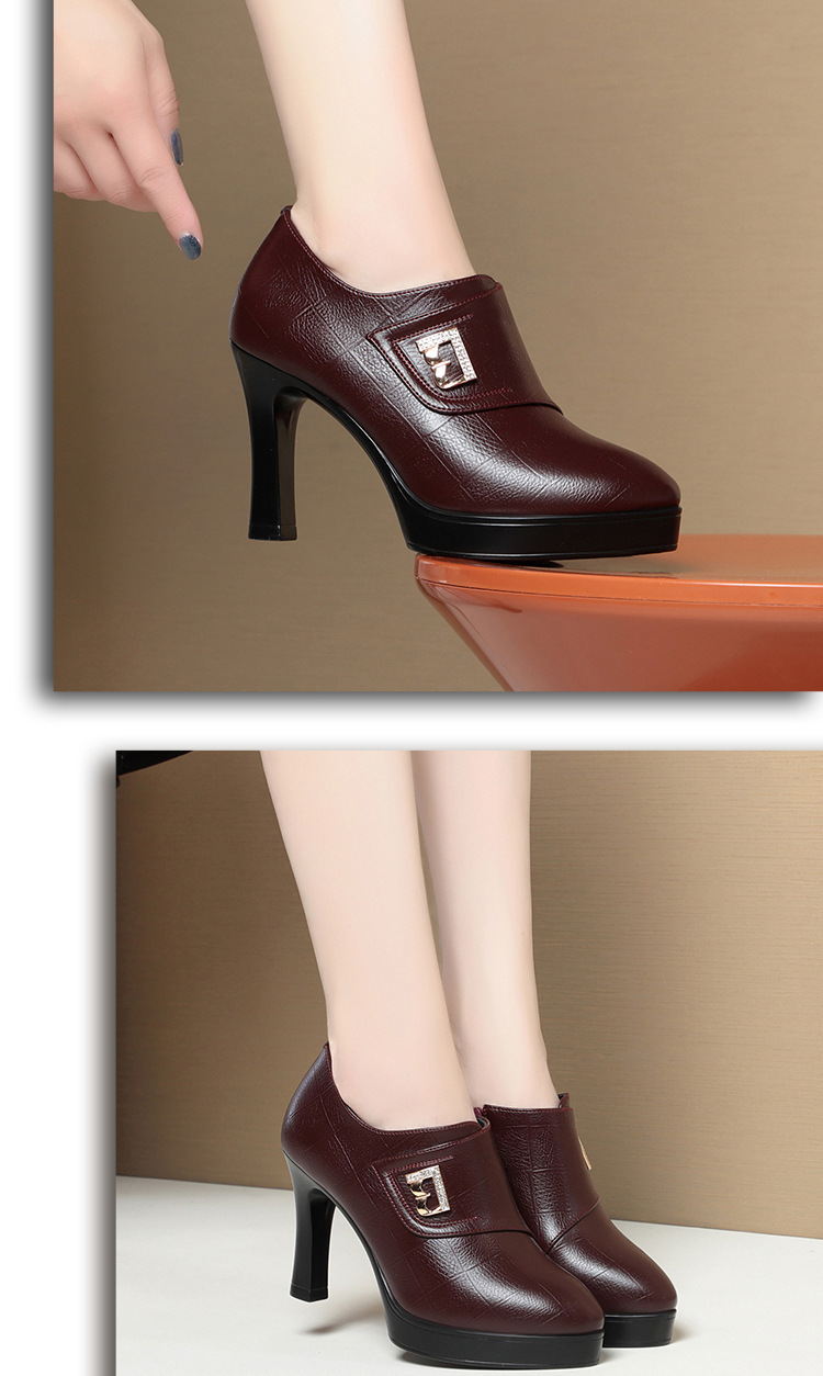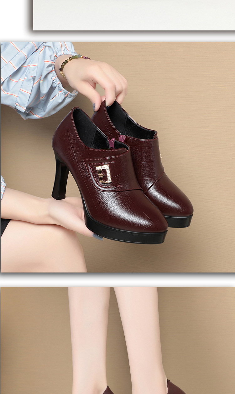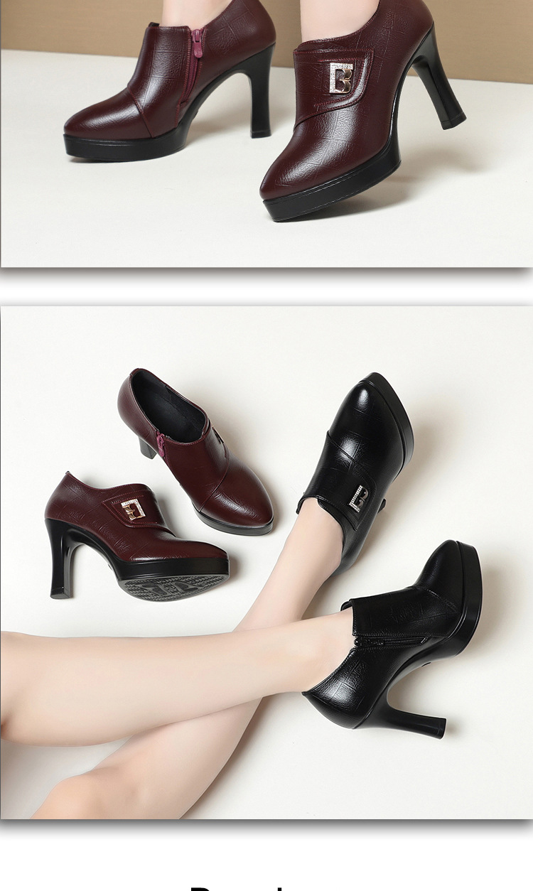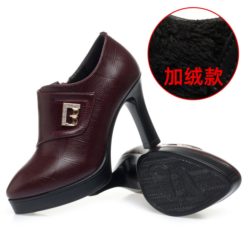 여성을위한 깊은 입 단일 레이어 신발 봄과 가을 새로운 하이힐 스틸레토 힐 기모 플랫폼 플랫폼 두꺼운 바닥 피곤하지 않은 발 중년 여성 가죽 신발