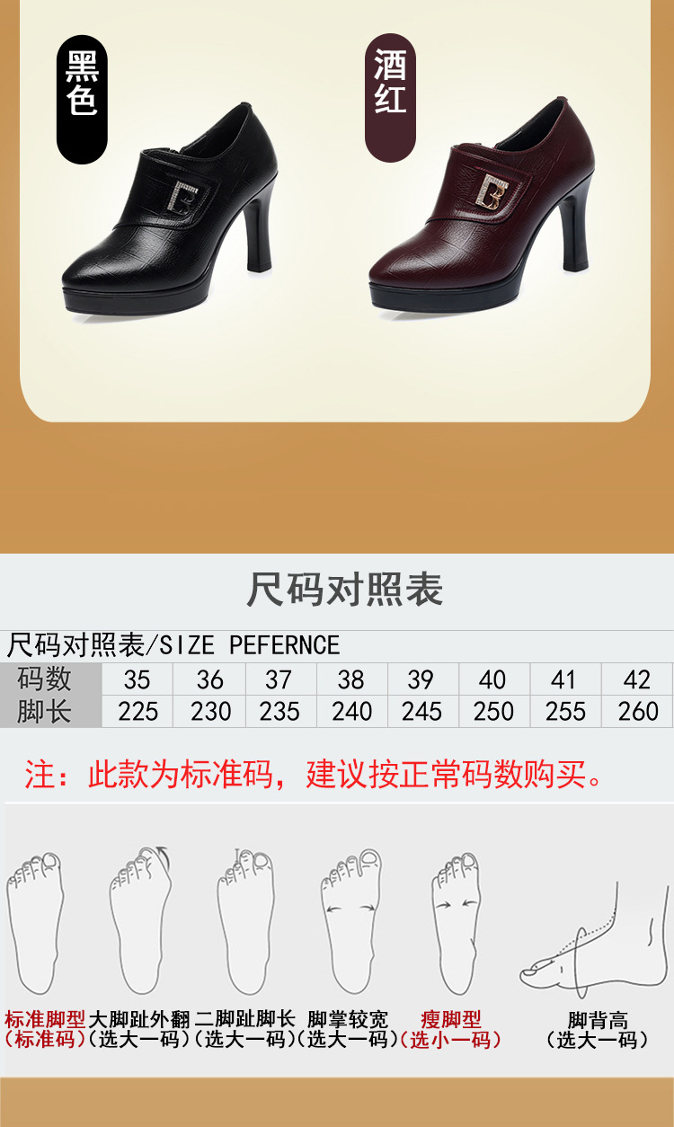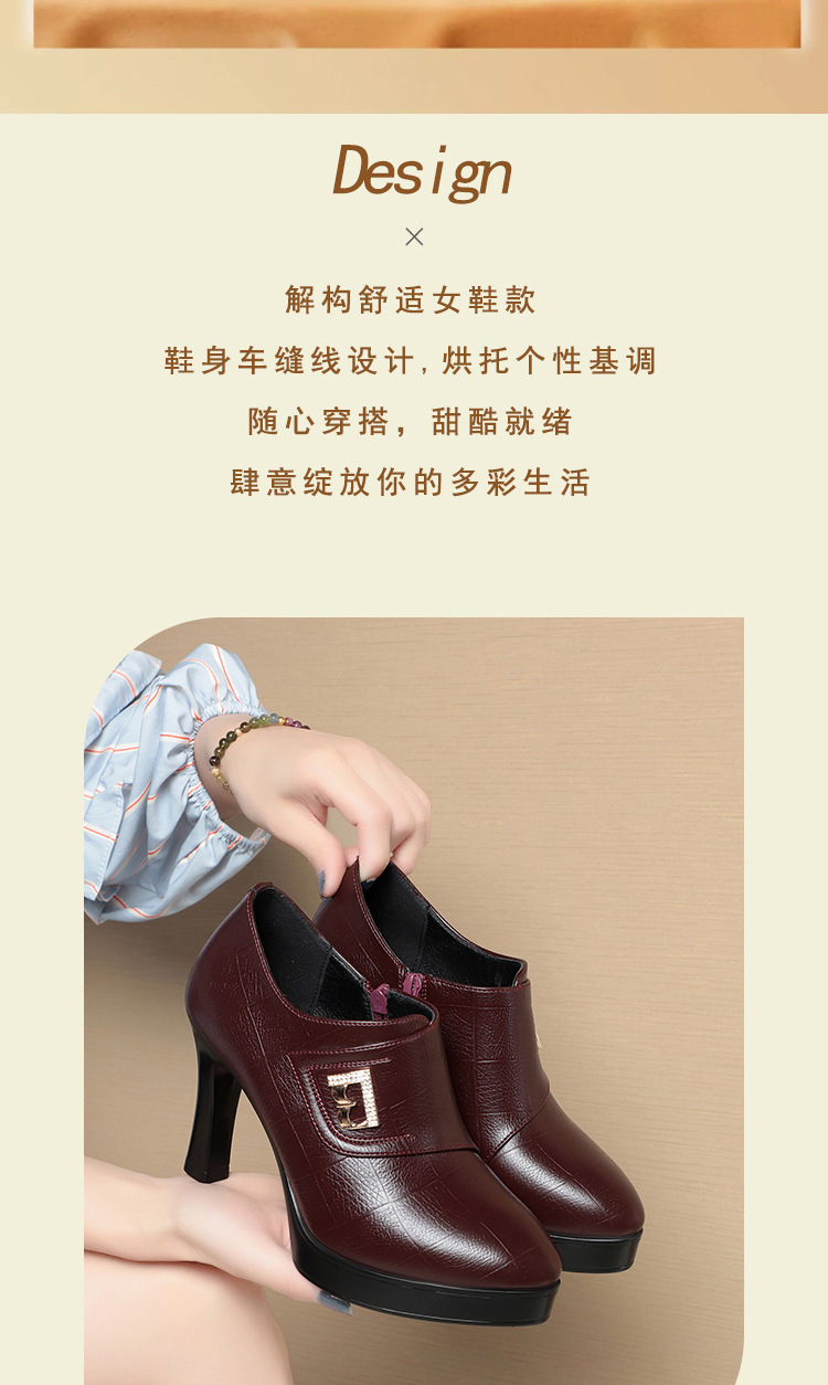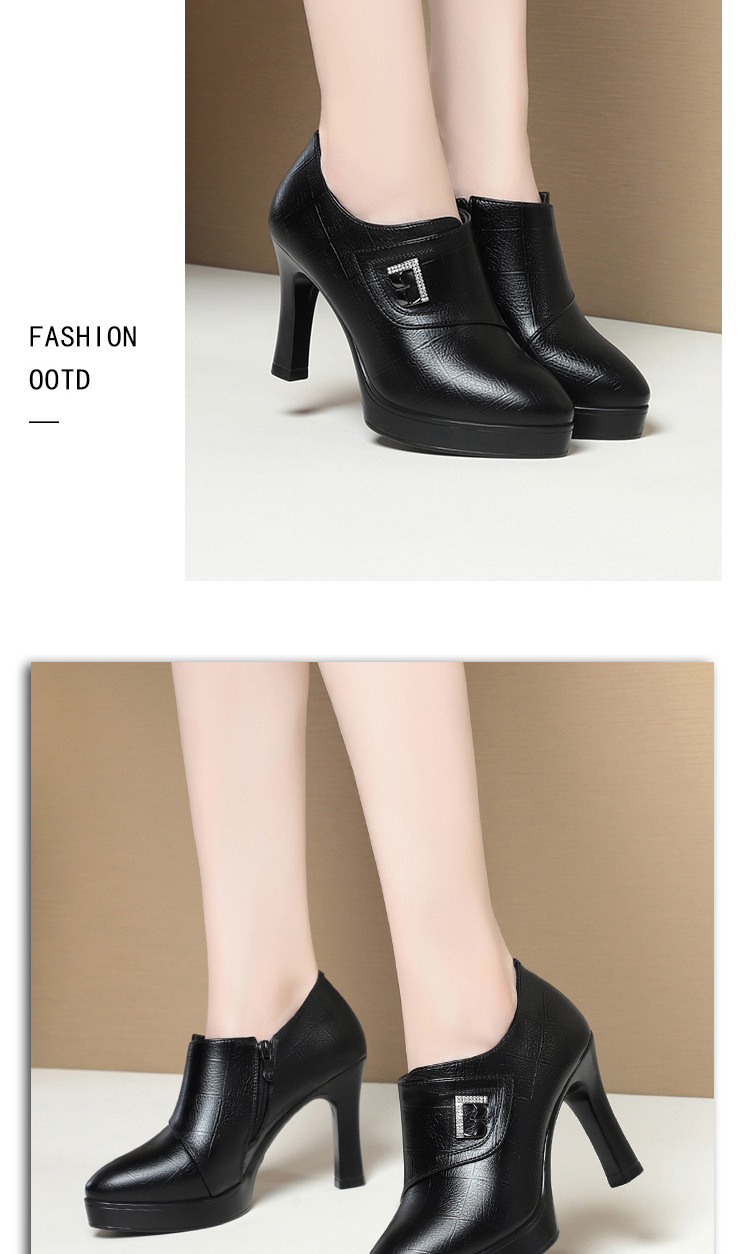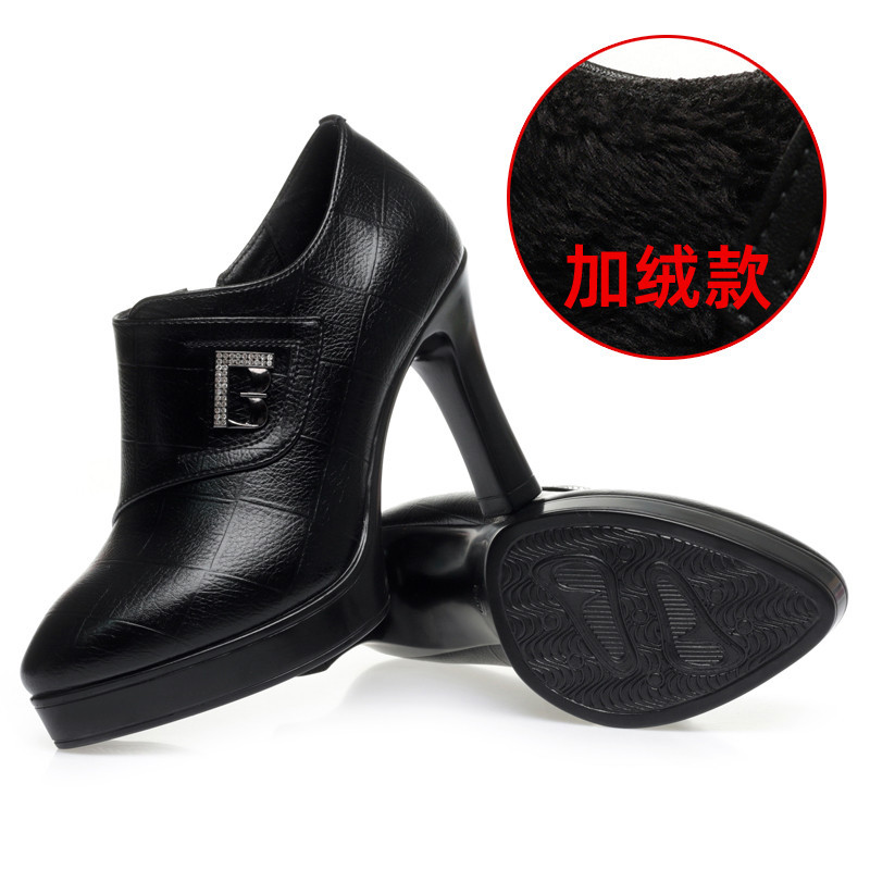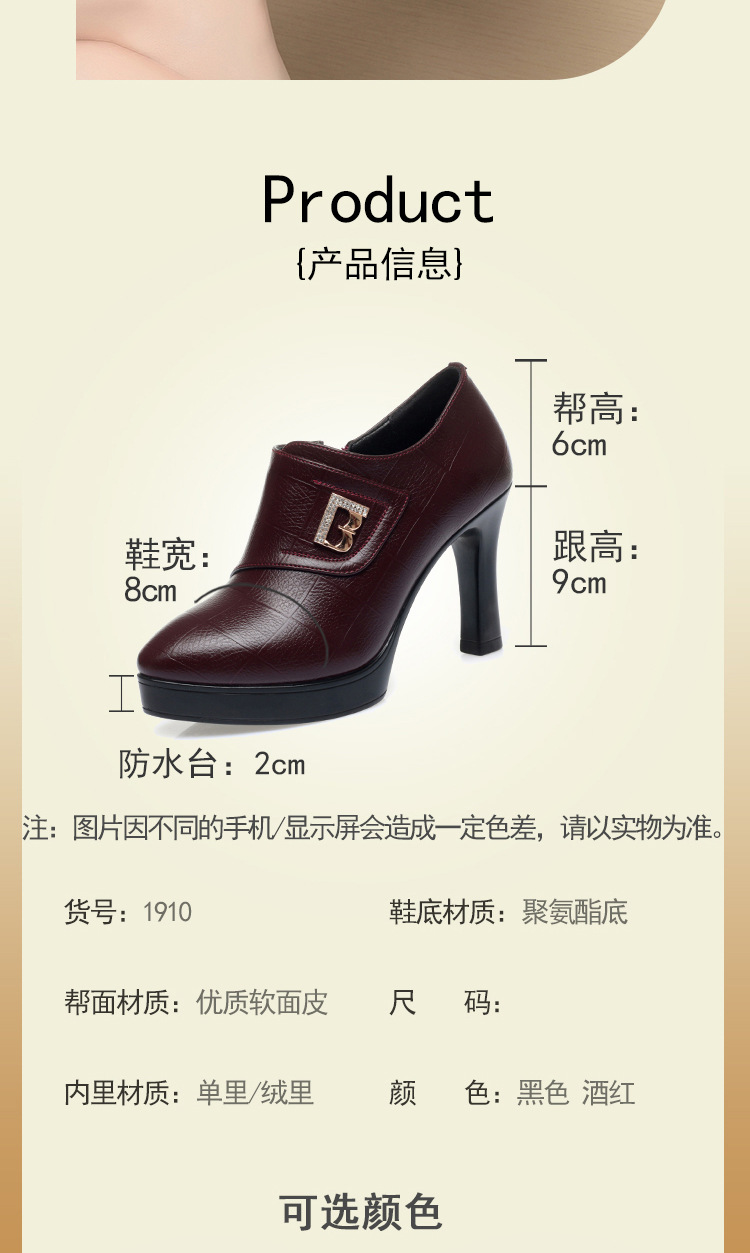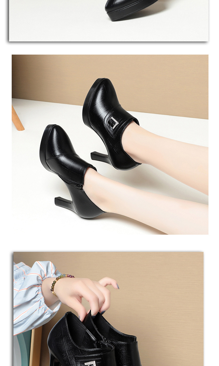 여성을위한 깊은 입 단일 레이어 신발 봄과 가을 새로운 하이힐 스틸레토 힐 기모 플랫폼 플랫폼 두꺼운 바닥 피곤하지 않은 발 중년 여성 가죽 신발