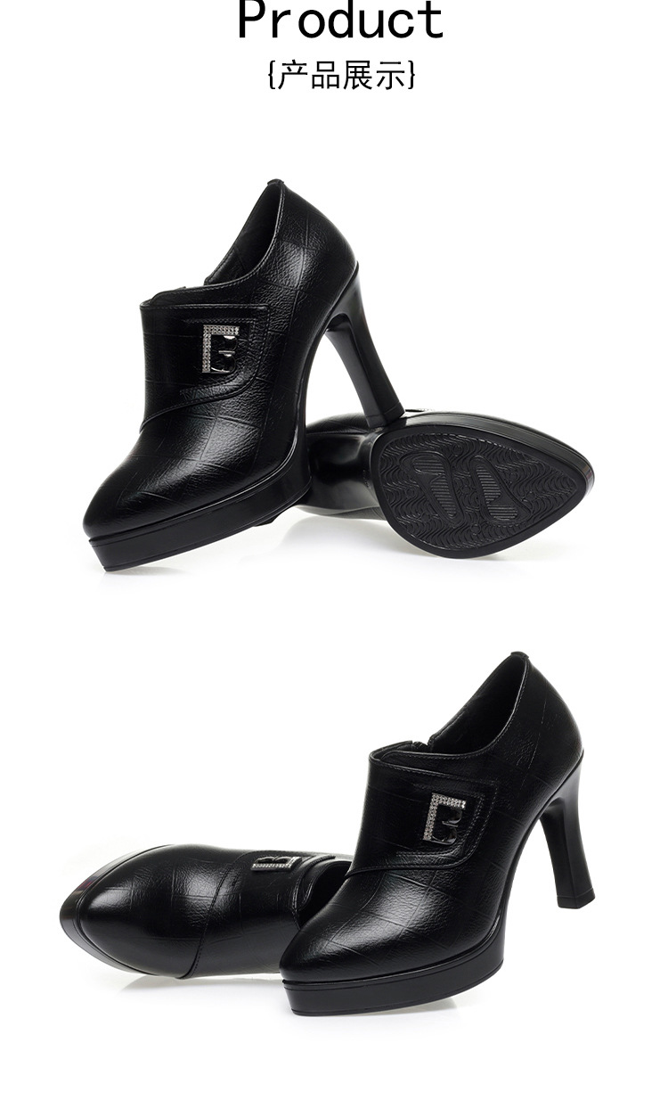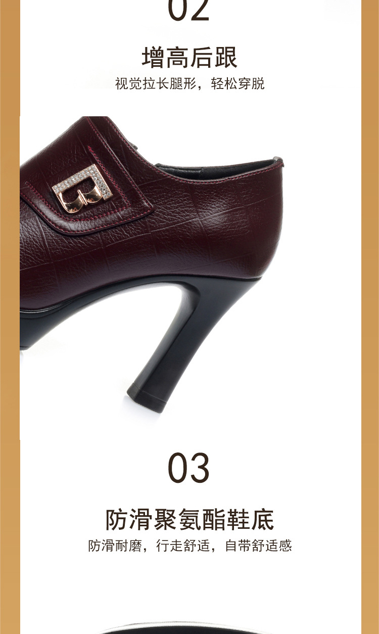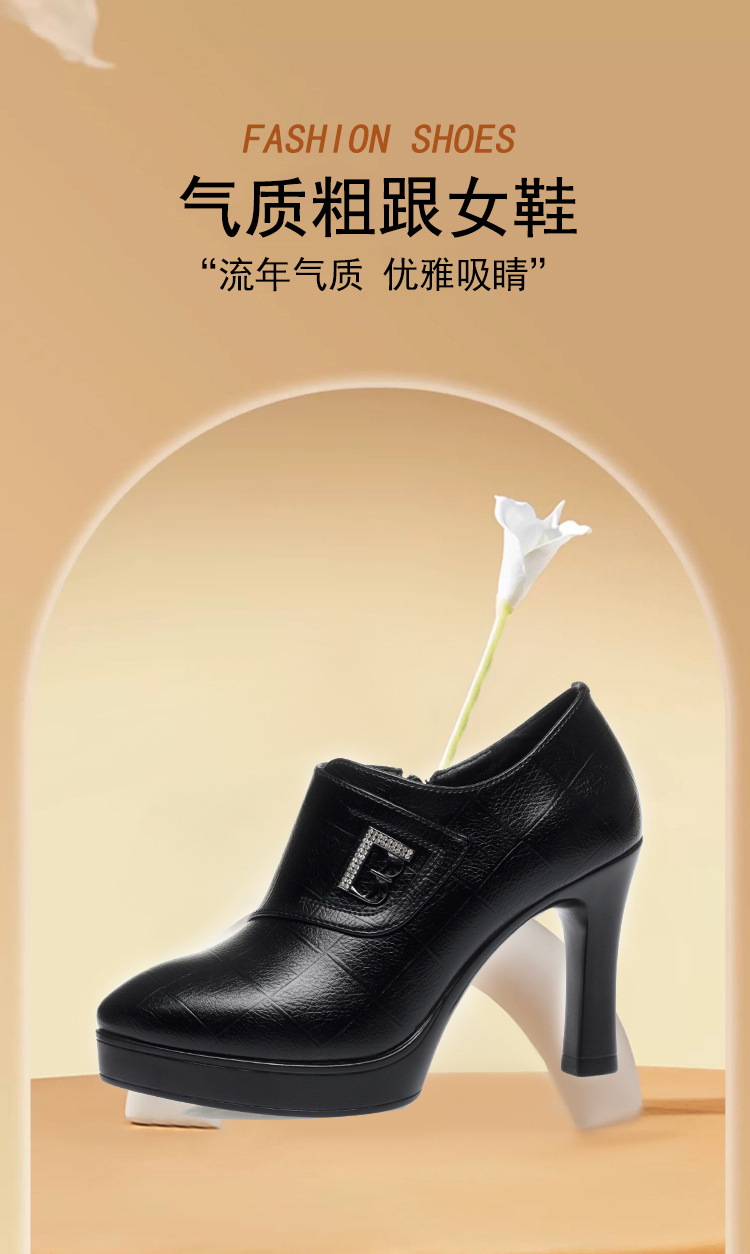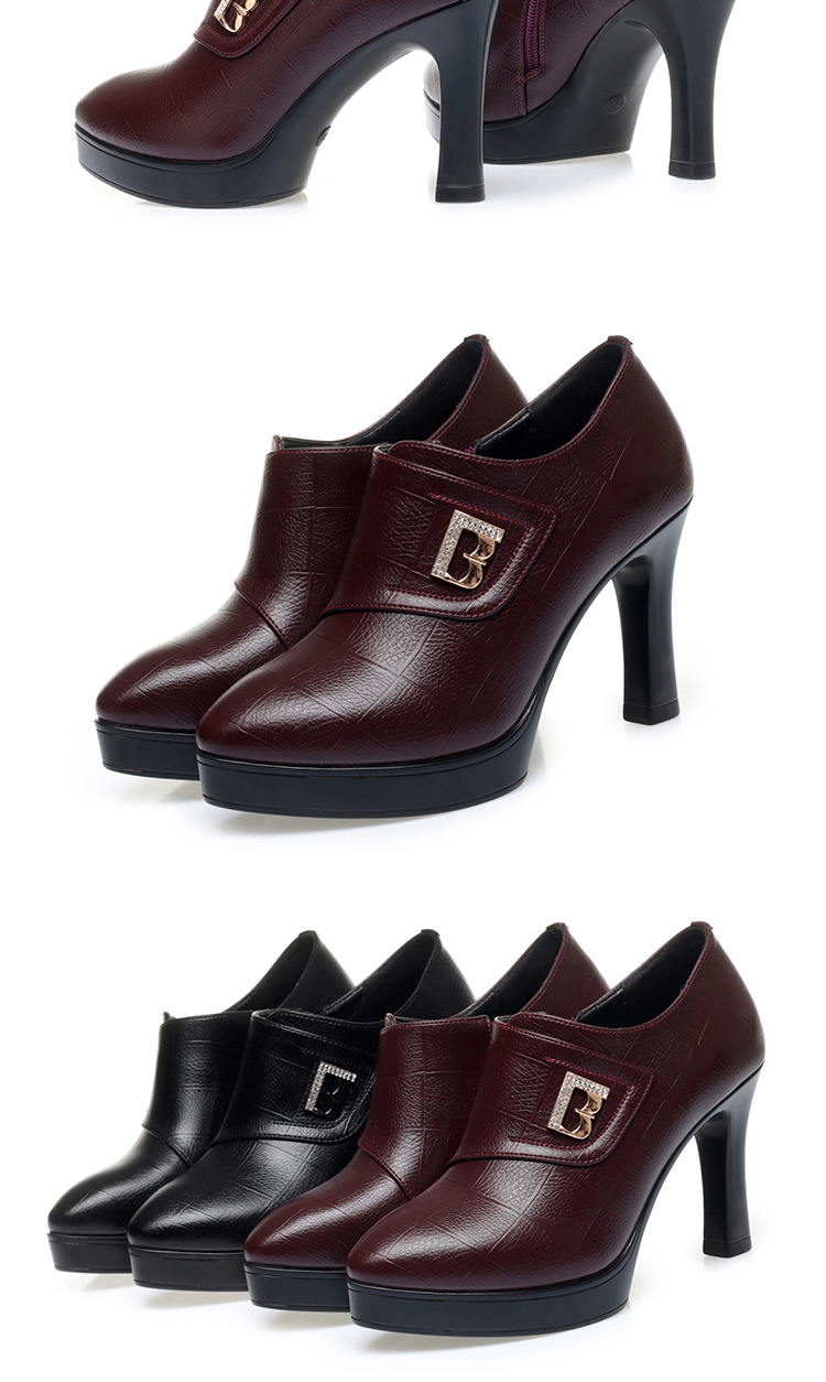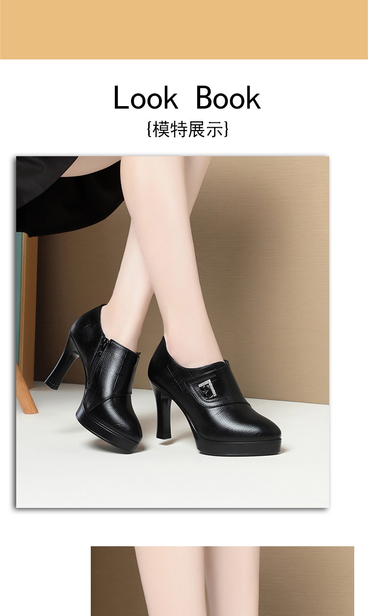 여성을위한 깊은 입 단일 레이어 신발 봄과 가을 새로운 하이힐 스틸레토 힐 기모 플랫폼 플랫폼 두꺼운 바닥 피곤하지 않은 발 중년 여성 가죽 신발