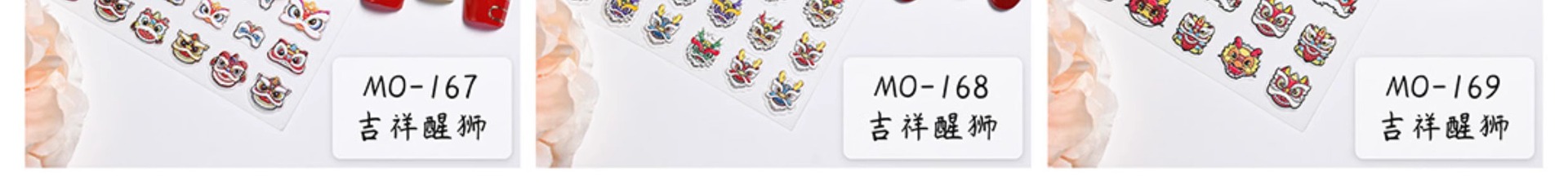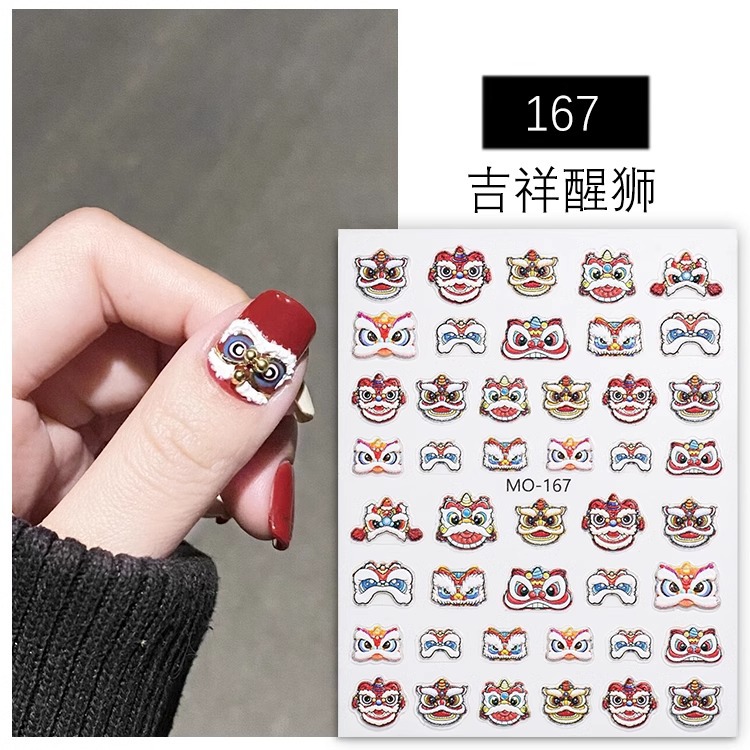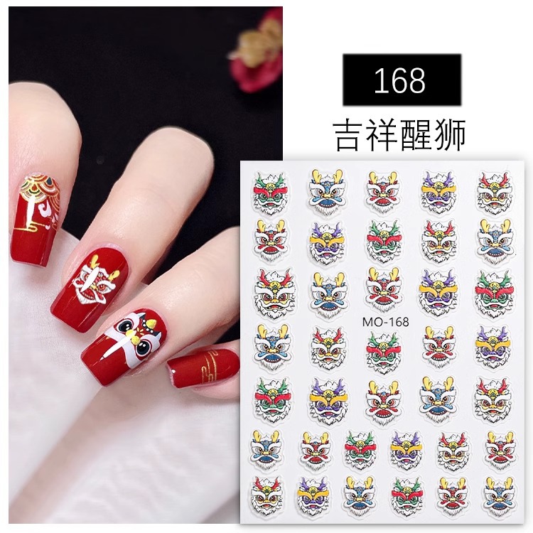 그물 붉은 새 사자 댄스 네일 아트 스티커 새해 용 년 국가 조수 3 차원 구호 네일 장식 작은 패턴 도매스토어 가기