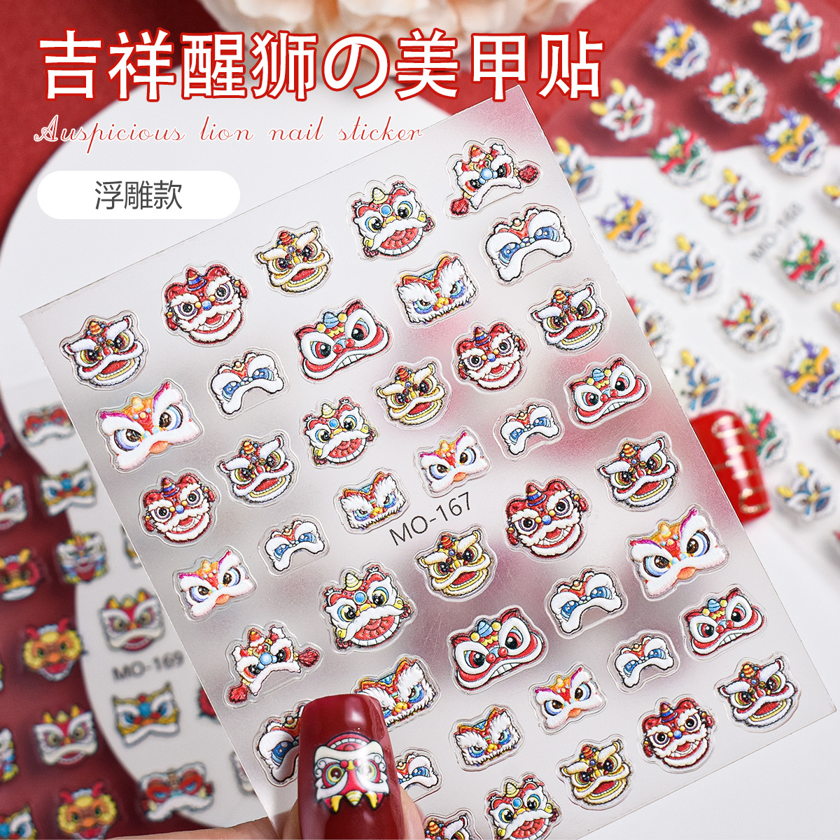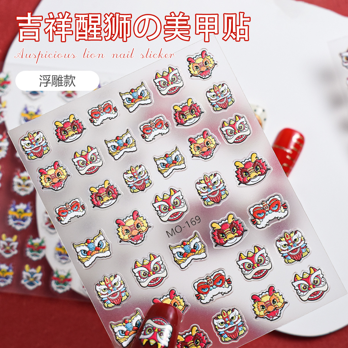 그물 붉은 새 사자 댄스 네일 아트 스티커 새해 용 년 국가 조수 3 차원 구호 네일 장식 작은 패턴 도매