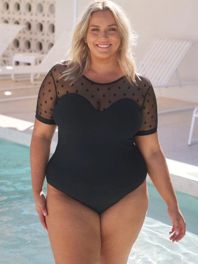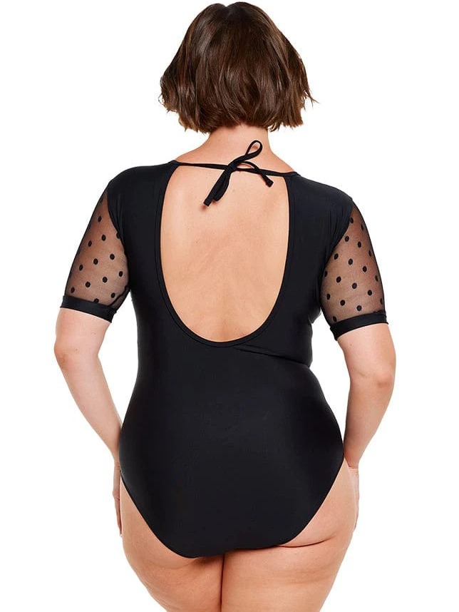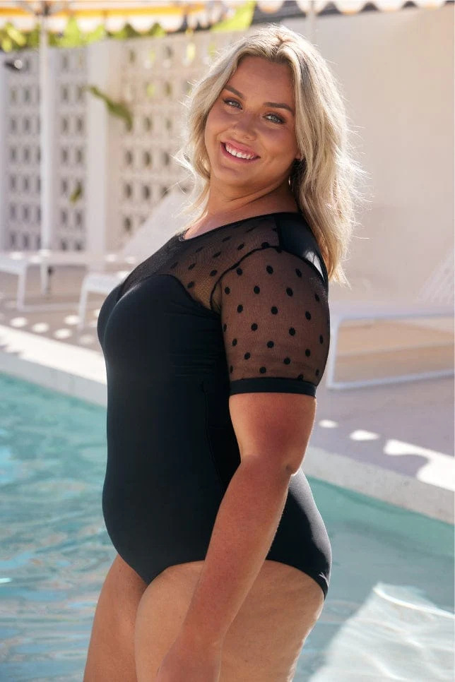 국경을 넘는 새로운 유럽과 미국 여성의 원피스 수영복 단색 메쉬 스티칭 플러스 사이즈 플러스 사이즈 반소매 수영복 비키니스토어 가기