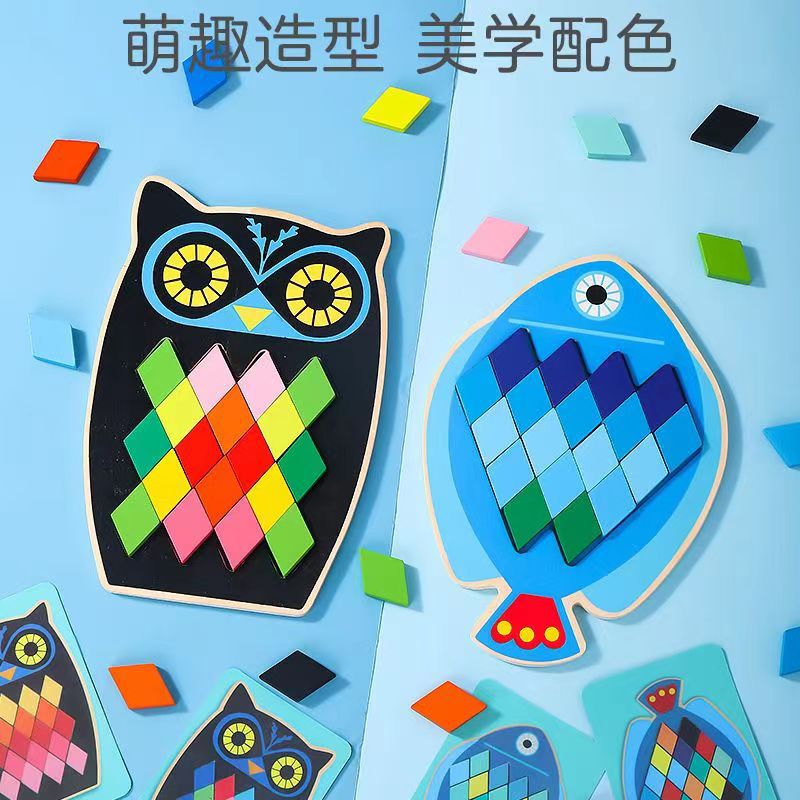 나무 교육 조기 교육 어린이 장난감 올빼미 비행 물고기 퍼즐 퍼즐 퍼즐 퍼즐 큐브 변경 가능한 색상 유치원