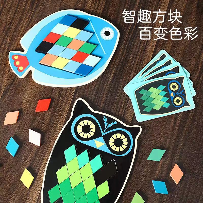 나무 교육 조기 교육 어린이 장난감 올빼미 비행 물고기 퍼즐 퍼즐 퍼즐 퍼즐 큐브 변경 가능한 색상 유치원스토어 가기