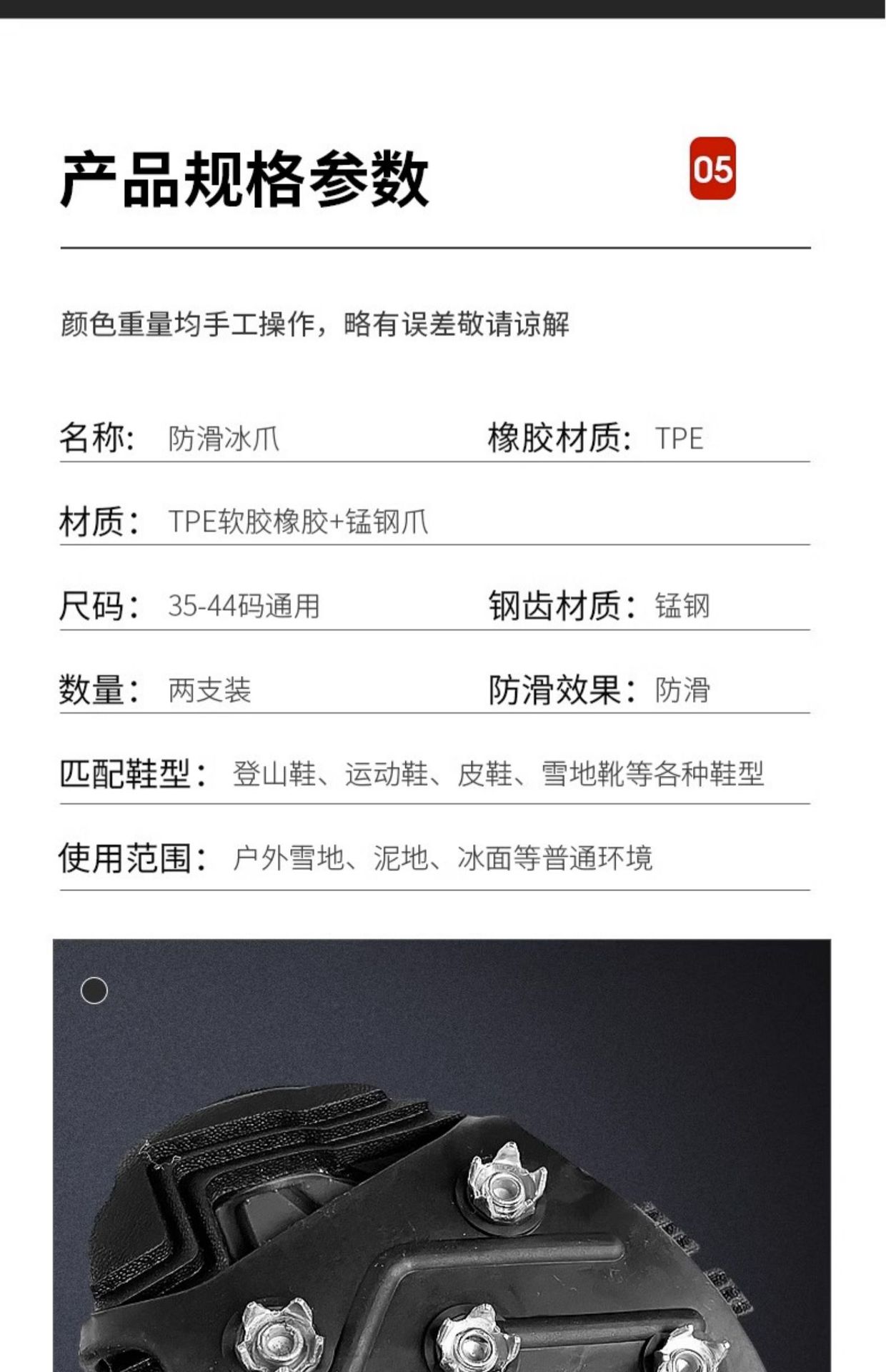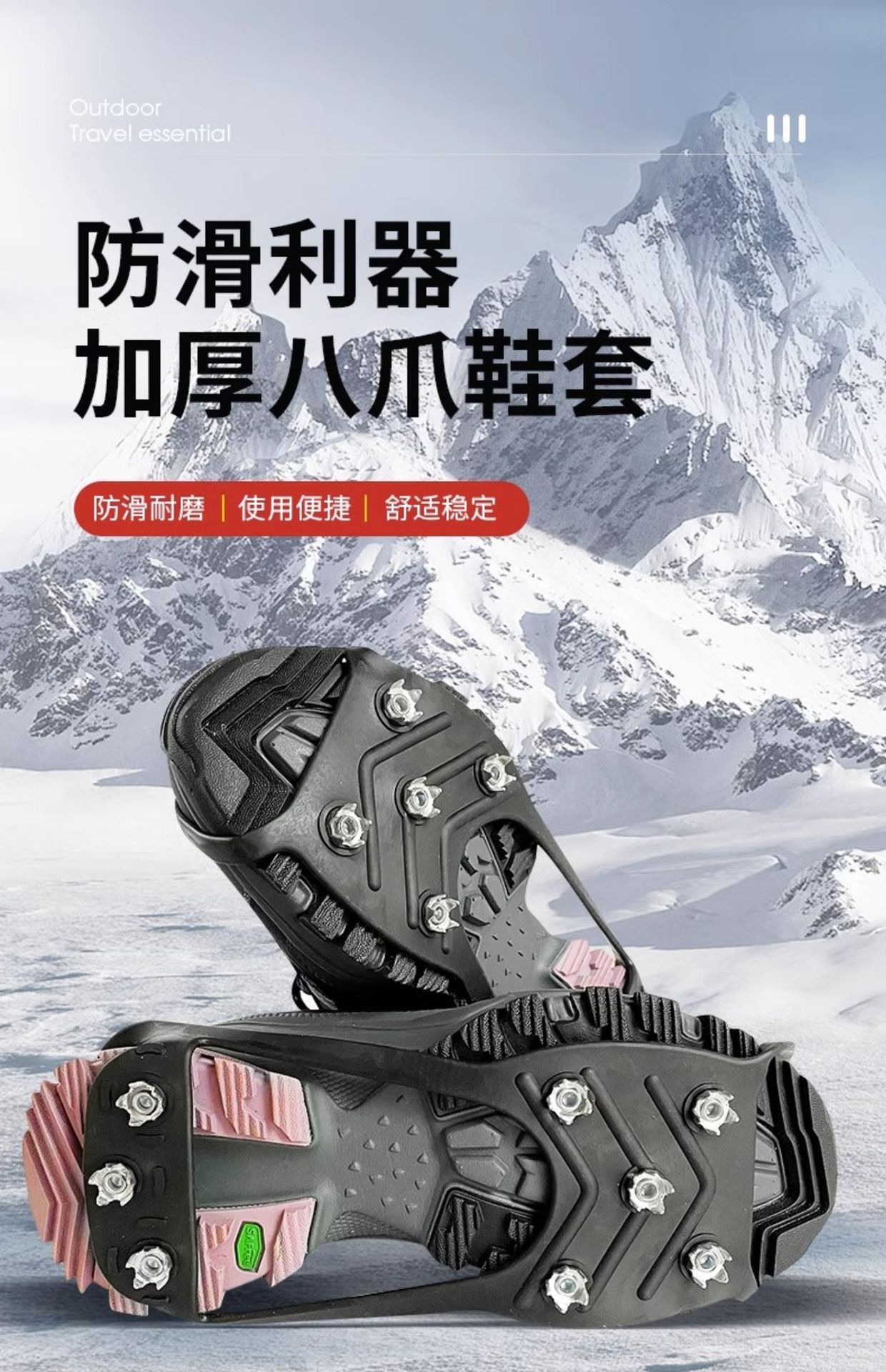 아이스 클로 미끄럼 방지 신발 커버 5 ~ 8 개 치아 겨울 야외 신발 손톱 겨울 밑창 스틱 아티팩트 등산 아이스 스노우 슈 체인