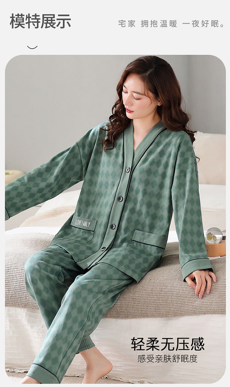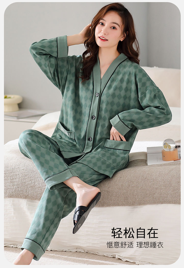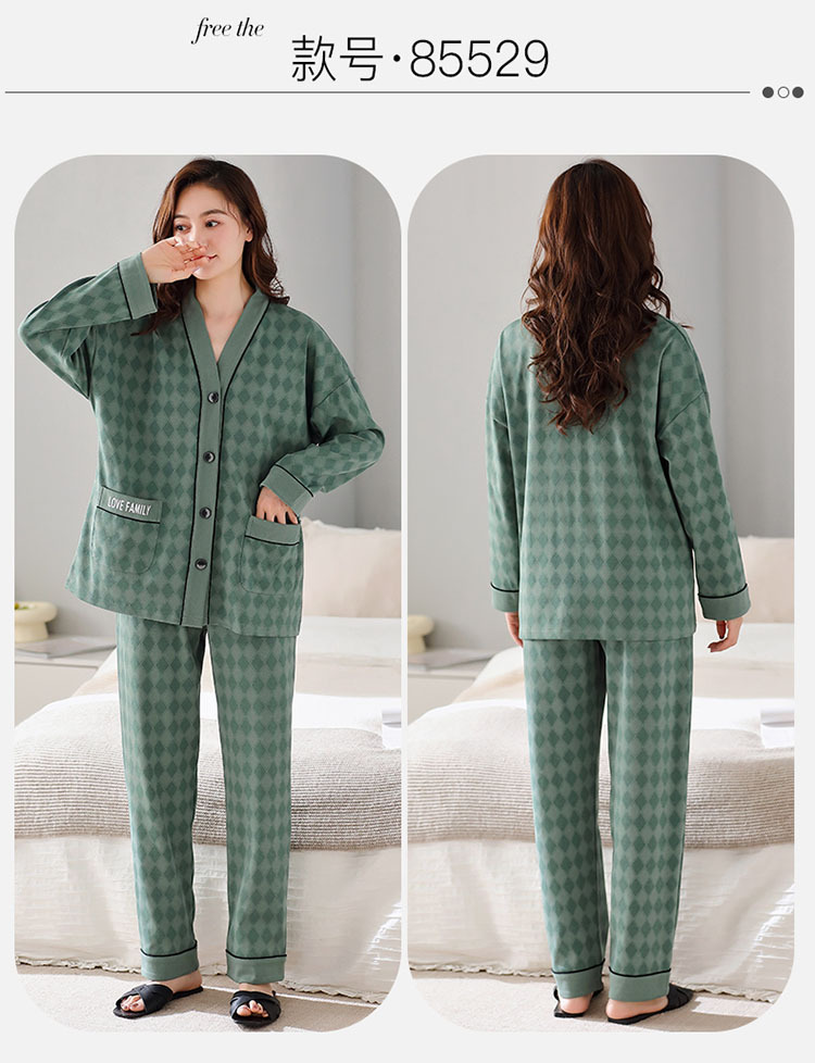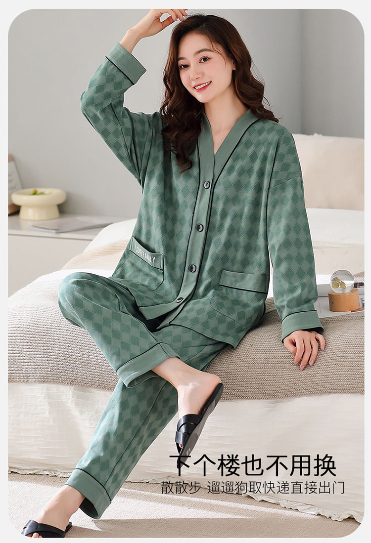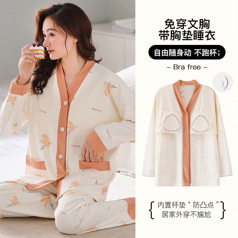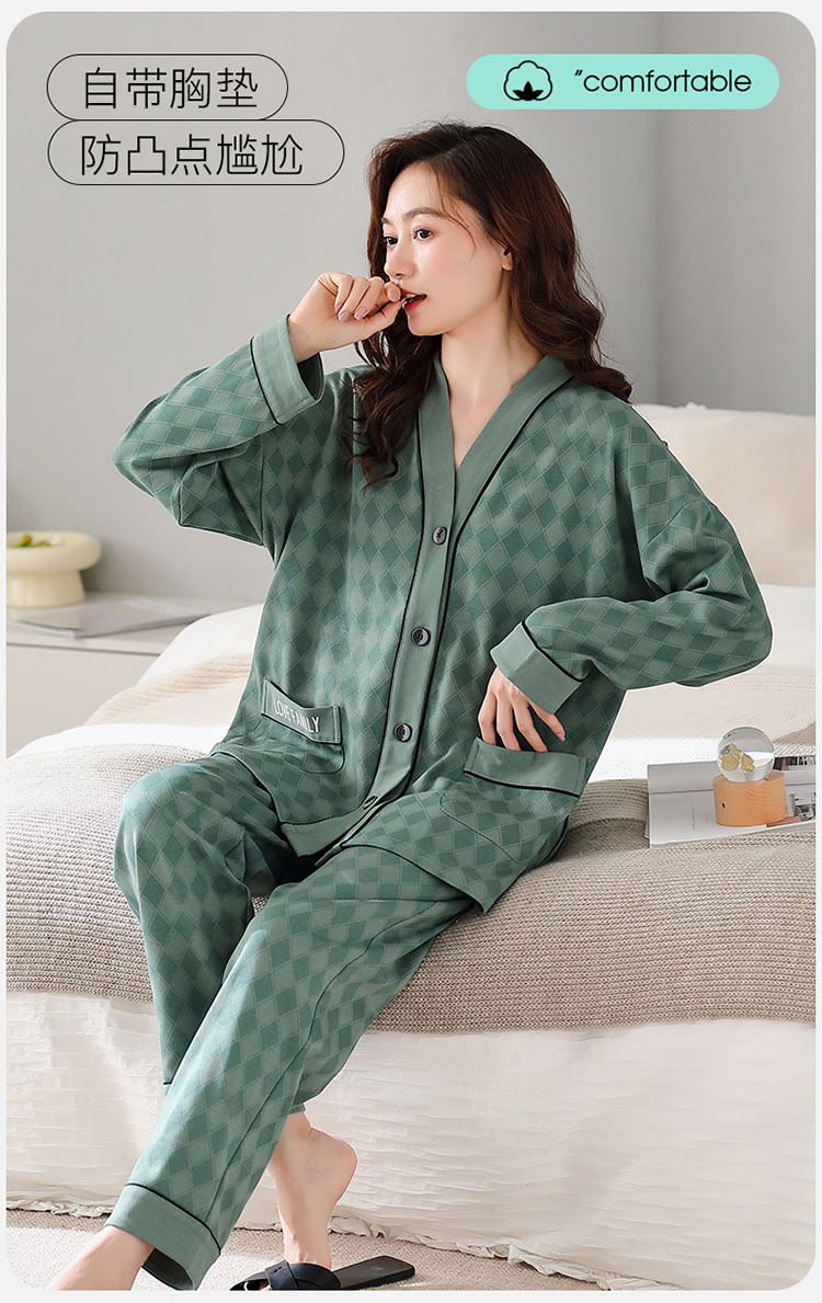 가슴 패드가 달린 여성용 면화 잠옷 봄과 가을 긴팔 카디건 엄마 새로운 고급 홈웨어 여성용 투피스 세트스토어 가기