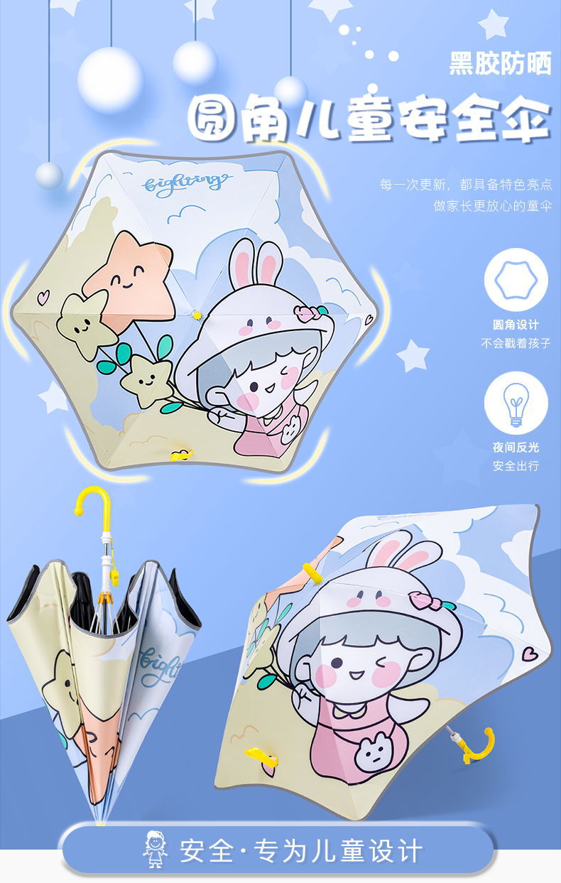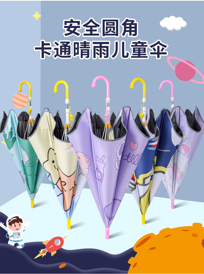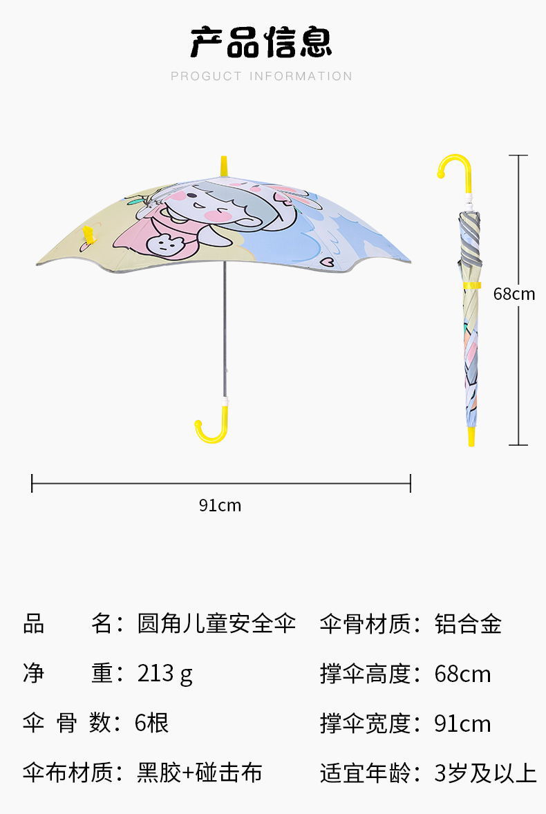 어린이 초등학생용 우산, 유치원 남아 여아 아기용 둥근 모서리 안전 유모차 광고 우산, 만화 스타일