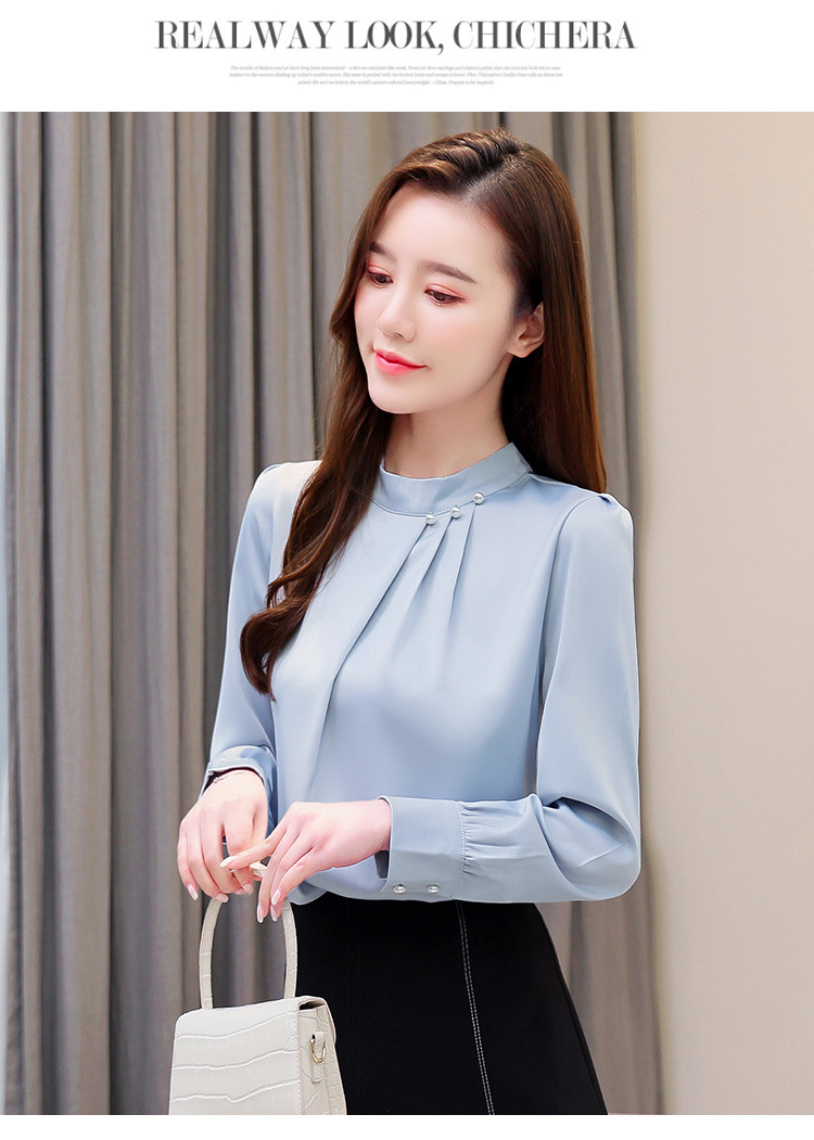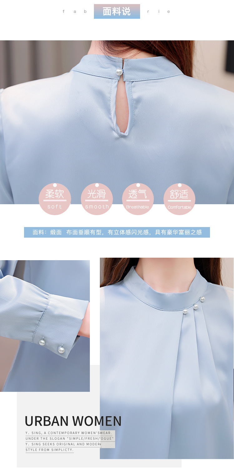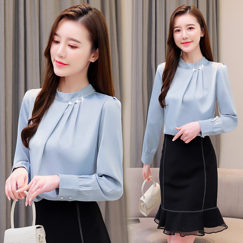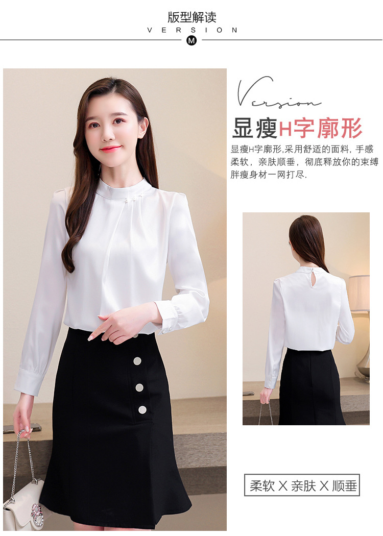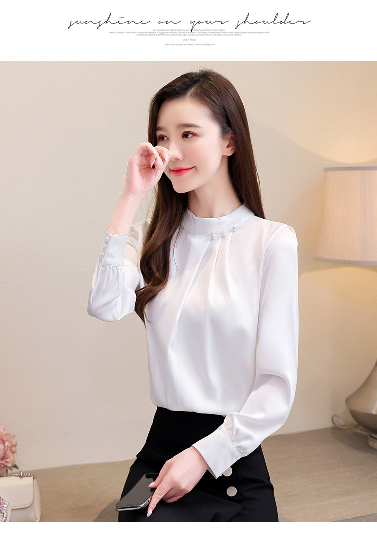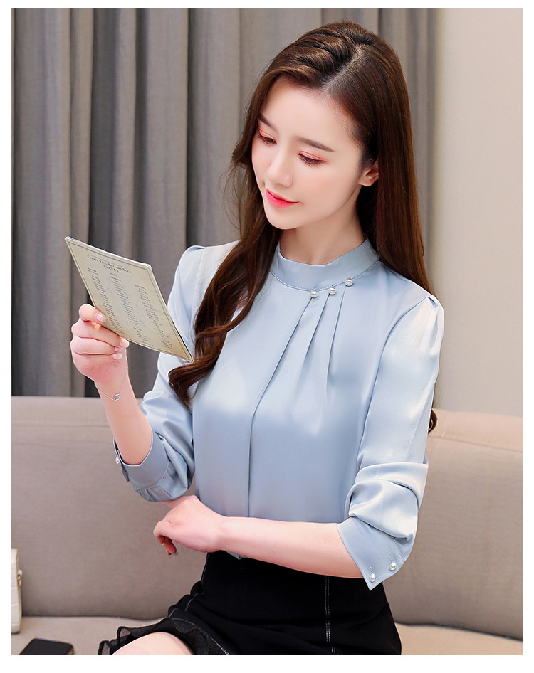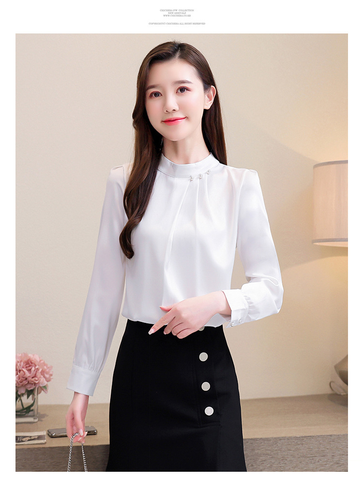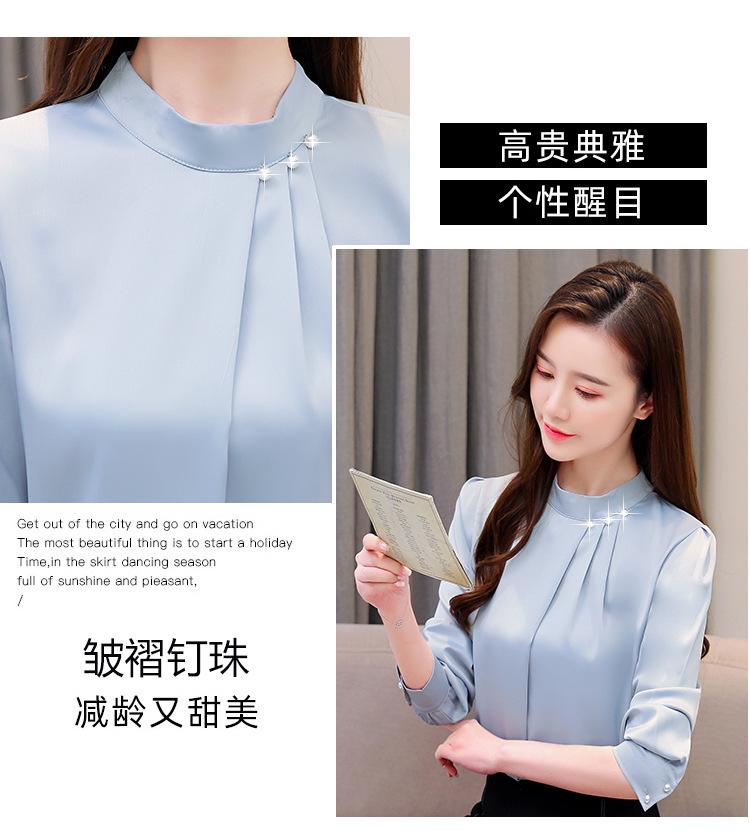 스탠드 칼라 쉬폰 셔츠 여성용 긴소매 서양식 내복 2024 스프링 셔츠 레드 새틴 탑스토어 가기