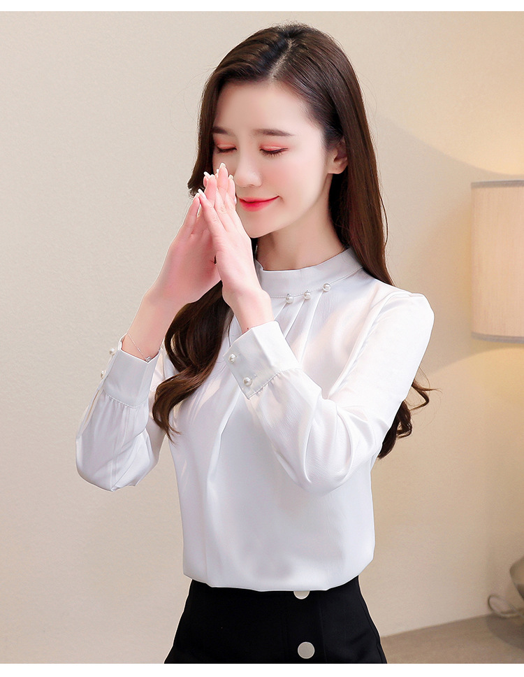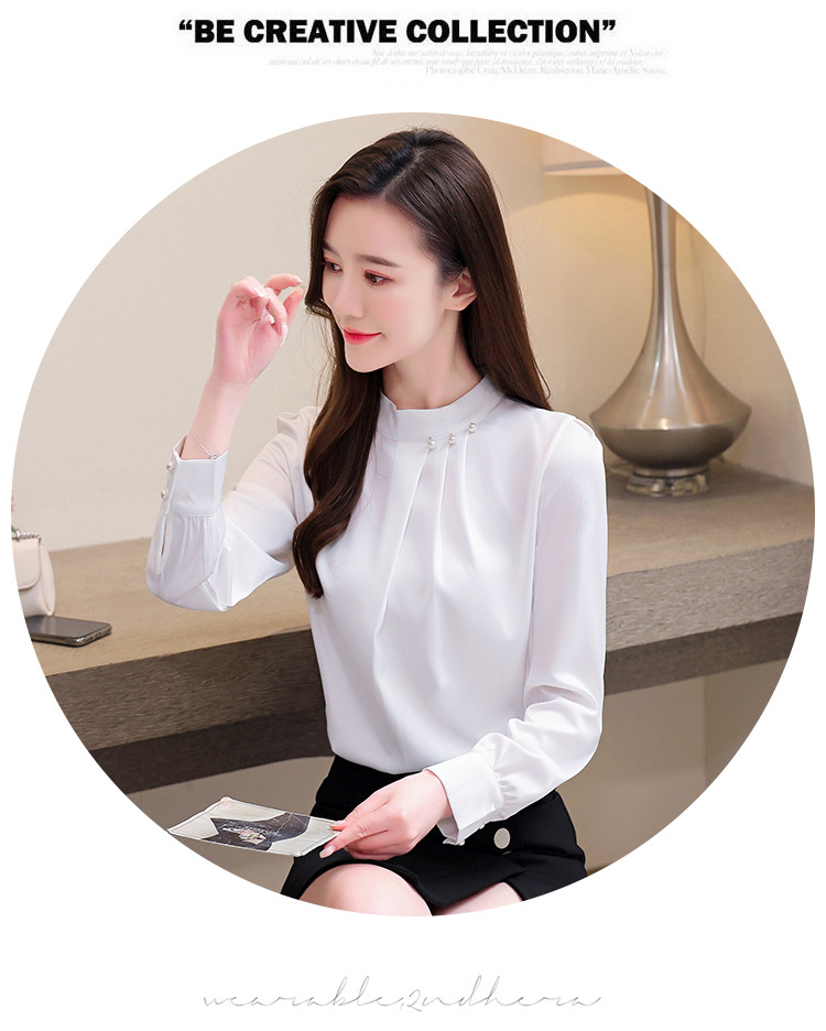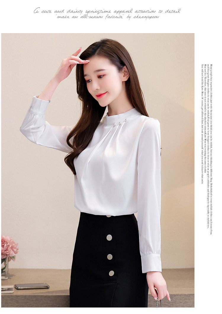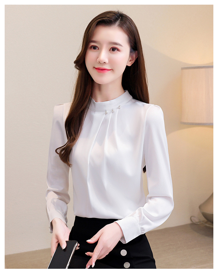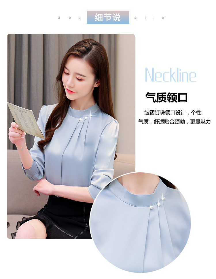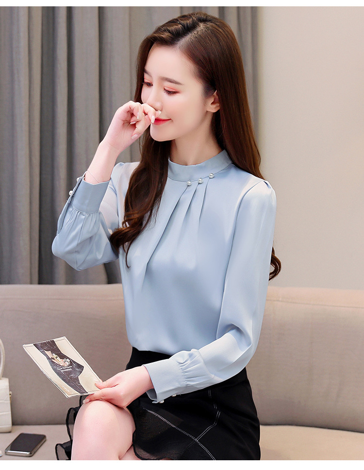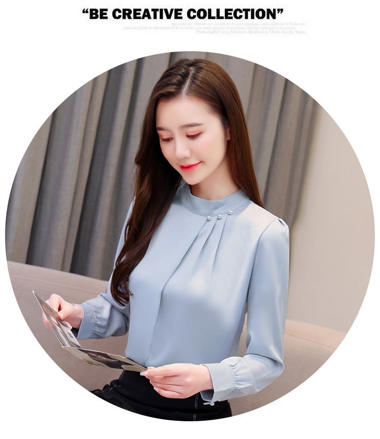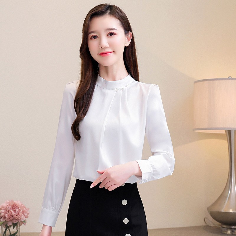 스탠드 칼라 쉬폰 셔츠 여성용 긴소매 서양식 내복 2024 스프링 셔츠 레드 새틴 탑스토어 가기