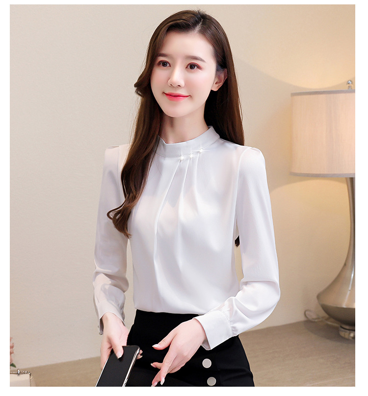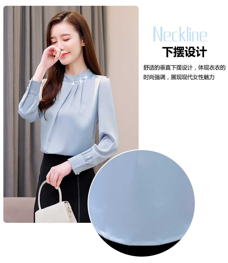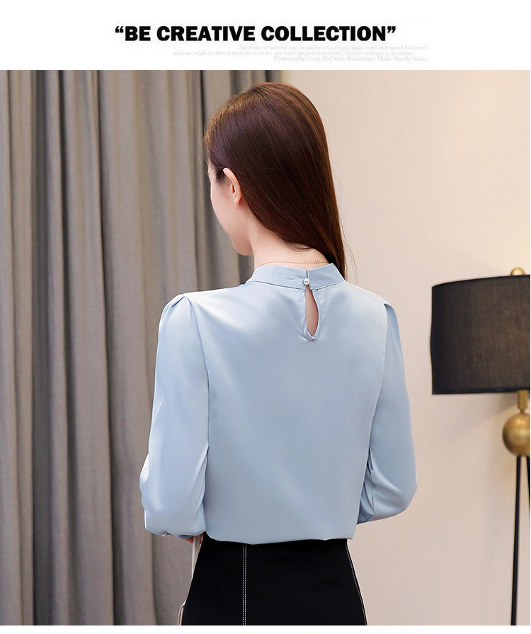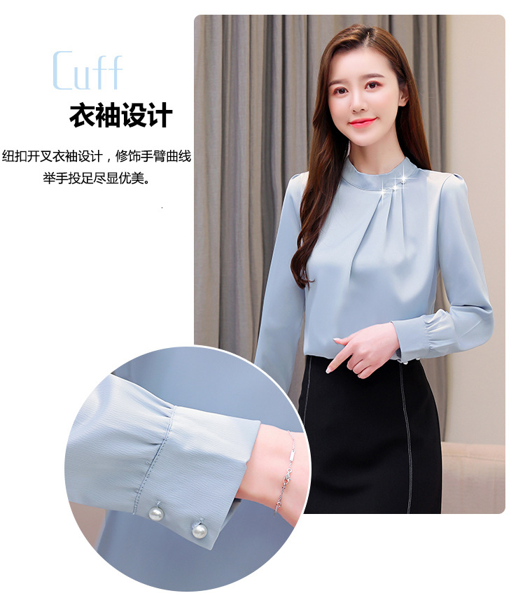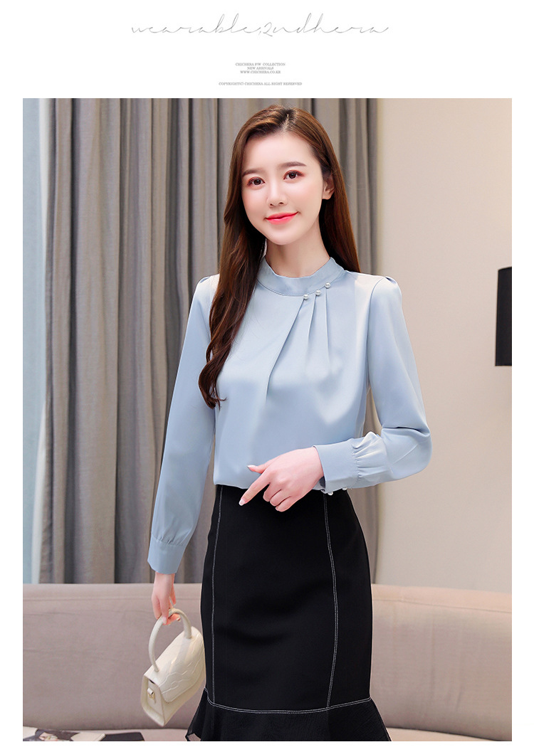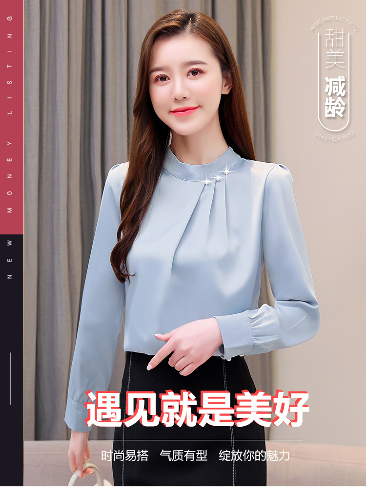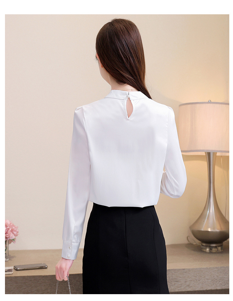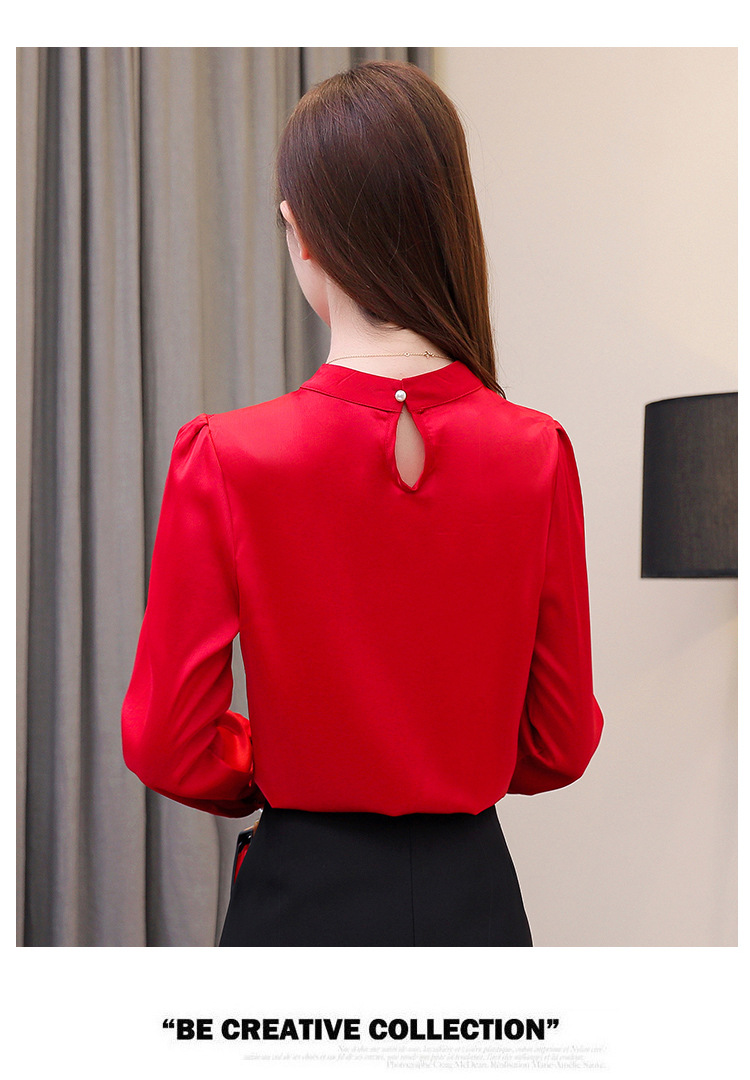 스탠드 칼라 쉬폰 셔츠 여성용 긴소매 서양식 내복 2024 스프링 셔츠 레드 새틴 탑