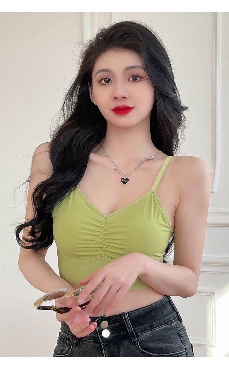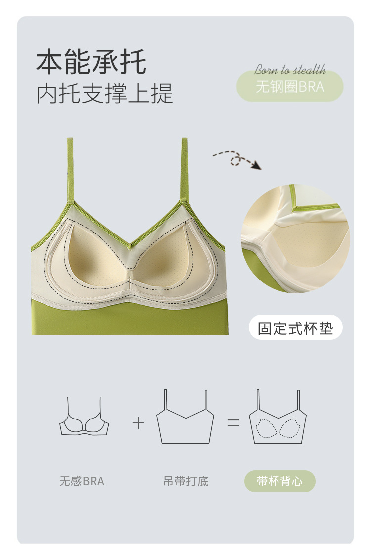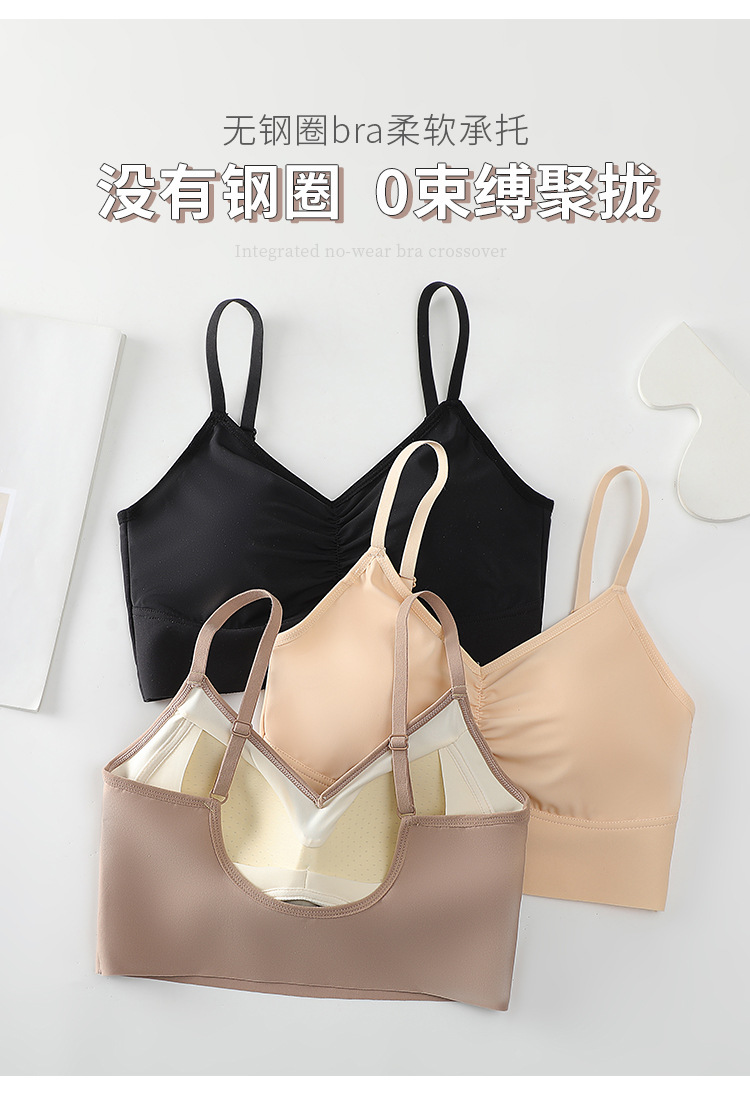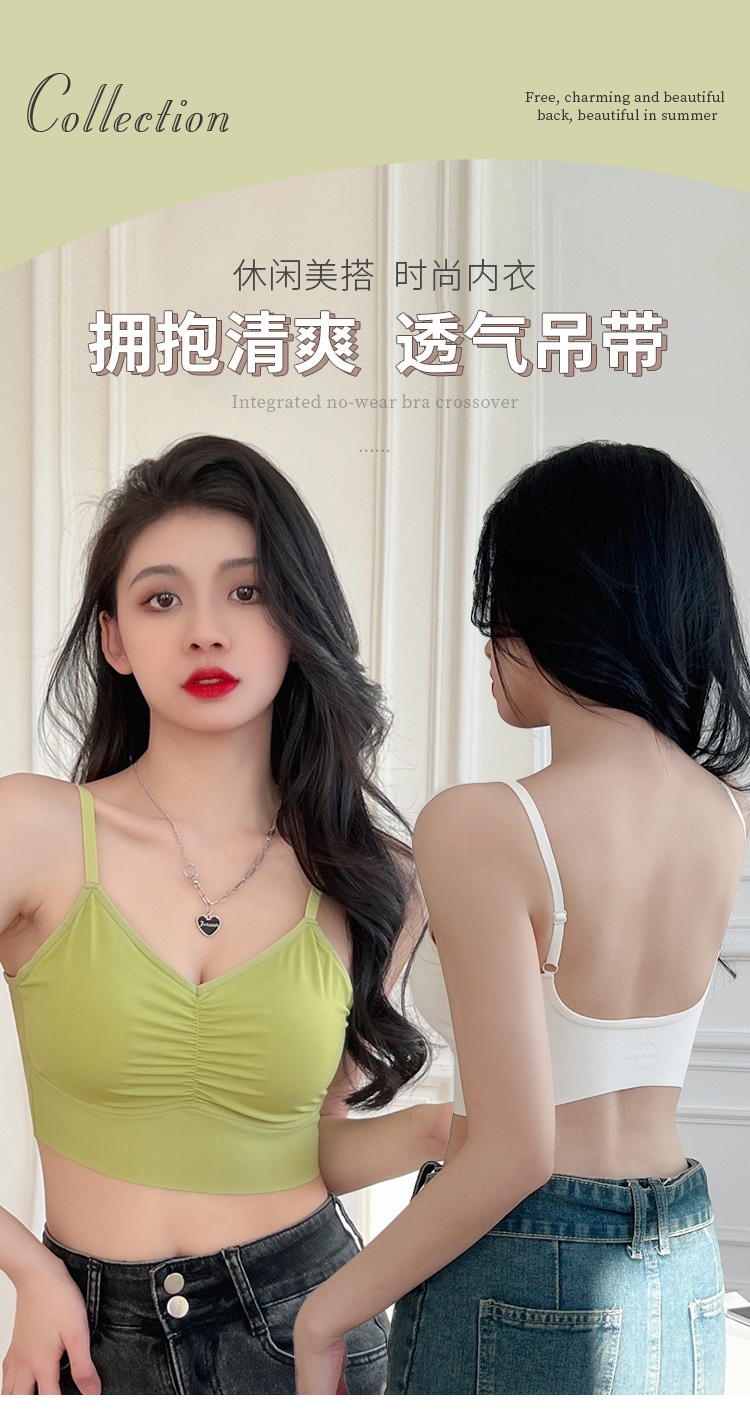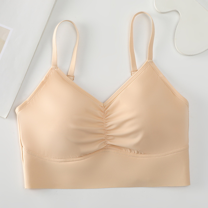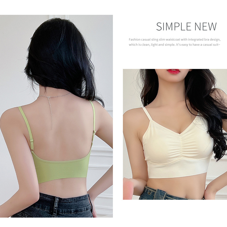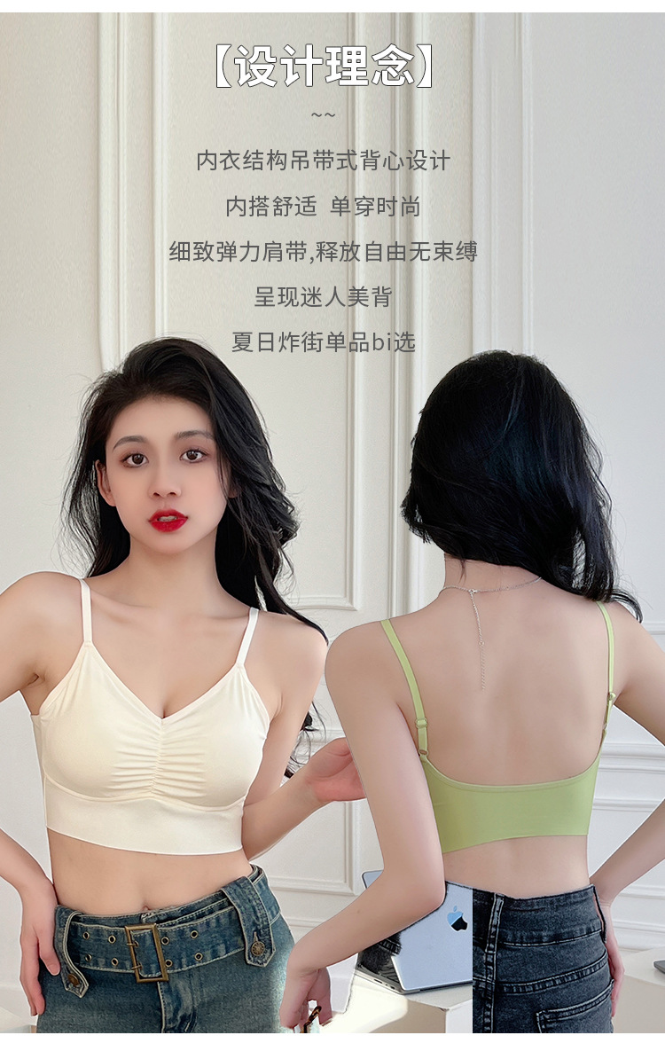 아이스 실크 이음매없는 백 속옷 스틸 링이없는 가슴 패드 브래지어가 달린 여성용 원피스 캐미솔스토어 가기