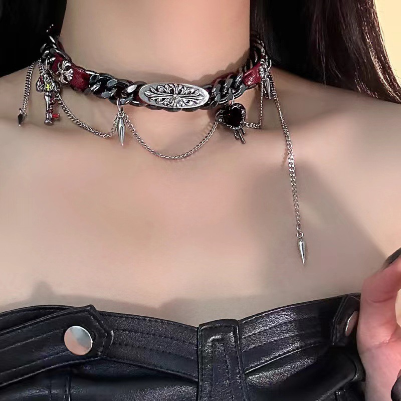 皮+铜链条+合金配件 皮链35.2+5.2cm 铜链37.4+5.3cm 重10g