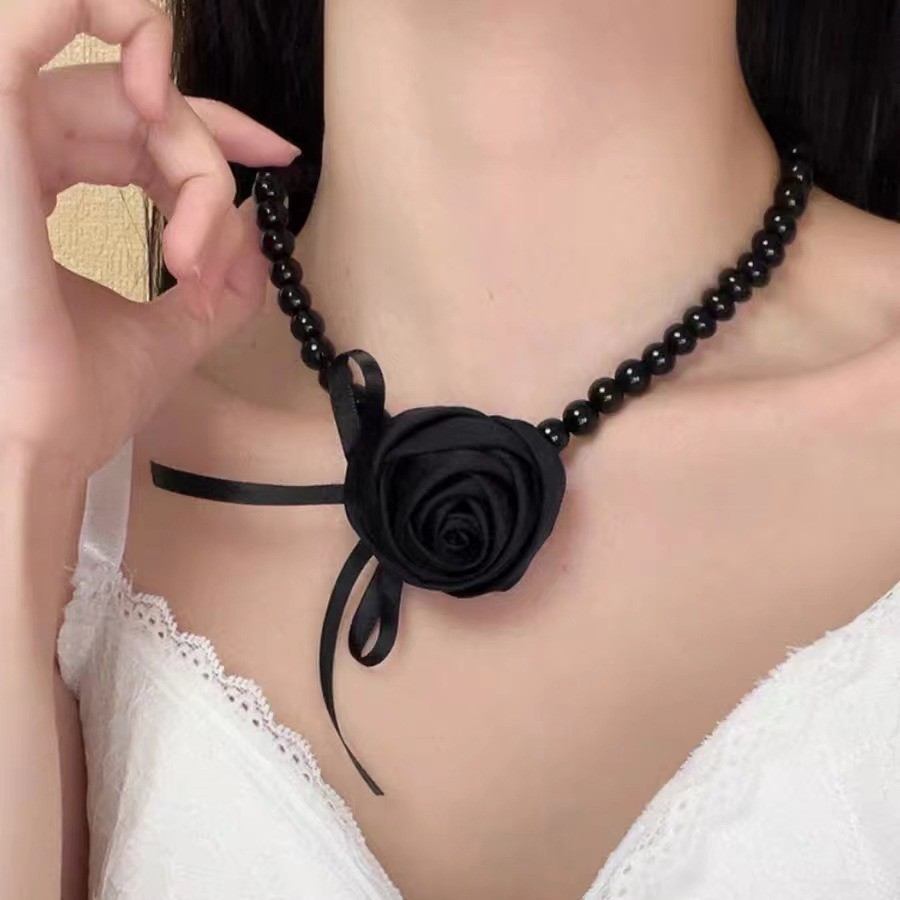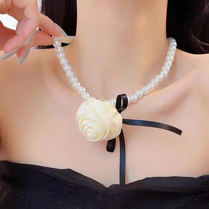 玻璃珍珠+布艺+织带 长40.6+9cm 重42g