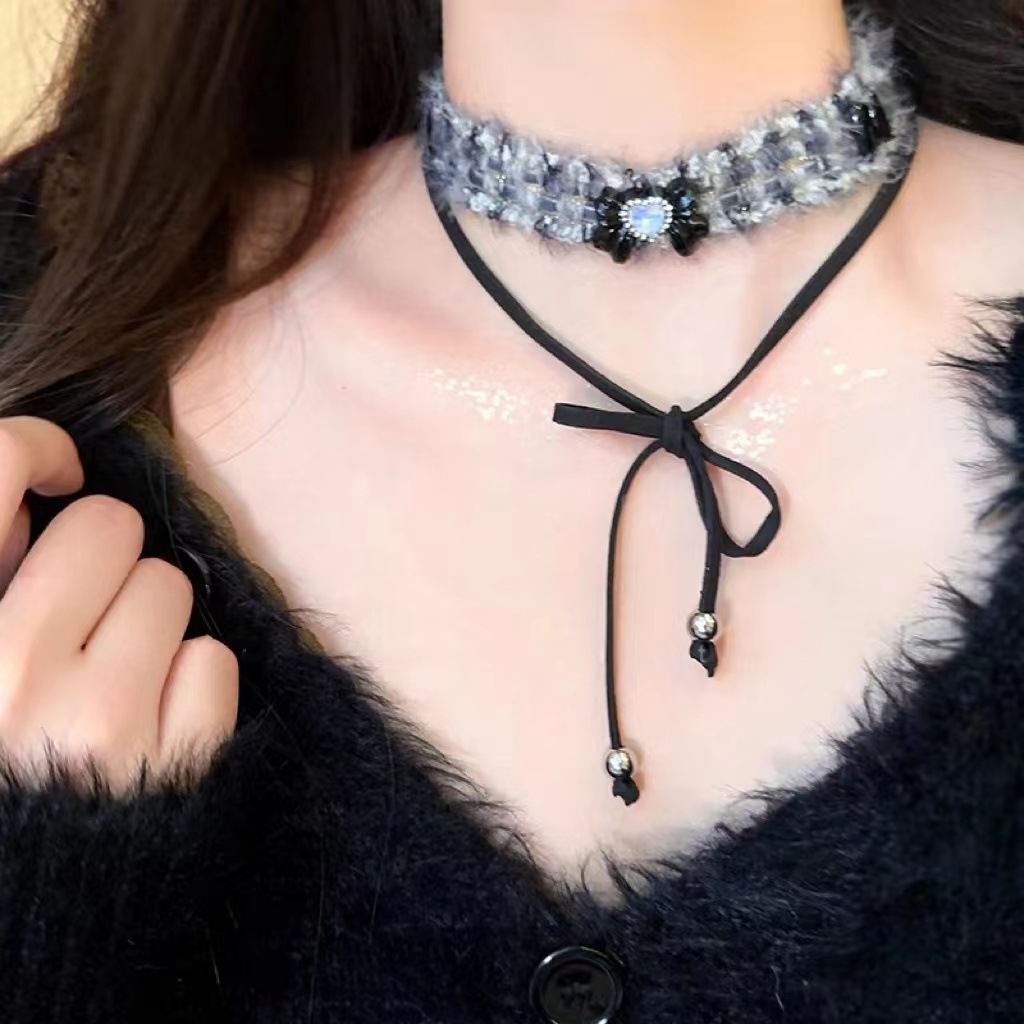 绒绳+铁链+珍珠+纽扣+布 长34+8.9cm 重69g