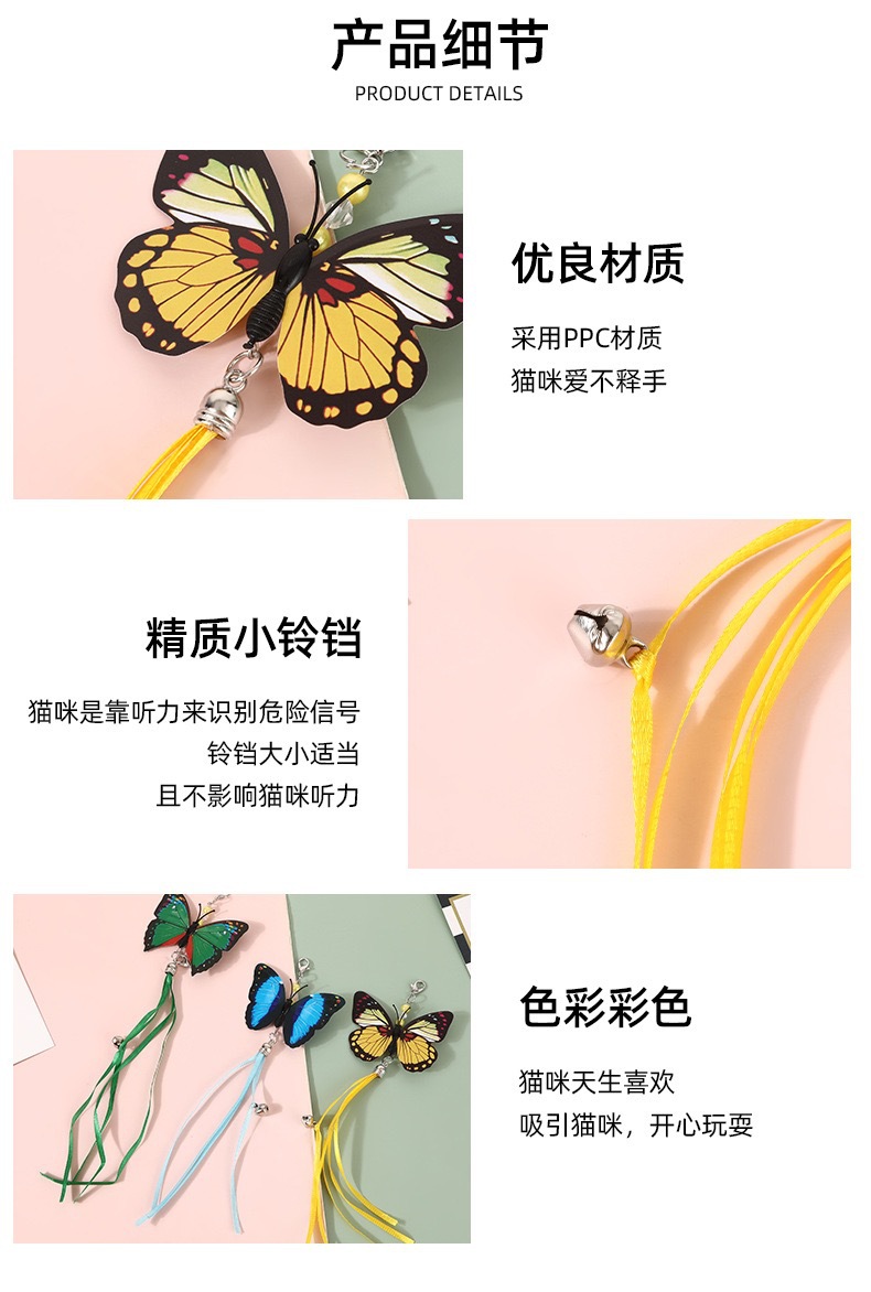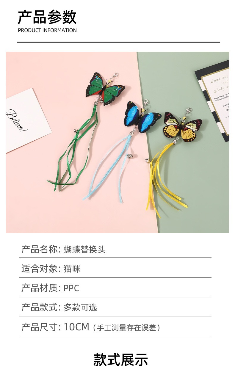 다채로운 나비 리본 고양이 재미 있은 스틱 교체 헤드 새로운 고양이 장난감 고양이를 유치 인터랙티브 애완 동물 용품 도매