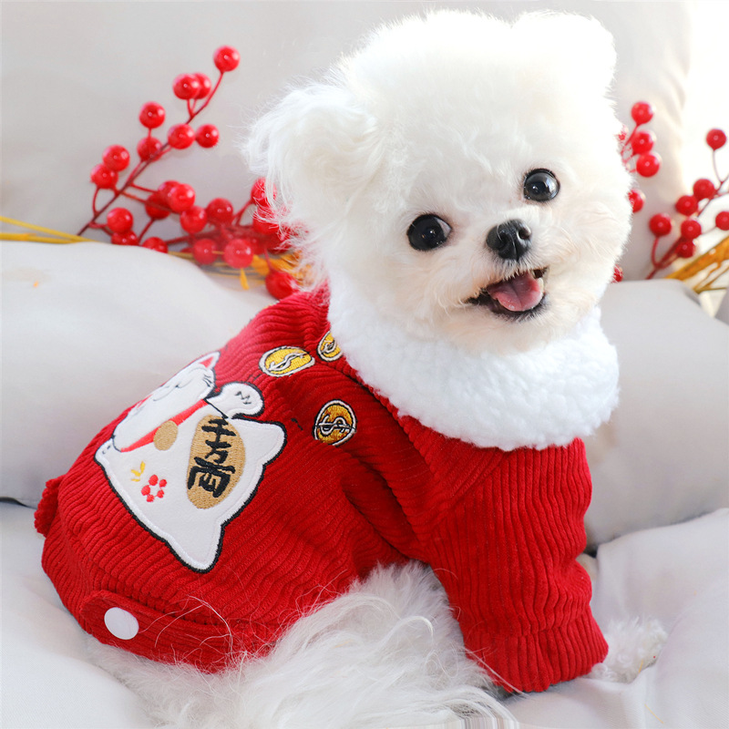 애완 동물 새해 옷 테디 베어 보메이 고양이 강아지 옷 가을과 겨울 축제 면화 패딩 옷 작은 개 새해 옷스토어 가기