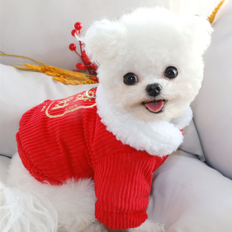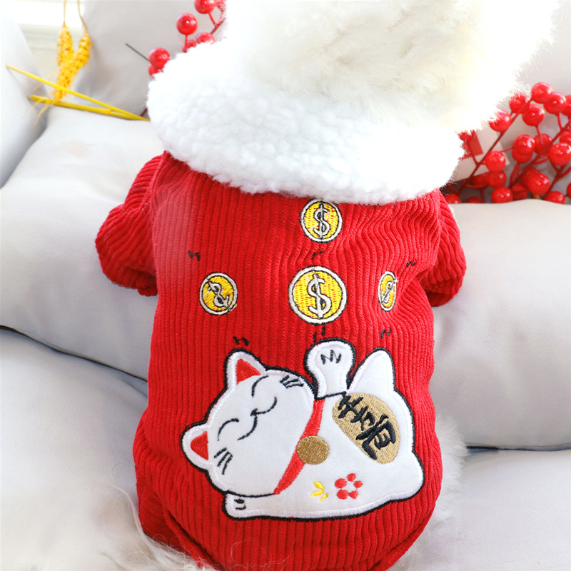 애완 동물 새해 옷 테디 베어 보메이 고양이 강아지 옷 가을과 겨울 축제 면화 패딩 옷 작은 개 새해 옷