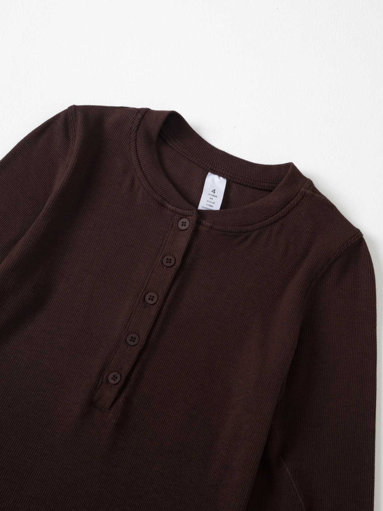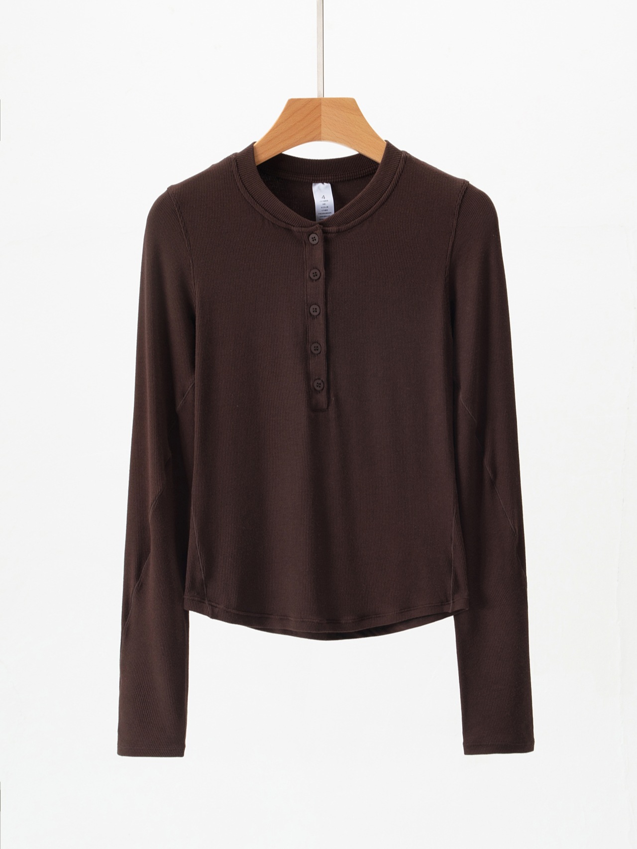 새로운 헨리 셔츠 여성 긴팔 티셔츠 슬림 요가 의류 고탄력 리브 니트 v 넥 버튼 바닥 셔츠 스포츠