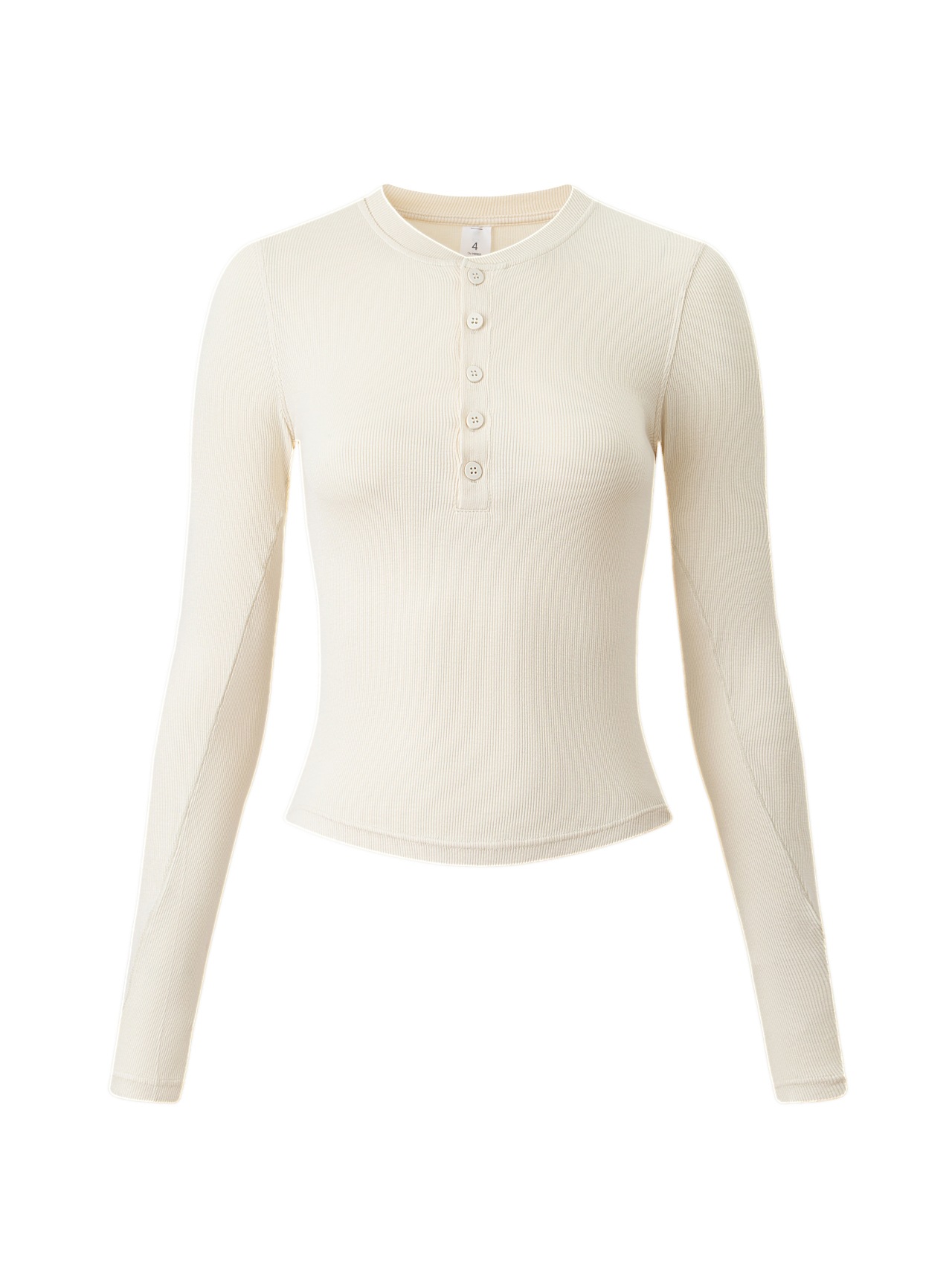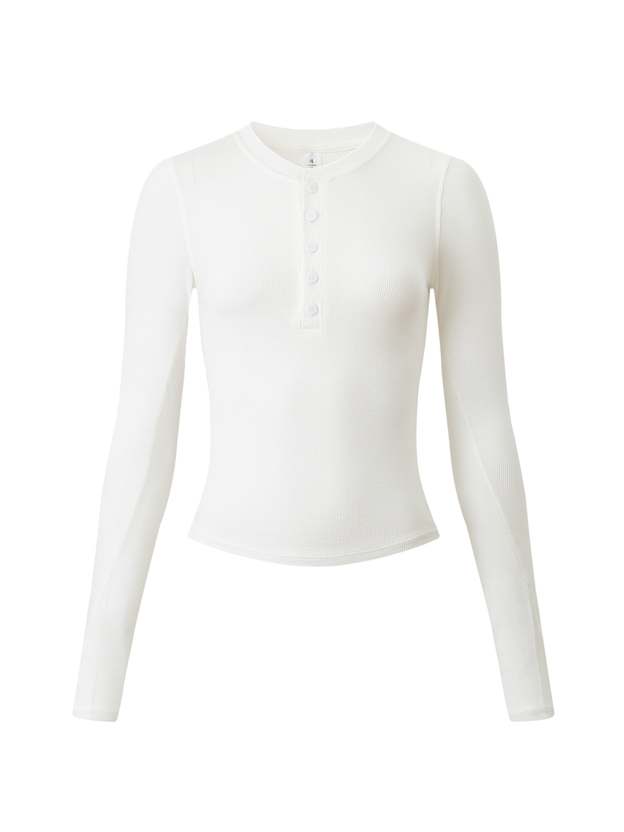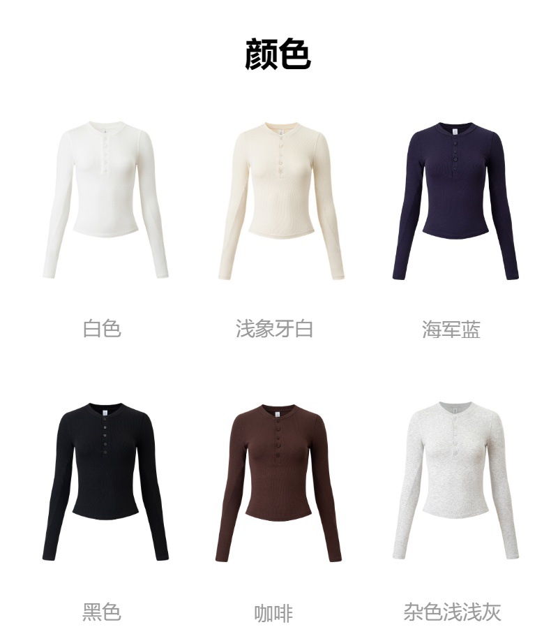 새로운 헨리 셔츠 여성 긴팔 티셔츠 슬림 요가 의류 고탄력 리브 니트 v 넥 버튼 바닥 셔츠 스포츠스토어 가기