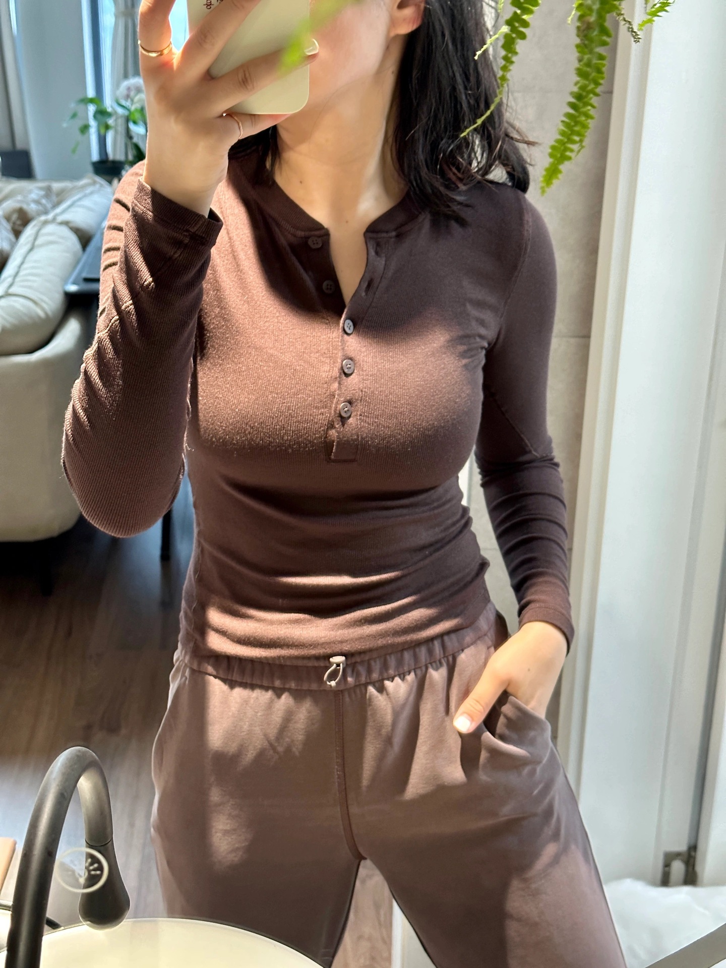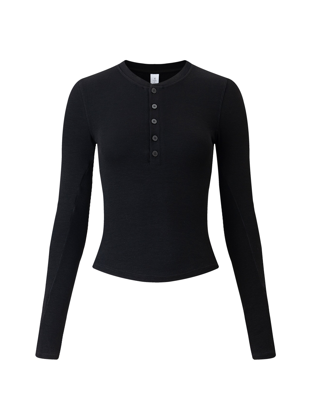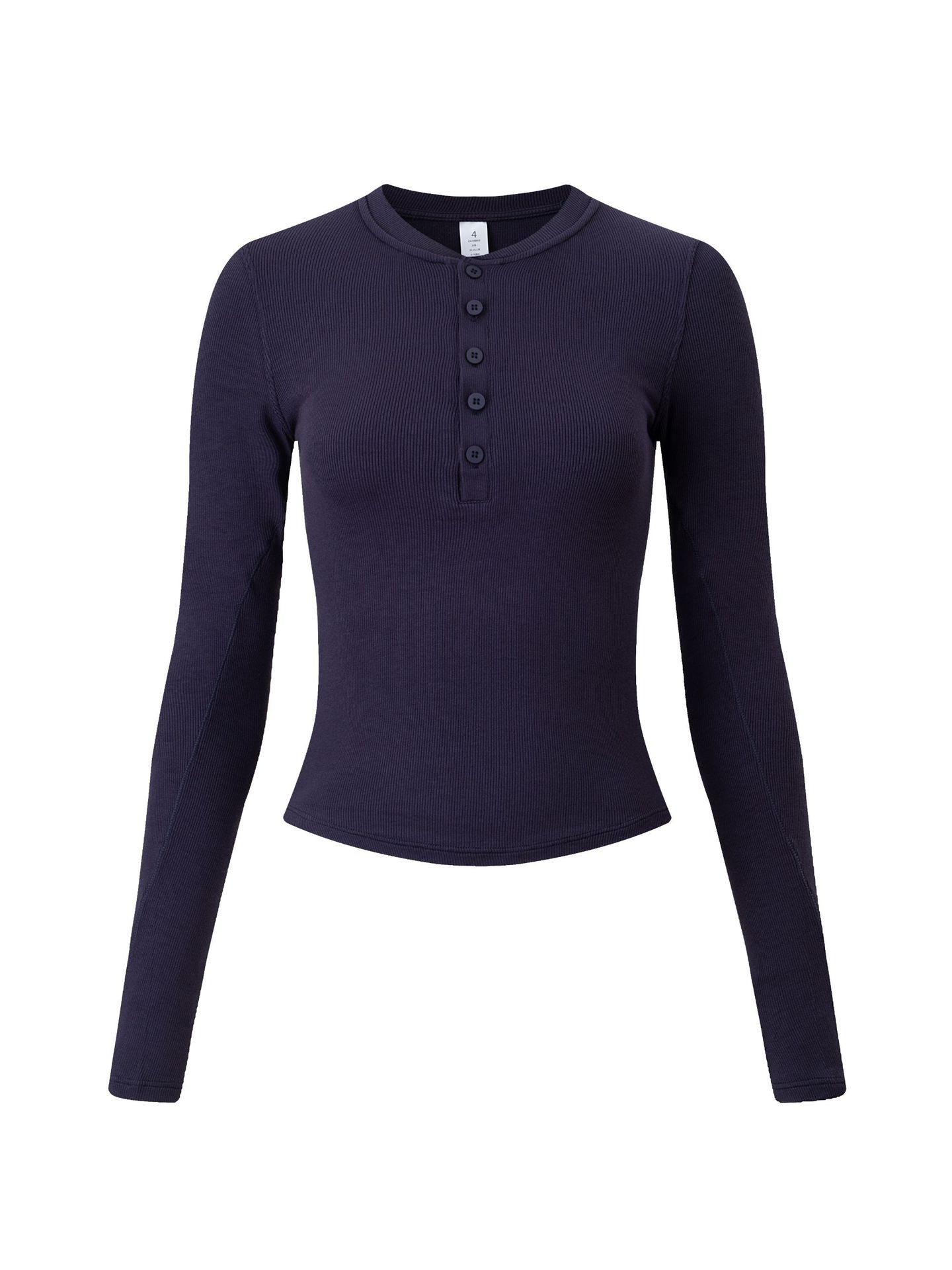 새로운 헨리 셔츠 여성 긴팔 티셔츠 슬림 요가 의류 고탄력 리브 니트 v 넥 버튼 바닥 셔츠 스포츠스토어 가기