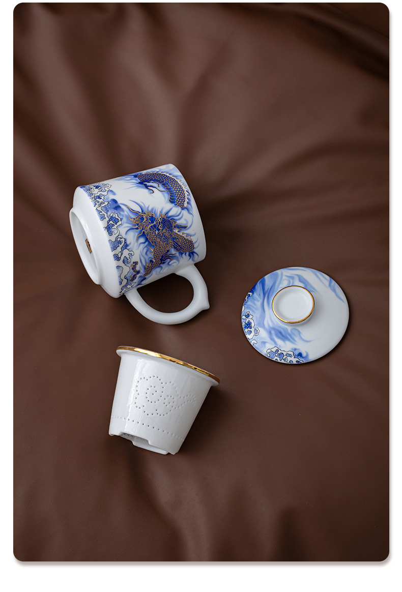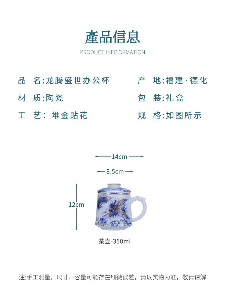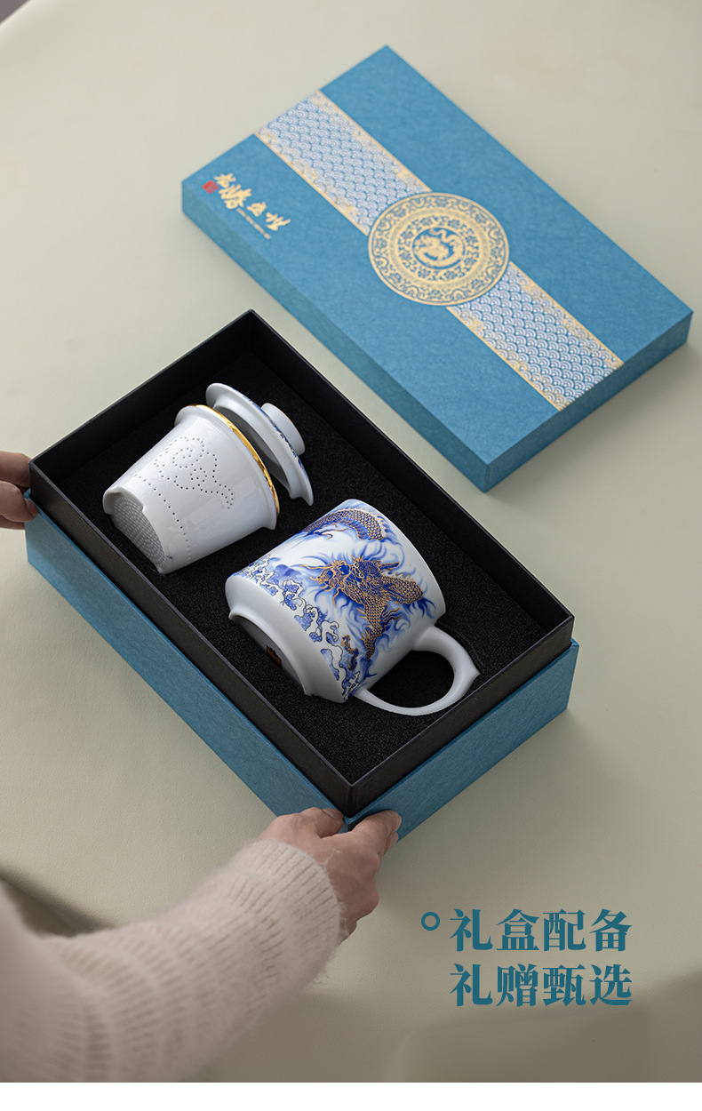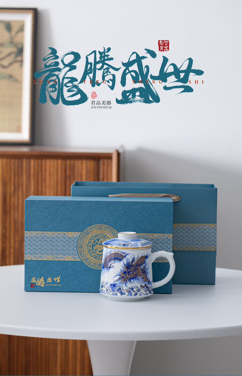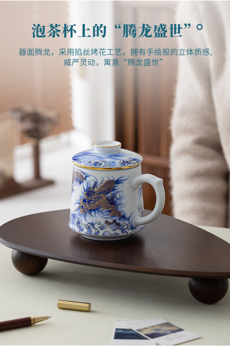 Tenglong Shengshi 오피스 컵 Dehua 화이트 도자기 드래곤 년 차 분리 버블 컵 뚜껑 필터 비즈니스 선물 로고