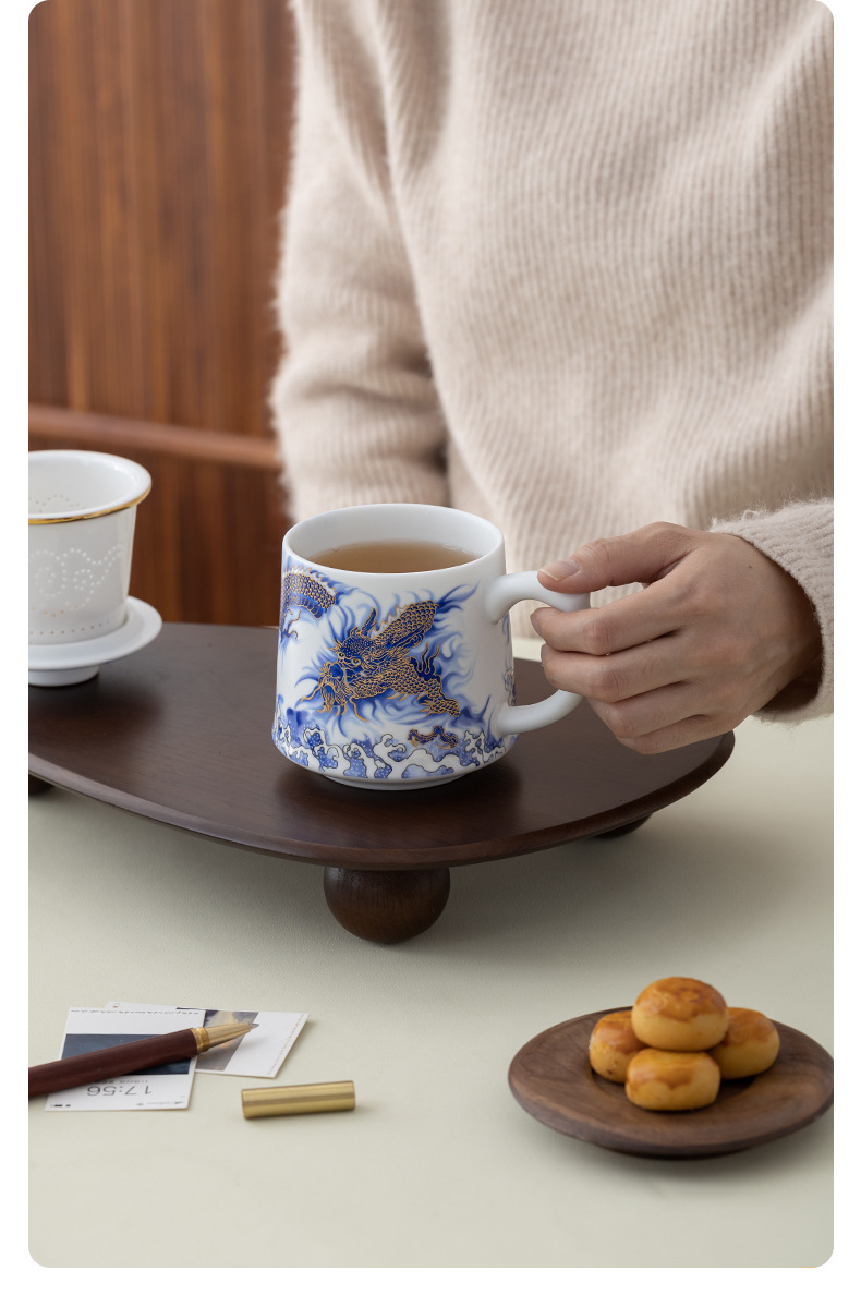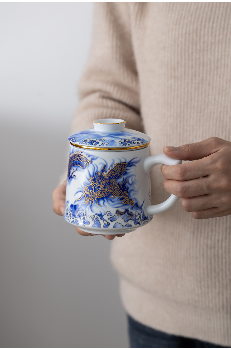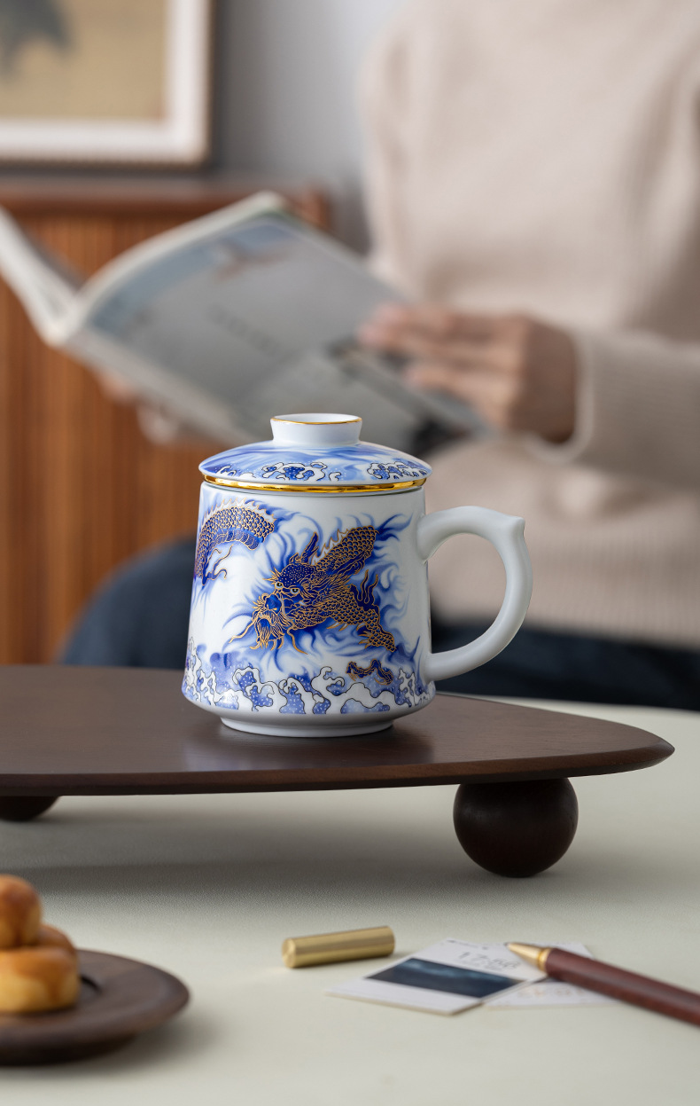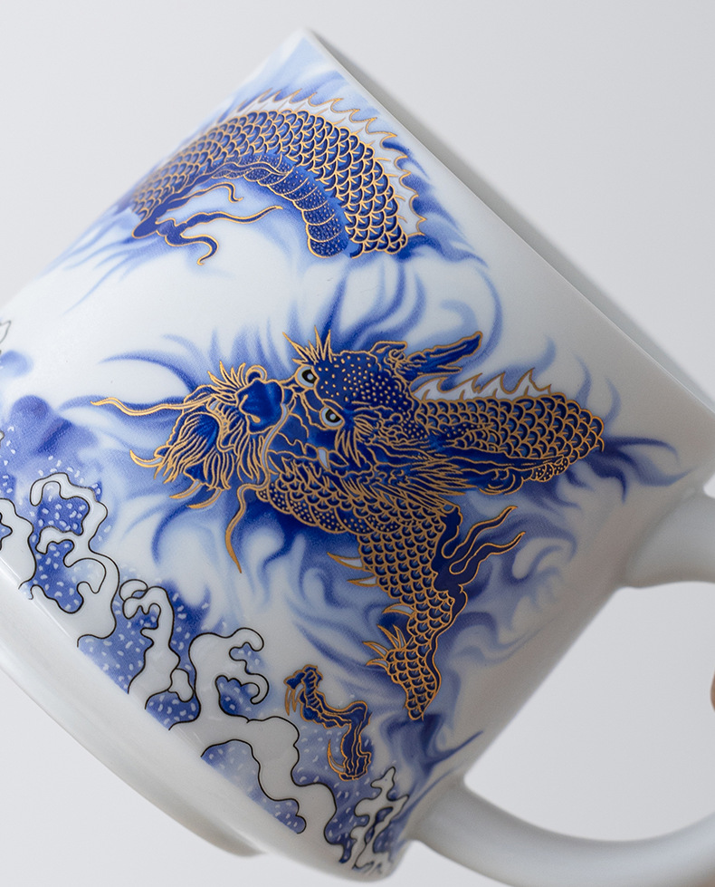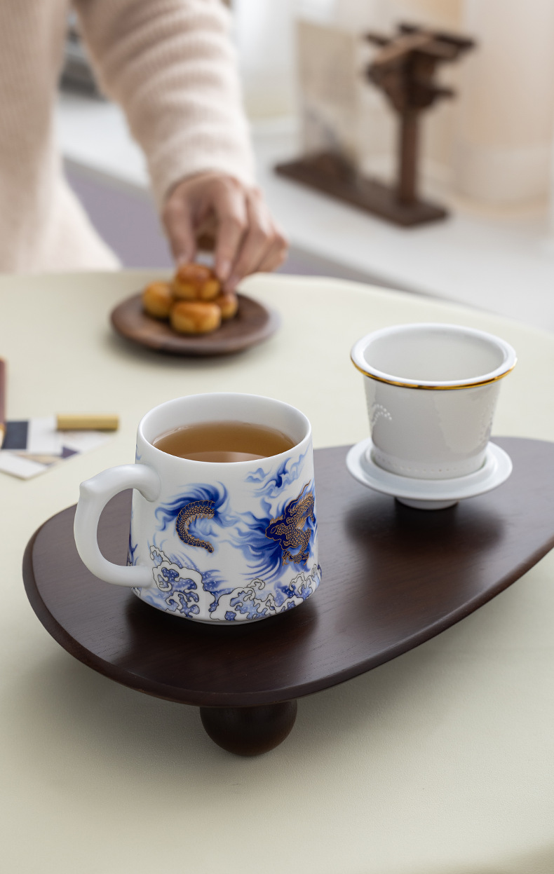 Tenglong Shengshi 오피스 컵 Dehua 화이트 도자기 드래곤 년 차 분리 버블 컵 뚜껑 필터 비즈니스 선물 로고