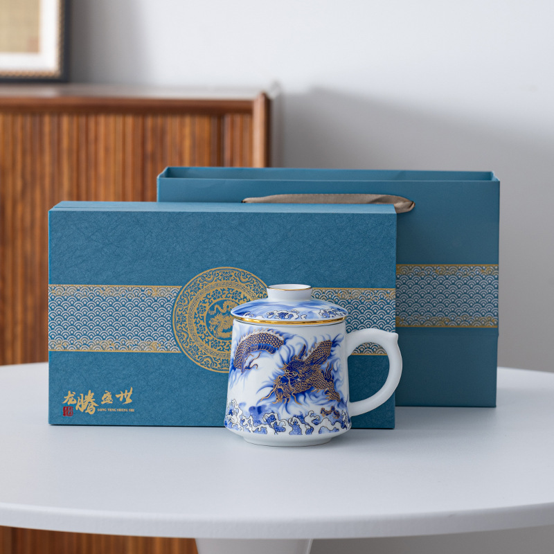 • Tenglong Shengshi 흰색 도자기 사무실 컵 선물 상자