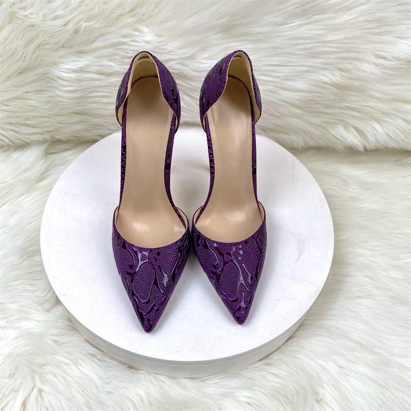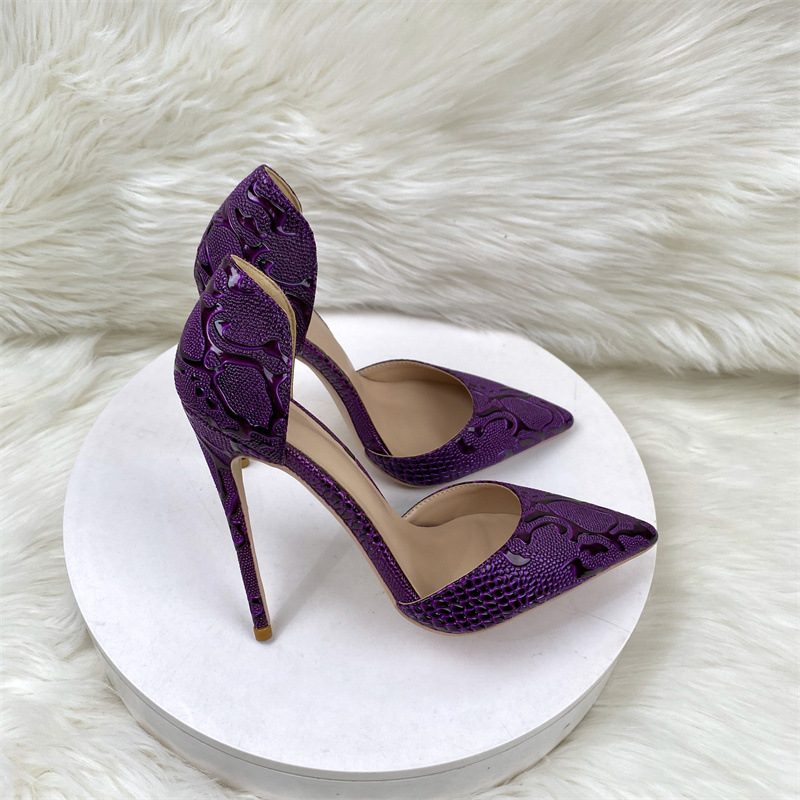 국경 간 대외 무역 도매 유럽과 미국의 새로운 보라색 양각 하이힐 12CM 뾰족한 스틸레토 로우 컷 여성 신발 샌들스토어 가기