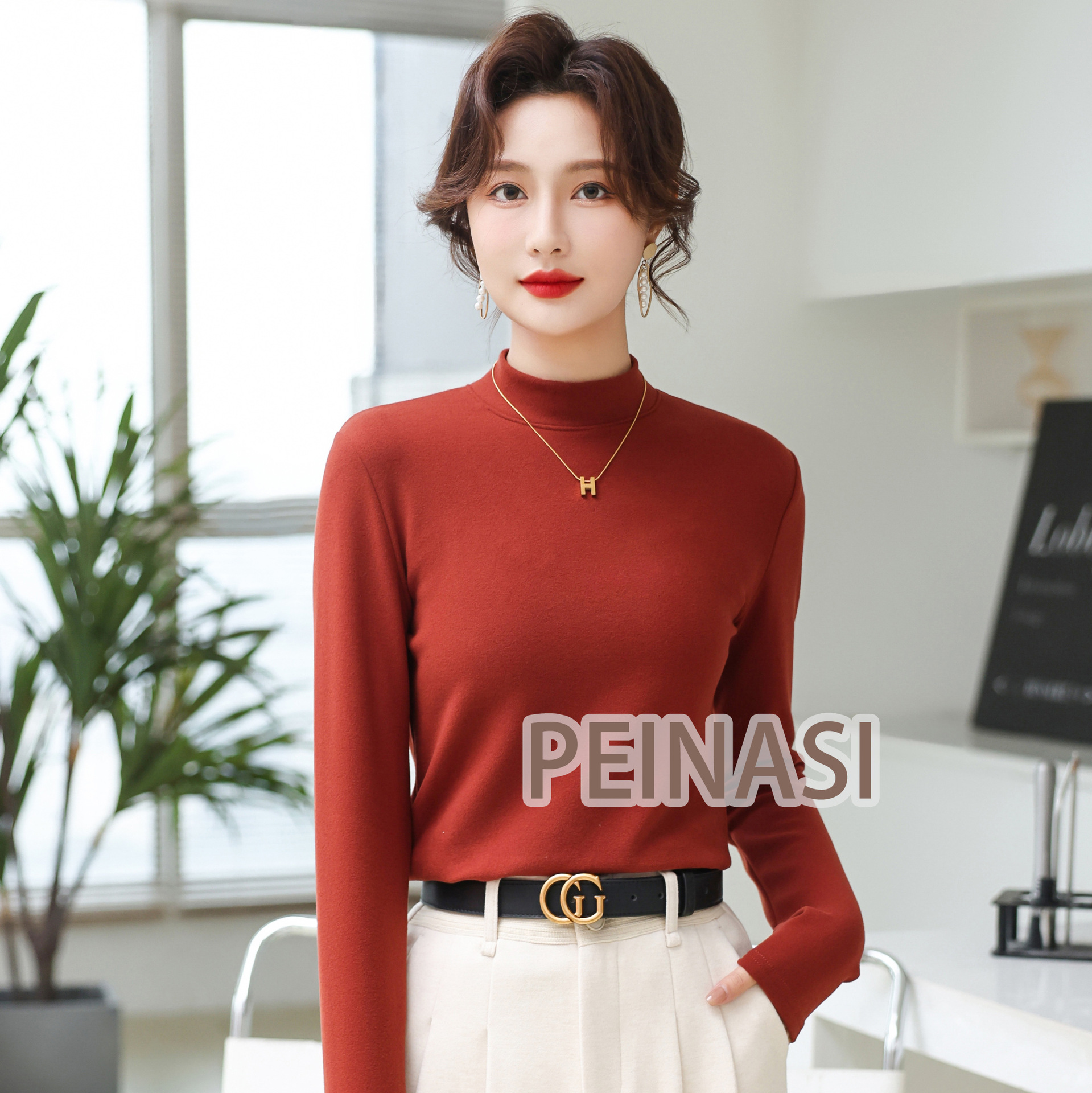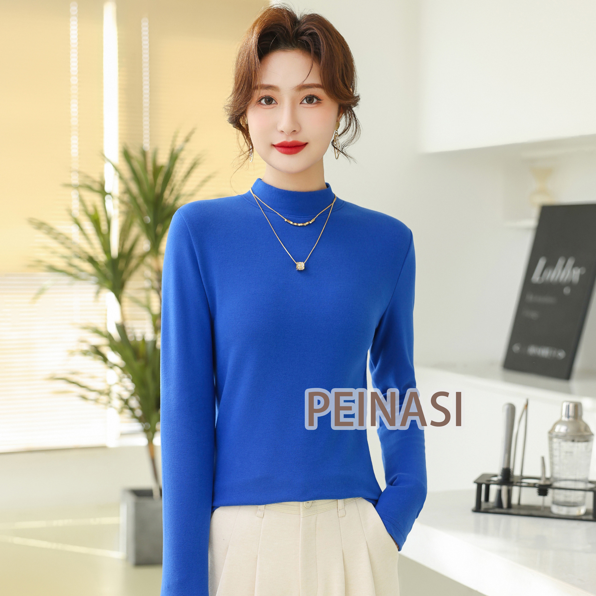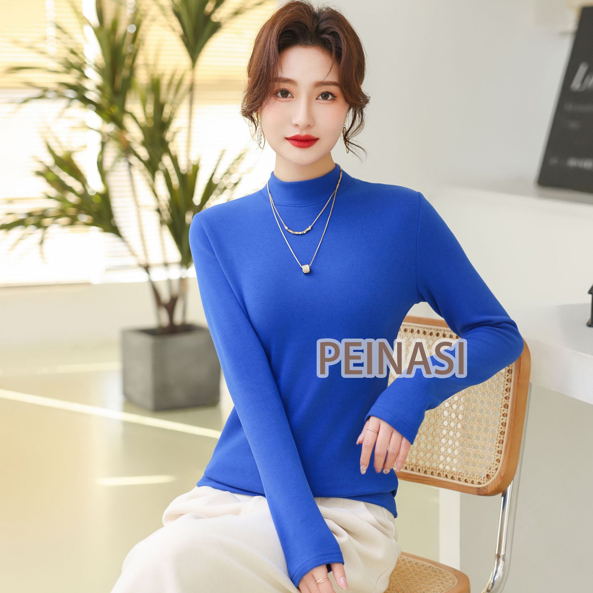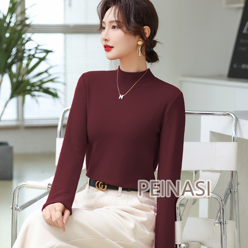 양면 호주 벨벳 작은 스탠드 칼라 슬림 핏 하이 퀄리티 긴 소매 단색 기본 셔츠 내부 따뜻한 최고 인터넷 유명 인사스토어 가기