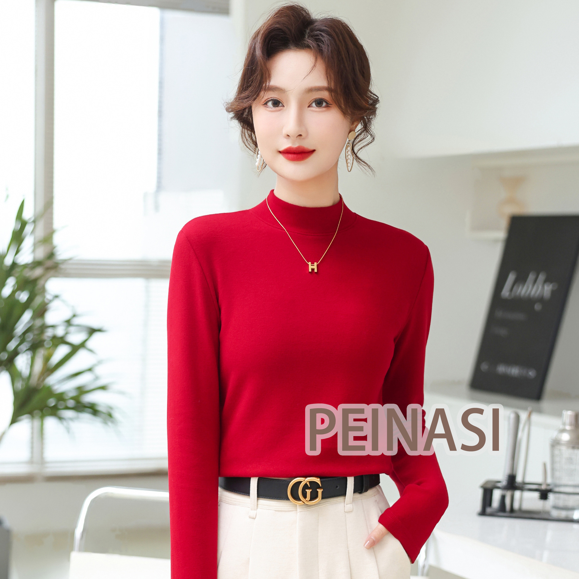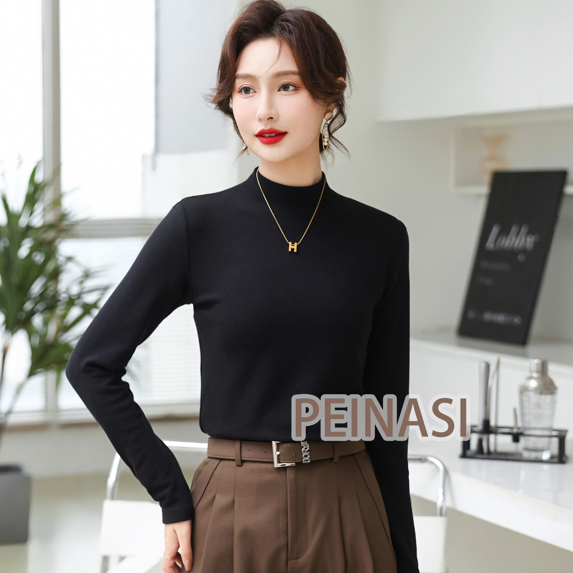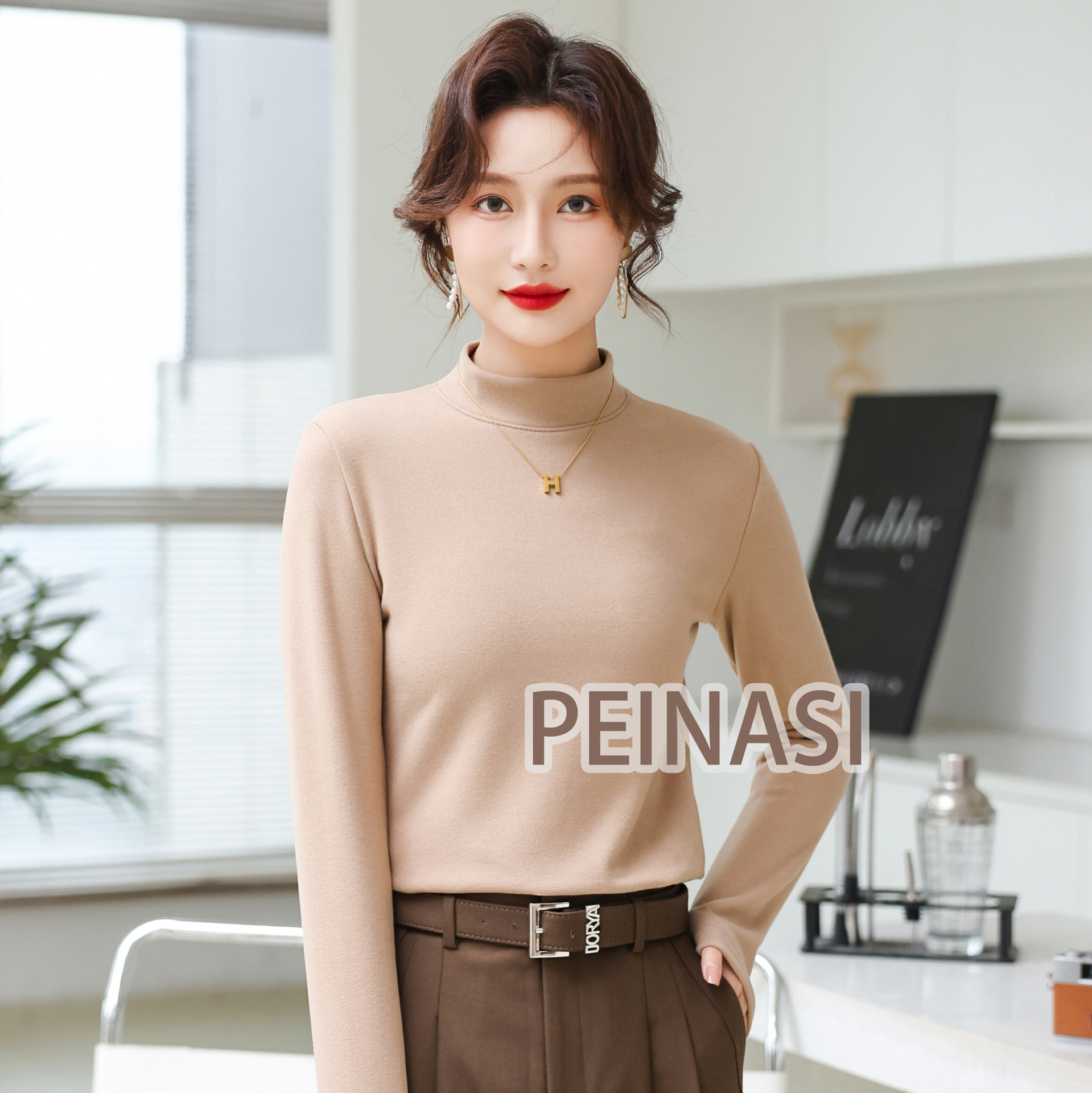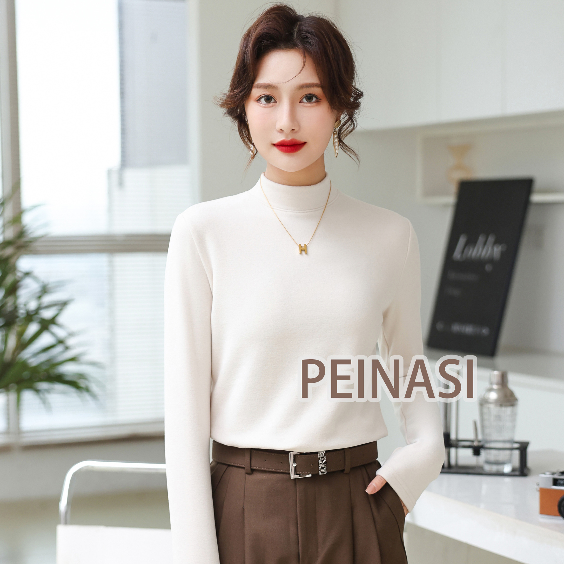 양면 호주 벨벳 작은 스탠드 칼라 슬림 핏 하이 퀄리티 긴 소매 단색 기본 셔츠 내부 따뜻한 최고 인터넷 유명 인사스토어 가기