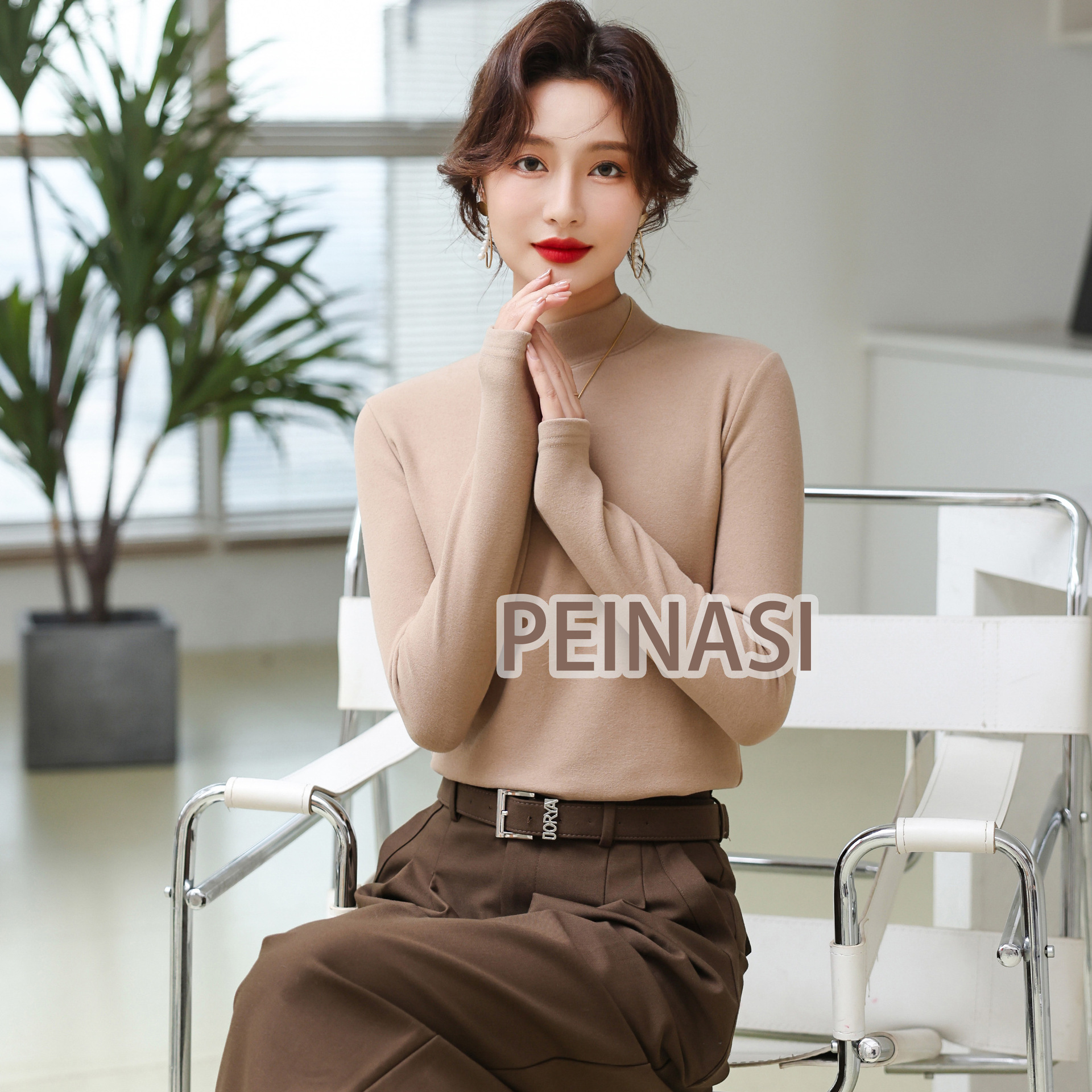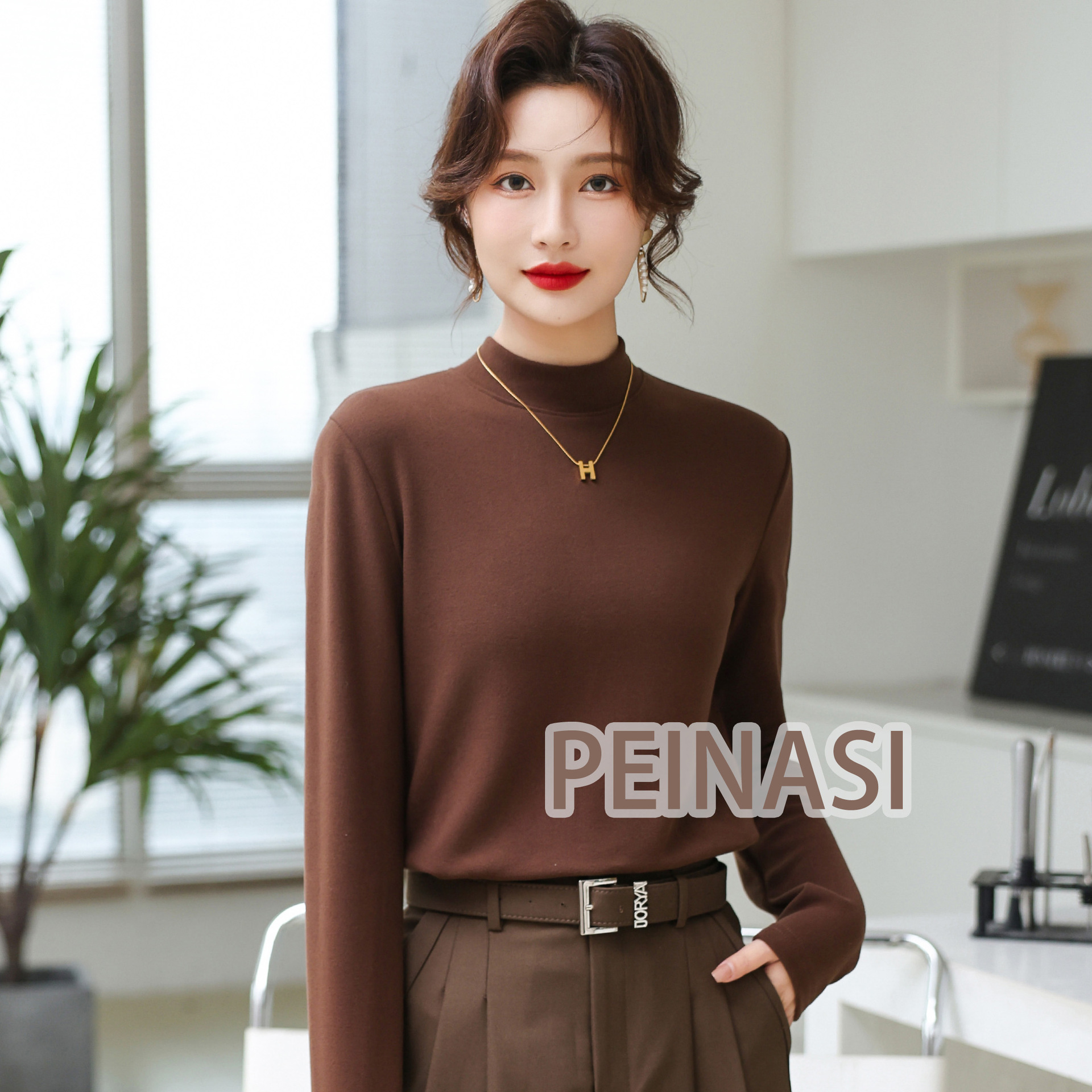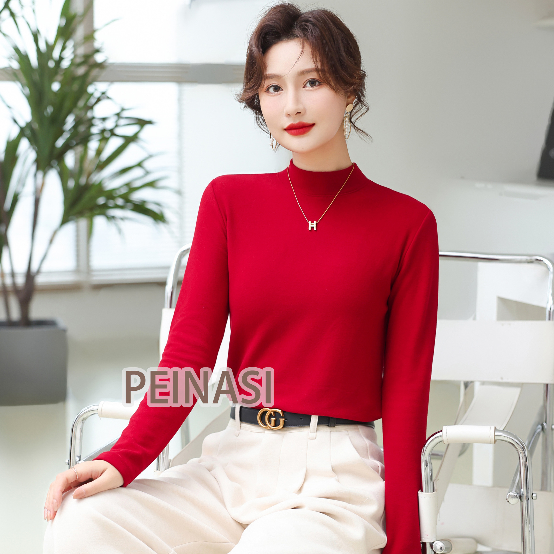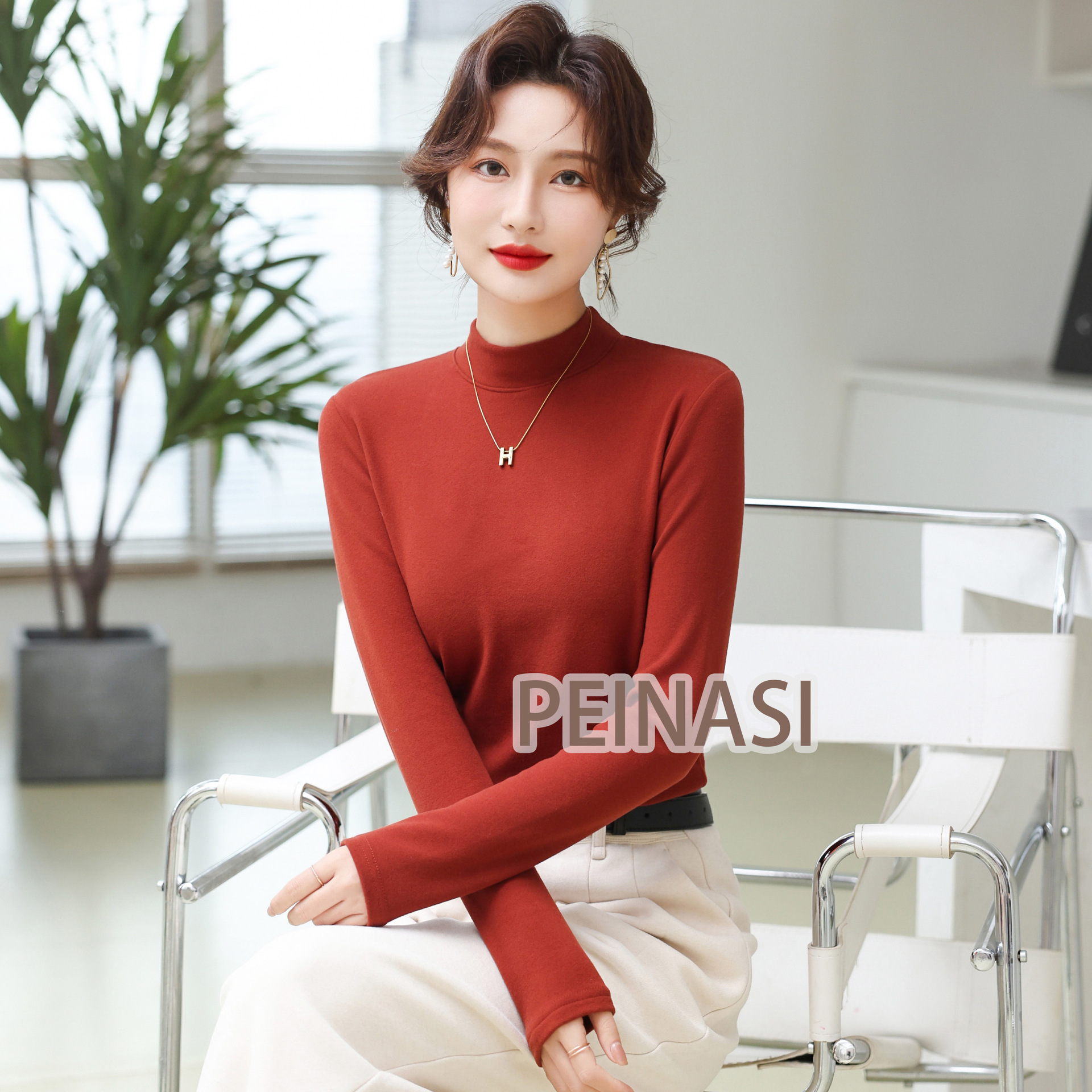 양면 호주 벨벳 작은 스탠드 칼라 슬림 핏 하이 퀄리티 긴 소매 단색 기본 셔츠 내부 따뜻한 최고 인터넷 유명 인사스토어 가기