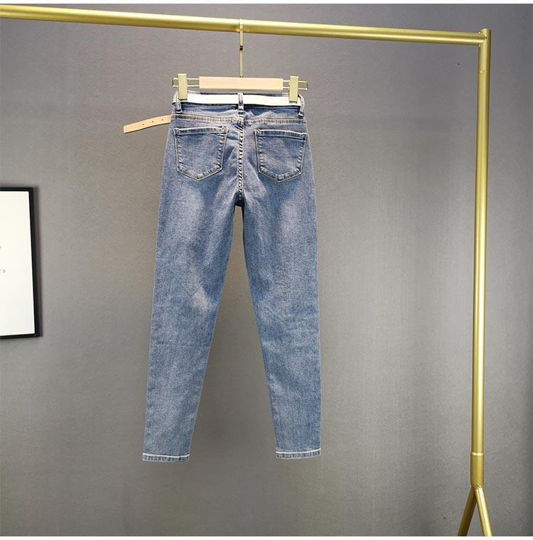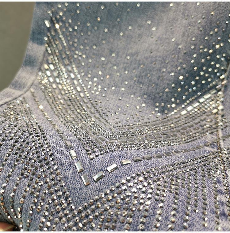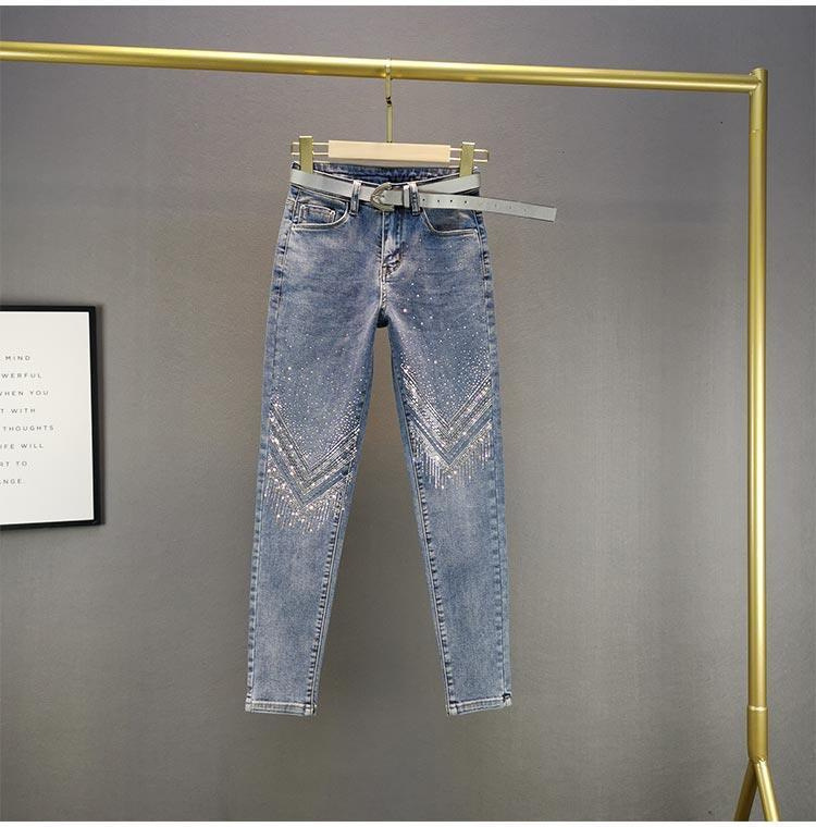 유럽 스타일 헤비 듀티 라인스톤 스키니 진 여성용 2025 여름 신상 만능 하이웨이스트 슬림핏 나인포인트 팬츠스토어 가기