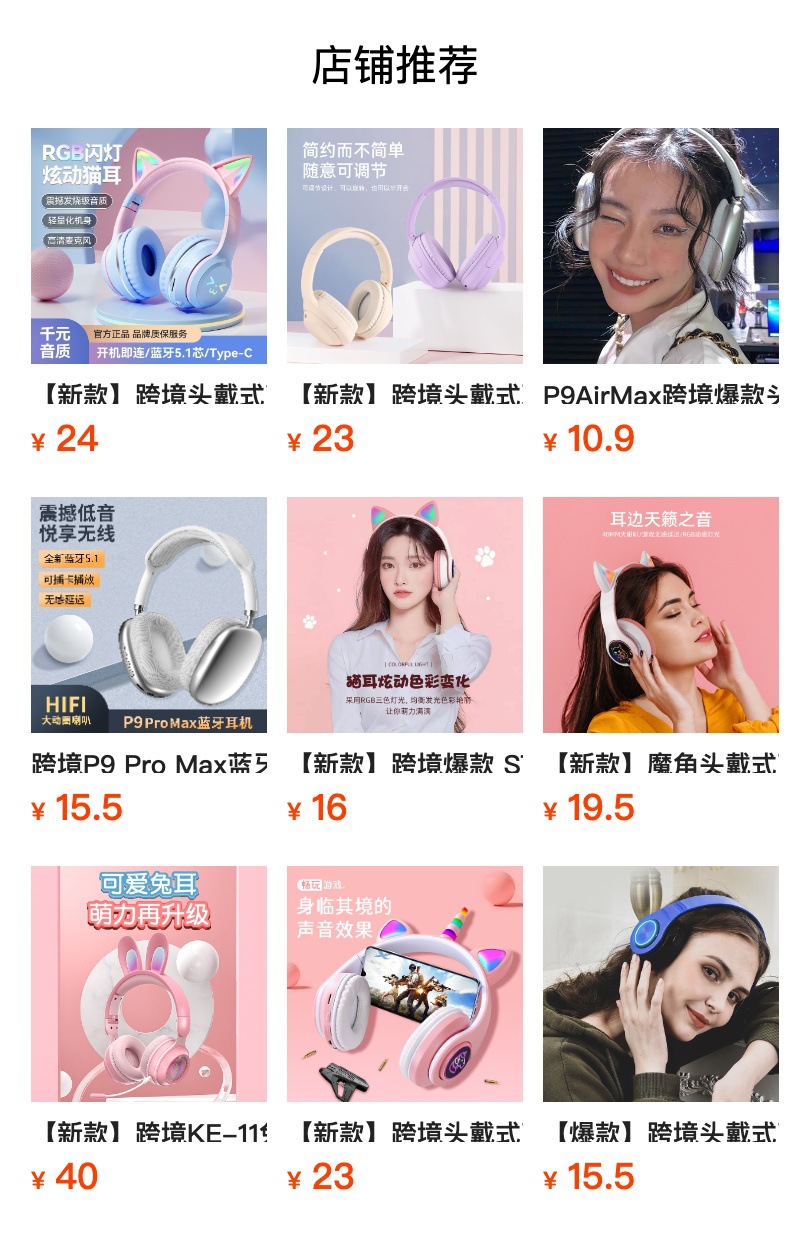 [신규] 국경 간 블루투스 헤드셋 BT035 접이식 카드 그라디언트 고양이 귀 발광 헤드셋스토어 가기