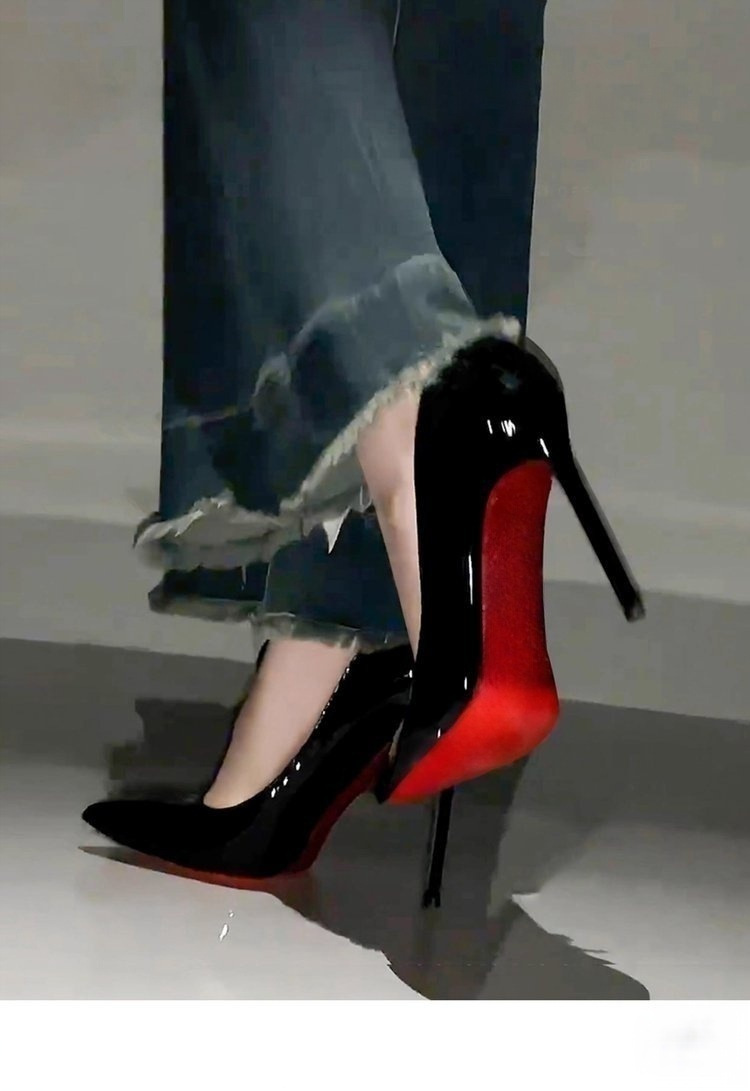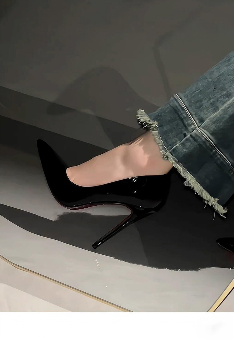 붉은 밑바닥 하이힐 여성용 스틸레토 힐 봄 가을 새 2024 아름다운 섹시한 웨딩 슈즈 블랙 특허 가죽 포인팅 싱글 레이어 신발스토어 가기