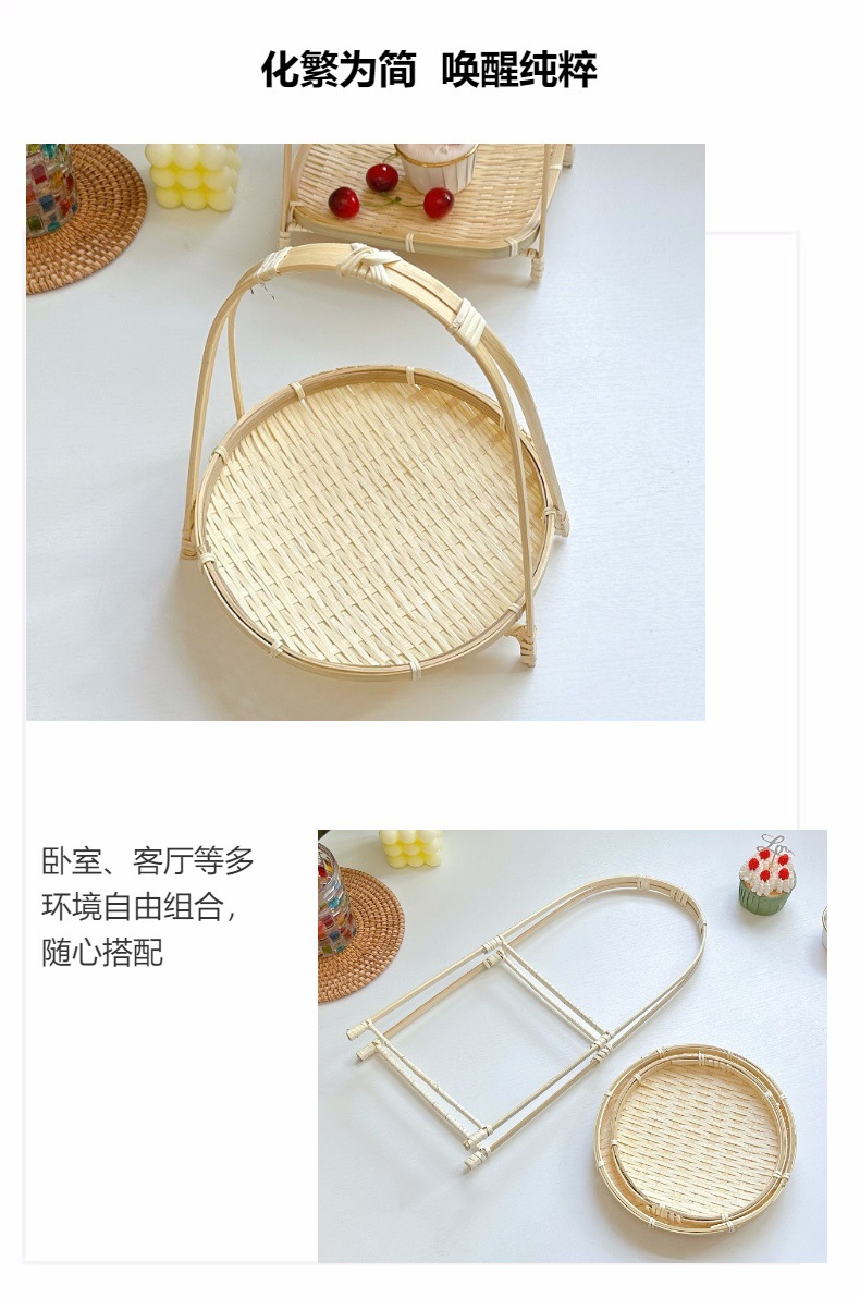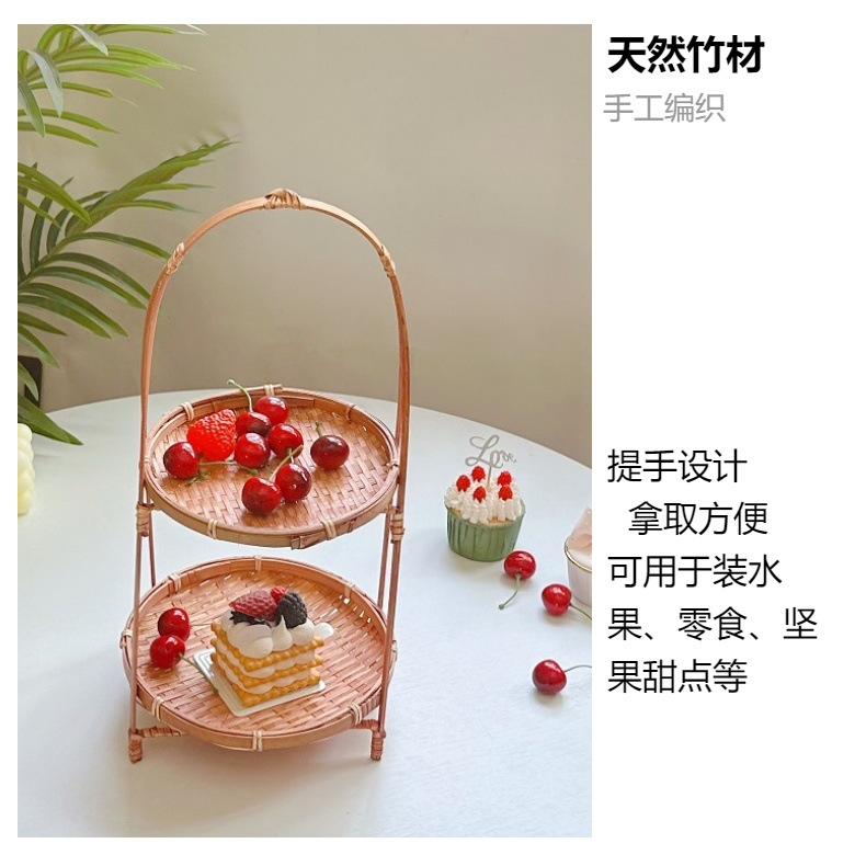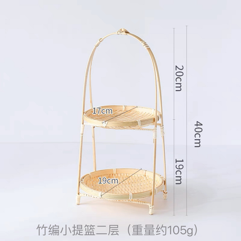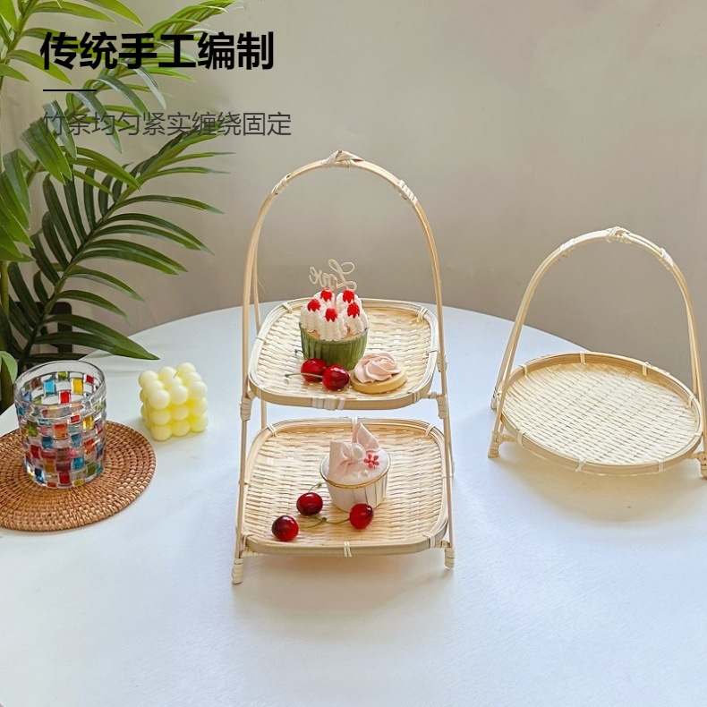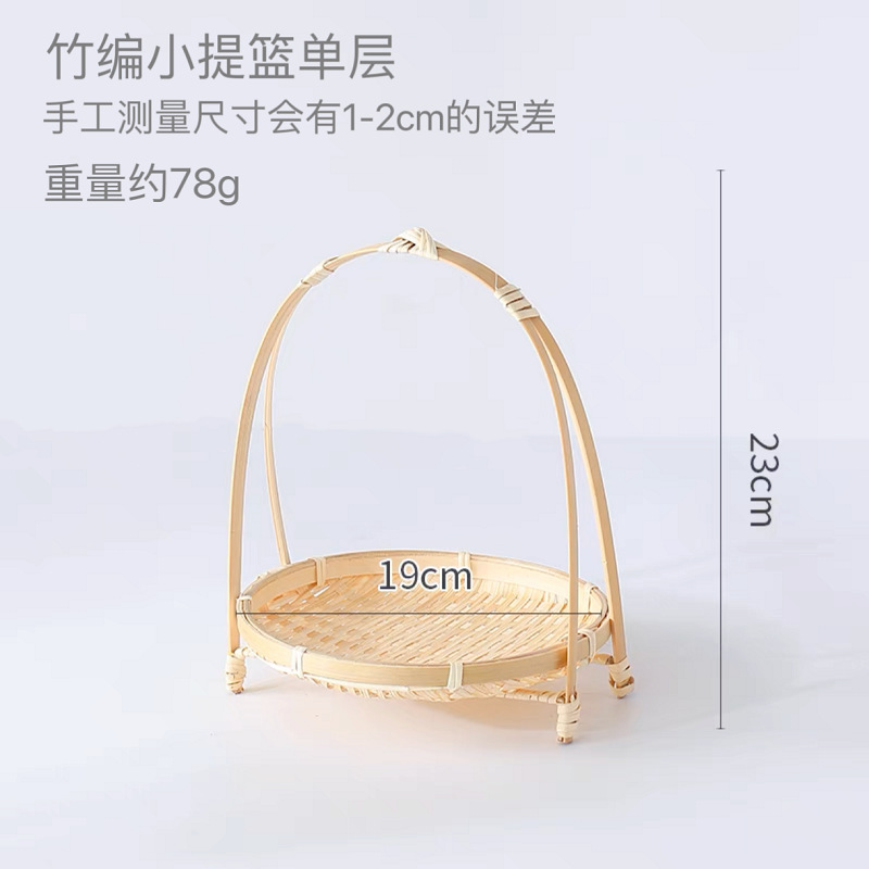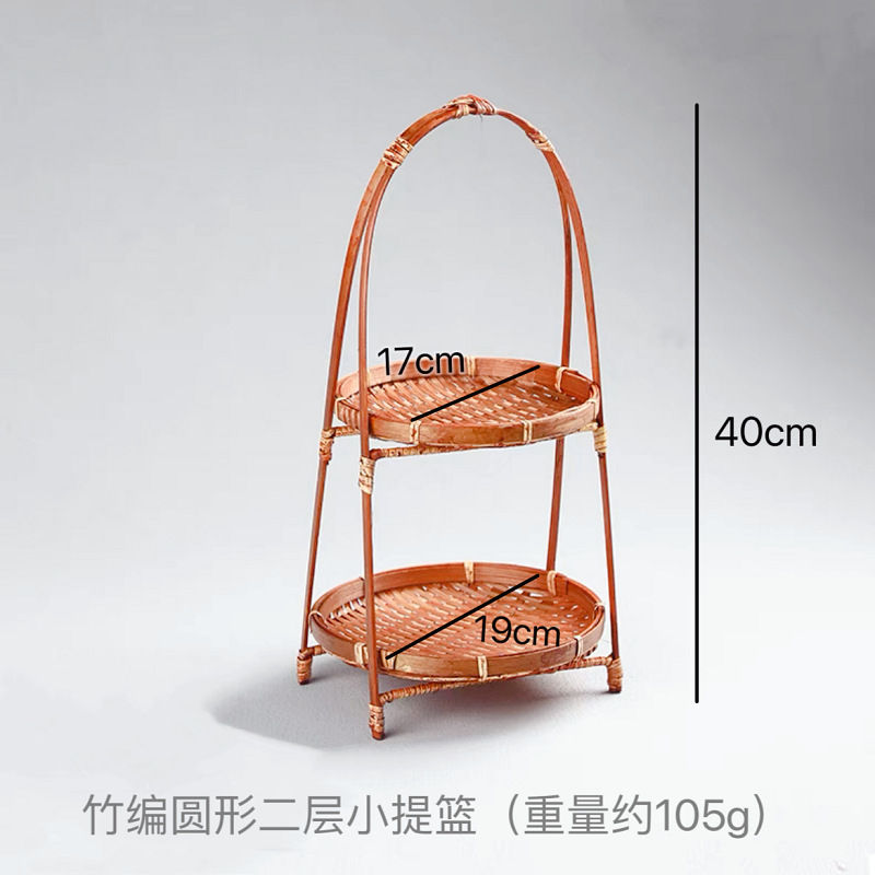 스토브 차 요리 다층 대나무 바구니 대나무 작은 바구니 둥근 손잡이 차 디저트 과일 바구니 패스트리 트레이 창조적 인스토어 가기