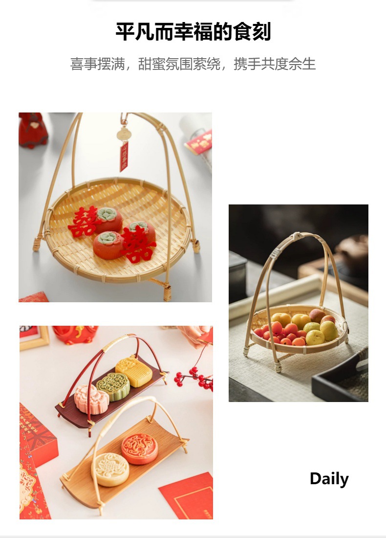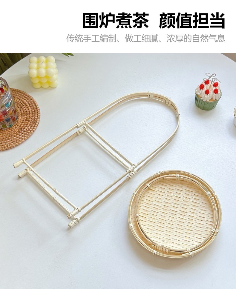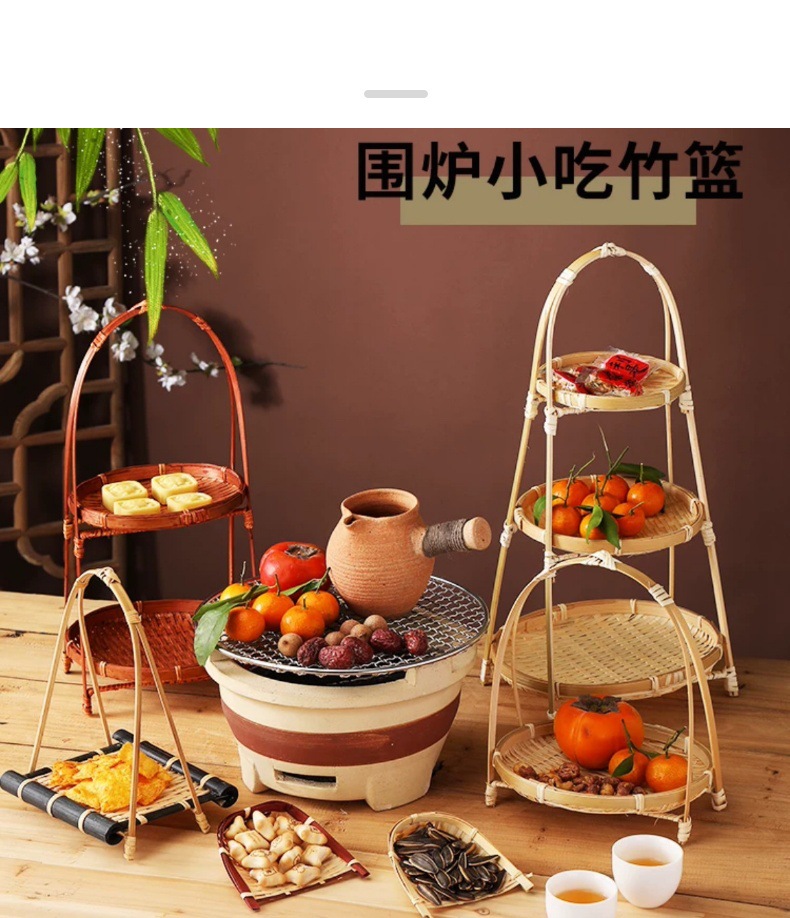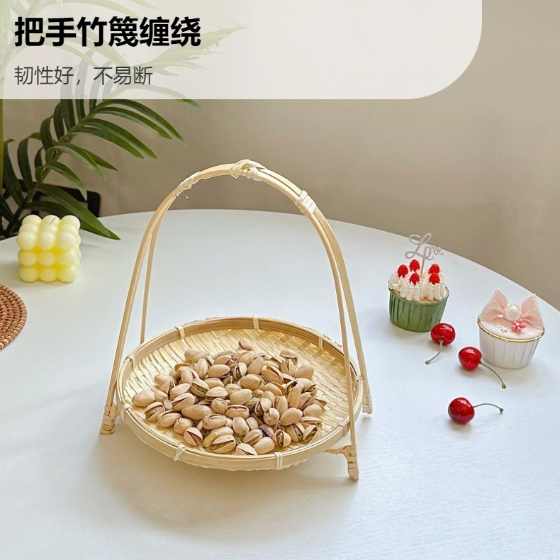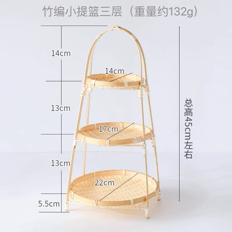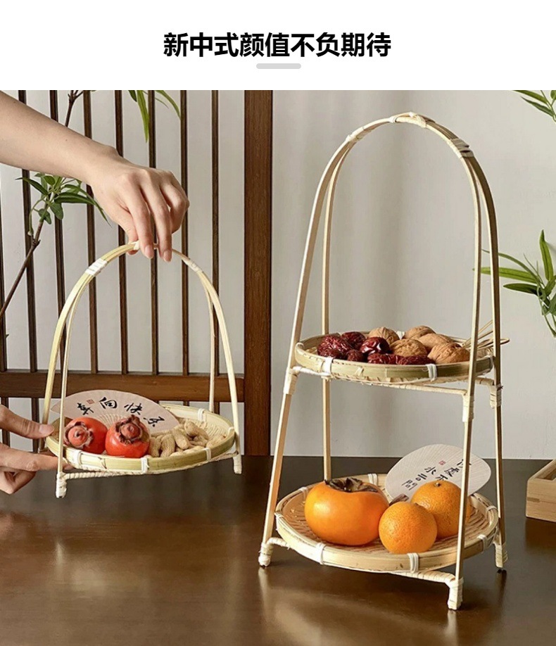 스토브 차 요리 다층 대나무 바구니 대나무 작은 바구니 둥근 손잡이 차 디저트 과일 바구니 패스트리 트레이 창조적 인스토어 가기