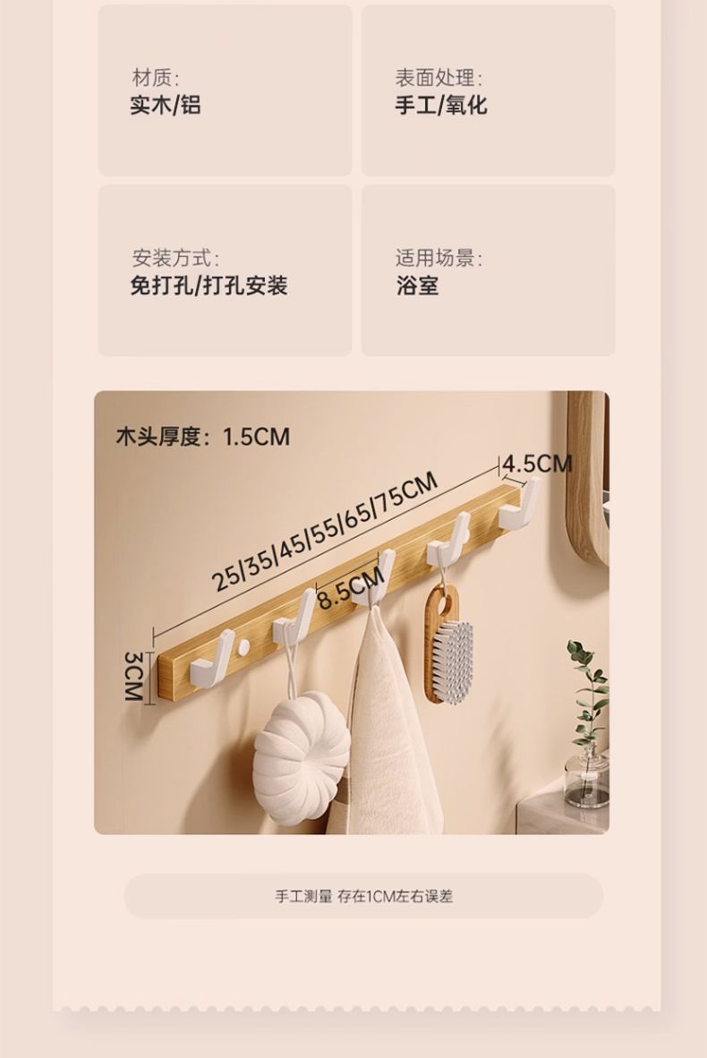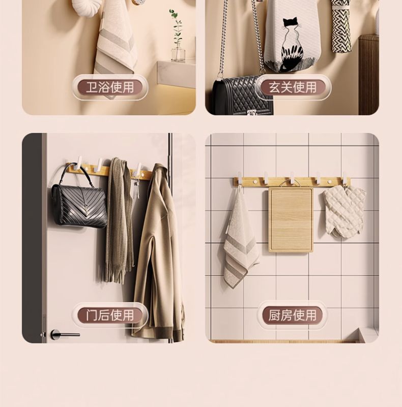 단단한 나무 옷 후크 펀치없는 벽걸이 입구 입구 옷걸이 욕실 벽 로그 후크