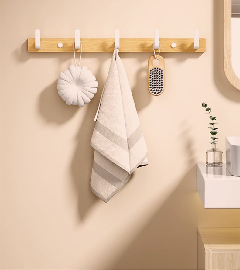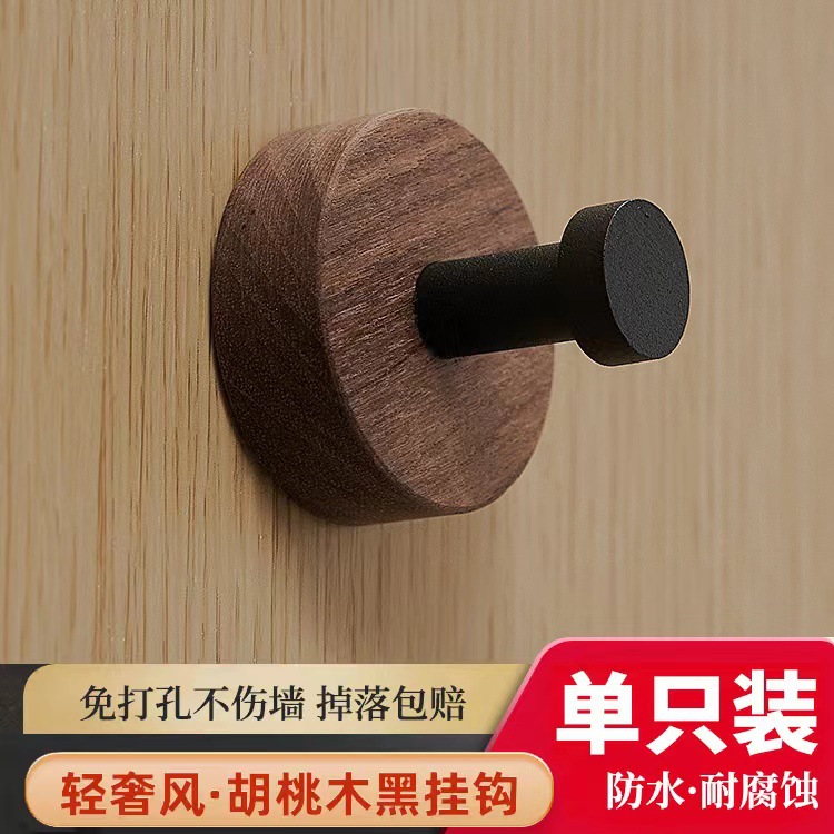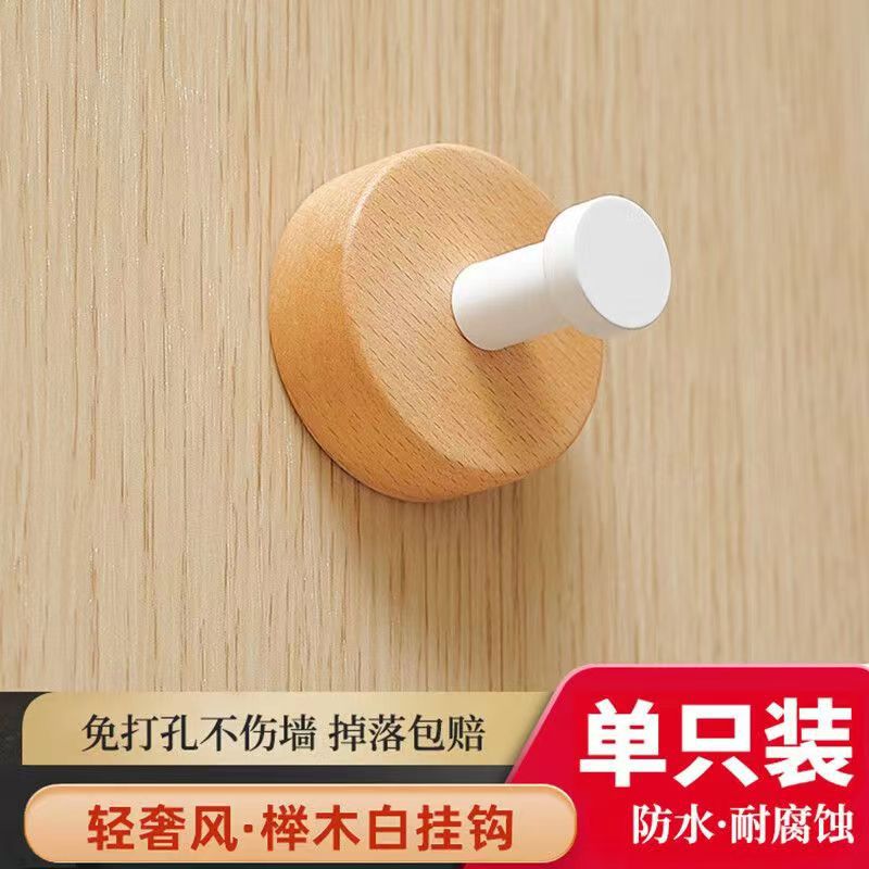 단단한 나무 옷 후크 펀치없는 벽걸이 입구 입구 옷걸이 욕실 벽 로그 후크스토어 가기