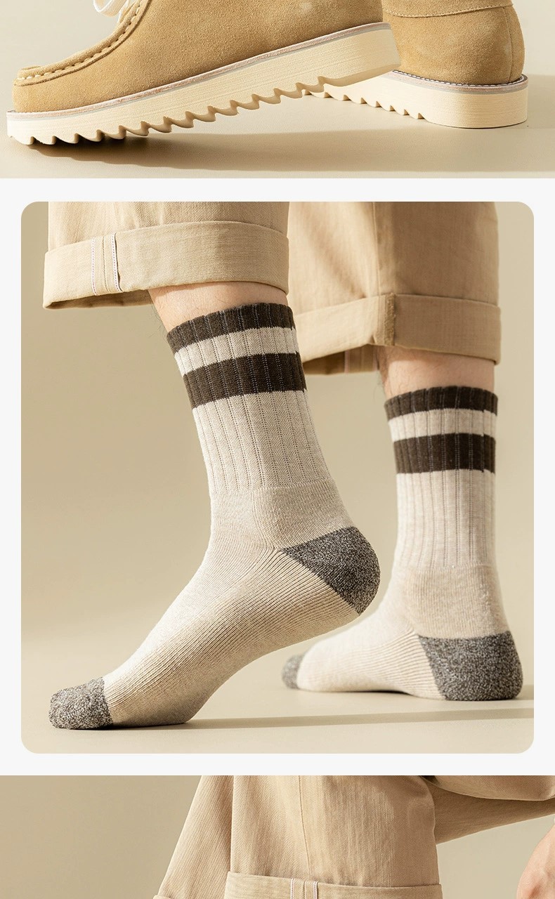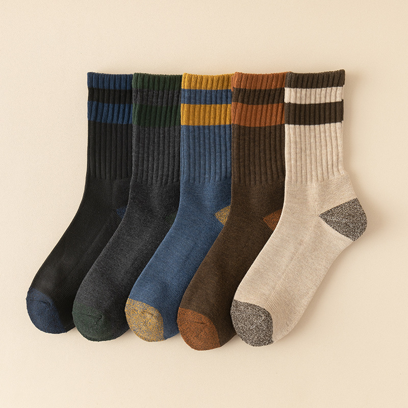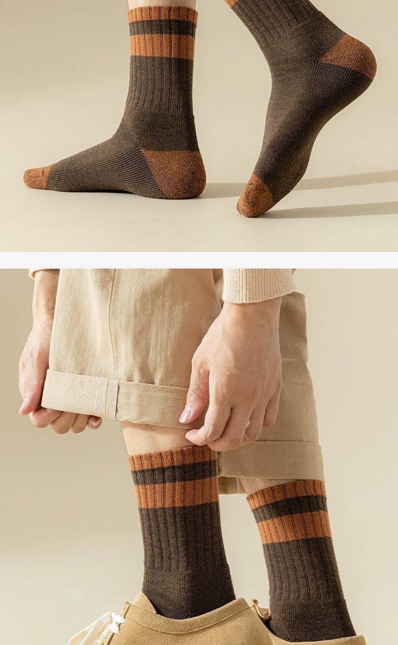 테리 양말 남성 중간 종아리 길이 양말 겨울 폴리 에스테르 코튼 기모 소년 가을과 겨울을위한 두꺼운 따뜻한 스포츠 트렌디 긴 양말