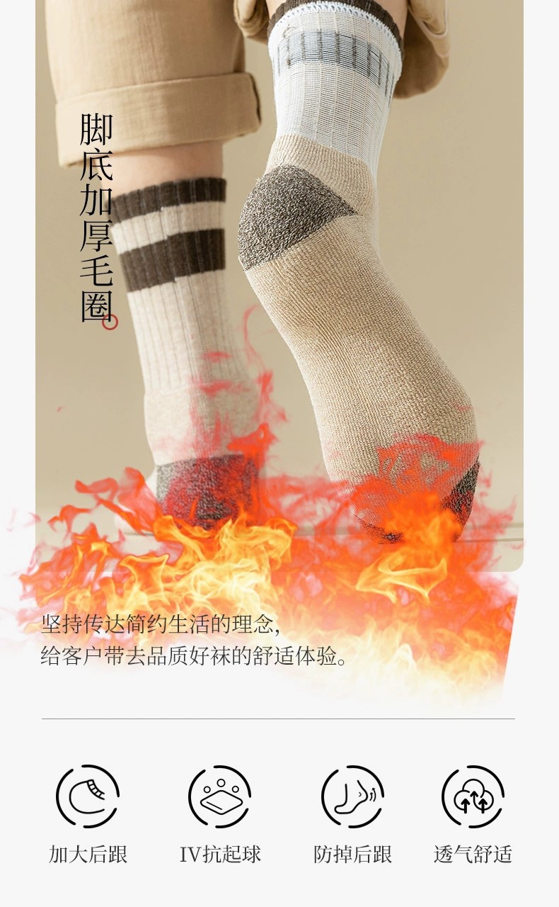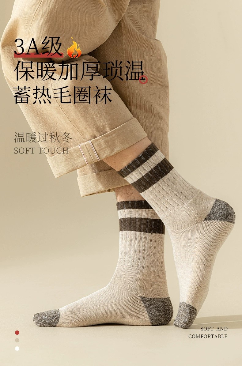 테리 양말 남성 중간 종아리 길이 양말 겨울 폴리 에스테르 코튼 기모 소년 가을과 겨울을위한 두꺼운 따뜻한 스포츠 트렌디 긴 양말스토어 가기