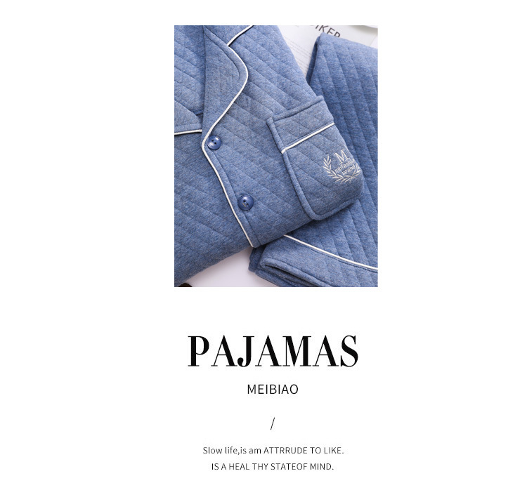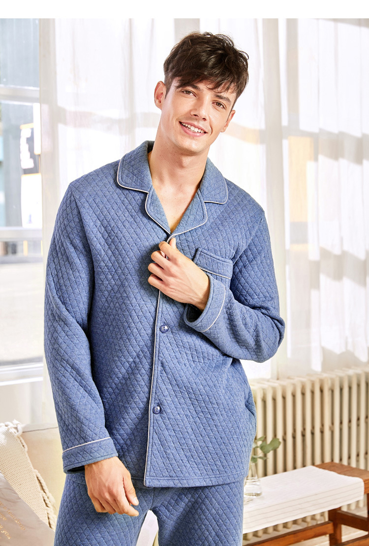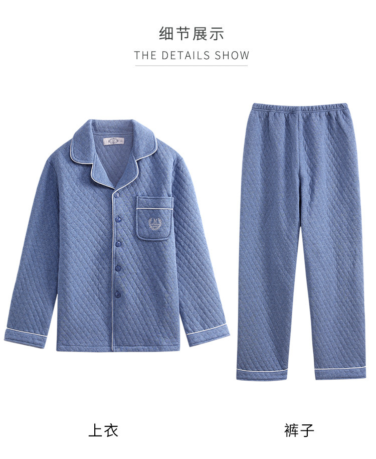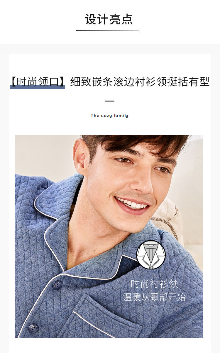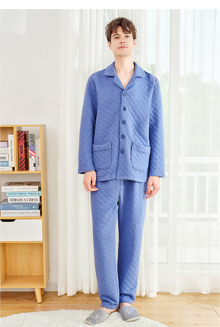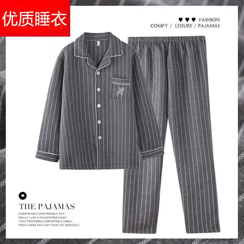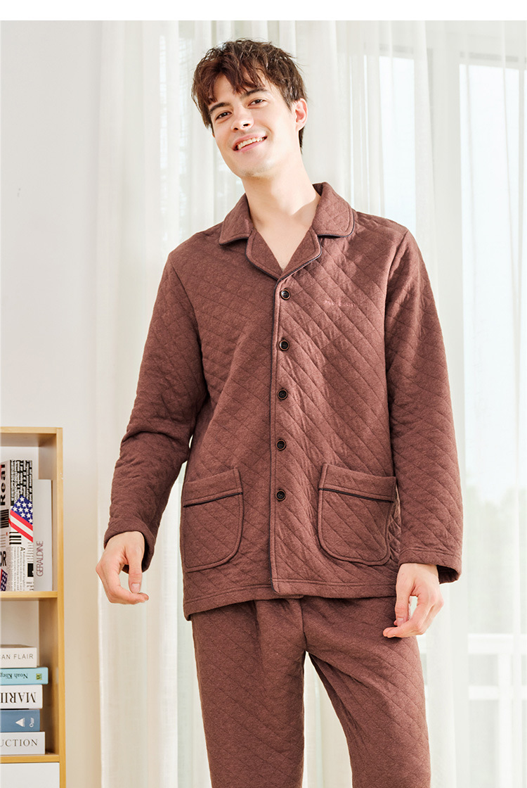 3 층 에어 레이어 퀼트 100% 면화 파자마 세트 남성용 가을 및 겨울 문자 자수는 면화 홈 웨어 밖에서 착용 할 수 있습니다.스토어 가기