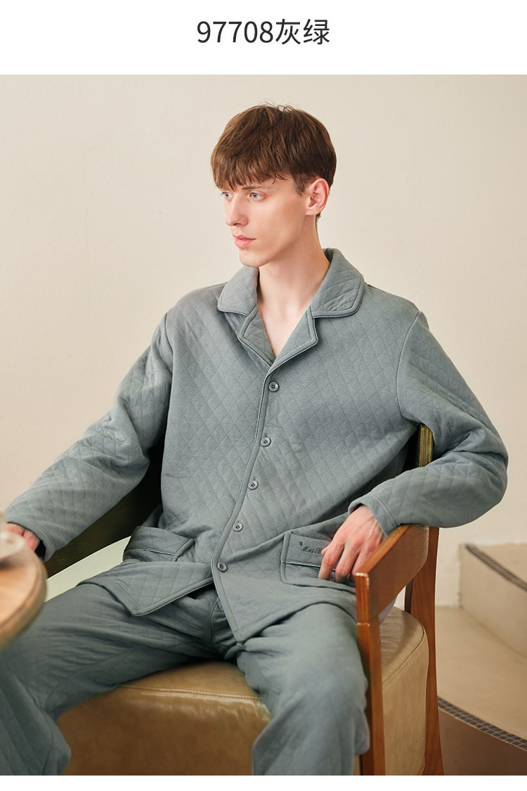 3 층 에어 레이어 퀼트 100% 면화 파자마 세트 남성용 가을 및 겨울 문자 자수는 면화 홈 웨어 밖에서 착용 할 수 있습니다.