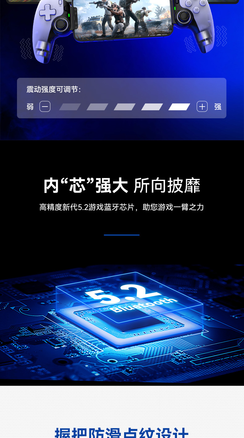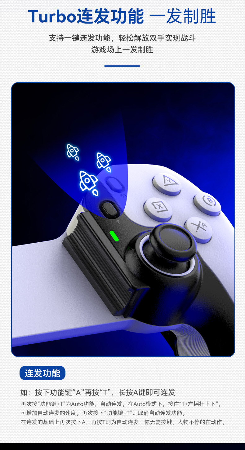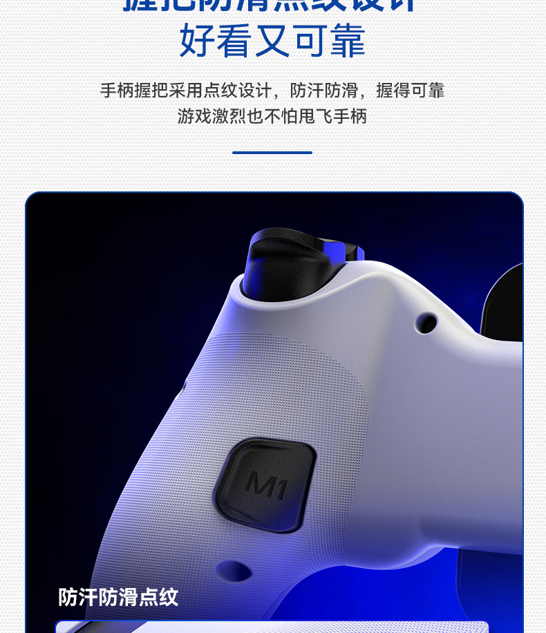 4.导电硅胶ABXY、十字键,握把防滑点纹。